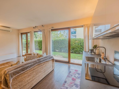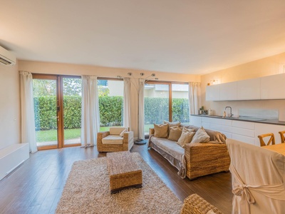 Der großzügige Wohnbereich überzeugt durch seine helle und freundliche Atmosphäre und öffnet sich zu einer schönen Terrasse mit angrenzendem Garten, die zum Entspannen und Genießen im Freien einlädt – ideal für Frühstück im Sonnenschein oder gemütliche Sommerabende. Die beiden großzügig geschnittenen Schlafzimmer bieten ausreichend Platz und sind perfekt für Familien, Paare oder Gäste geeignet.