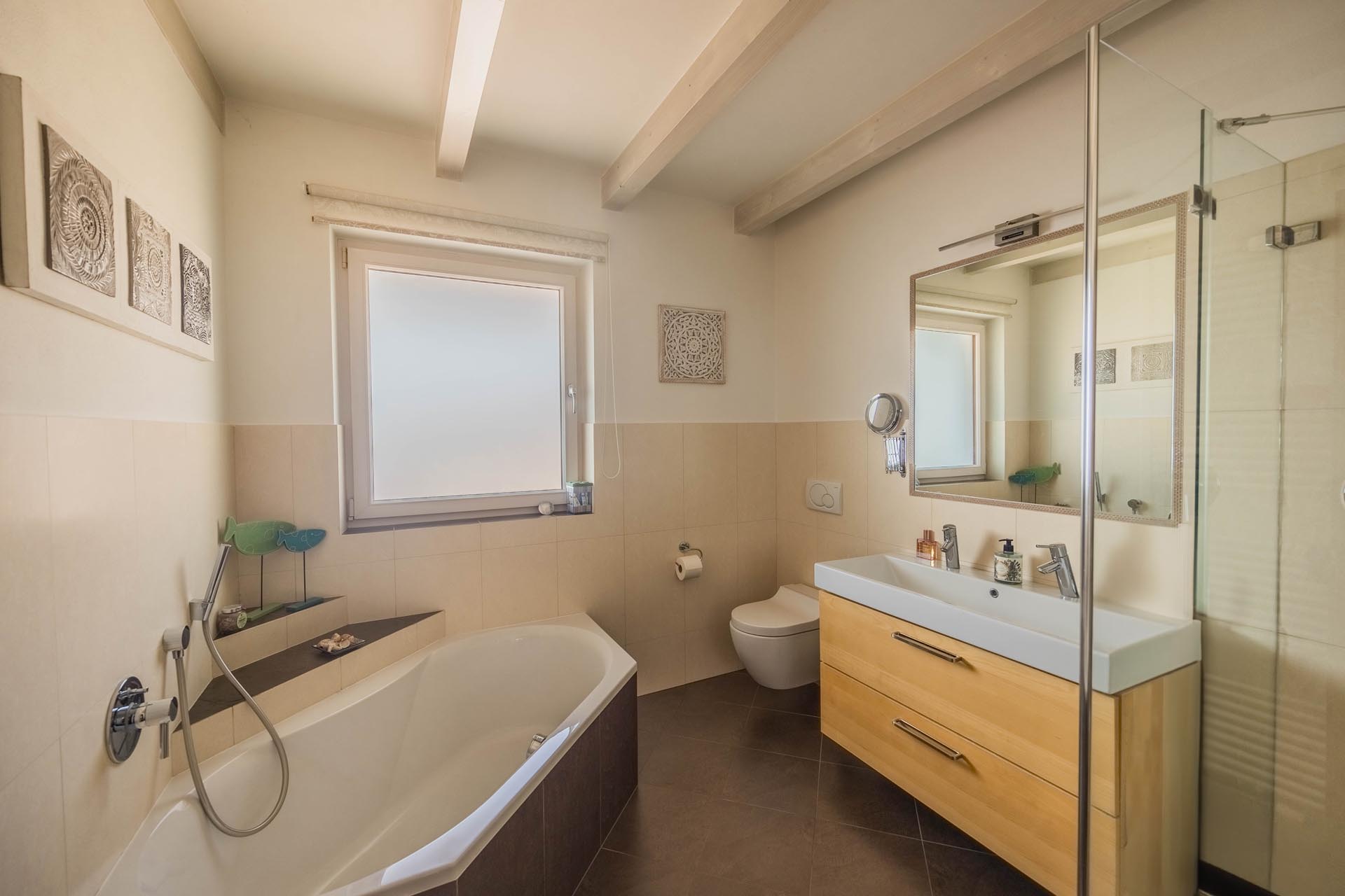 Über das interne Stiegenhaus gelangt man in das großzügige Kellergeschoss, das zwei große Räume sowie den Heizraum mit moderner Pelletheizung und Silo beherbergt. Diese sorgt nicht nur für eine autonome, sondern auch für eine besonders energieeffiziente Wärmeversorgung. Die Konventionierung kann gegen Bezahlung auch gelöscht werden.