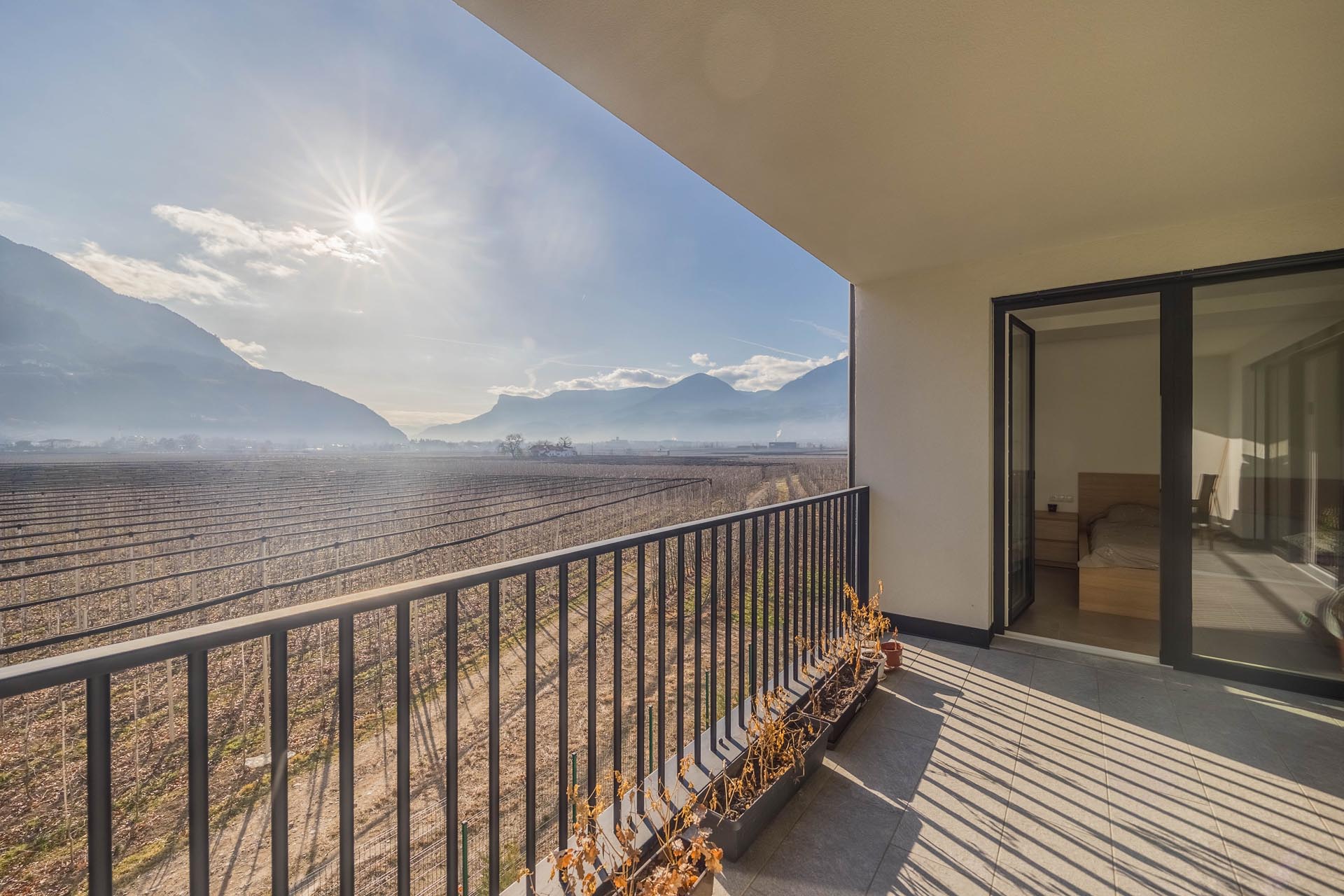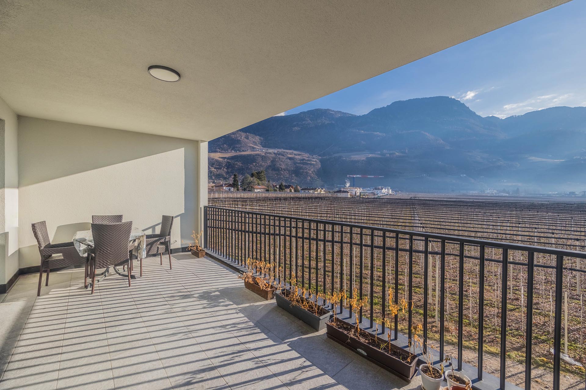 Die Wohnung ist nach Süd-Osten ausgerichtet und präsentiert sich besonders hell und sonnig. Große Fensterflächen eröffnen eine freie, unverbaubare Aussicht über weitläufige Obstwiesen und schaffen eine angenehme Verbindung zwischen Innen- und Außenraum. Ein besonderes Highlight ist die großzügige, überdachte Terrasse, die ausreichend Platz zum Sonnen, Entspannen und Verweilen bietet und zu jeder Tageszeit genutzt werden kann.