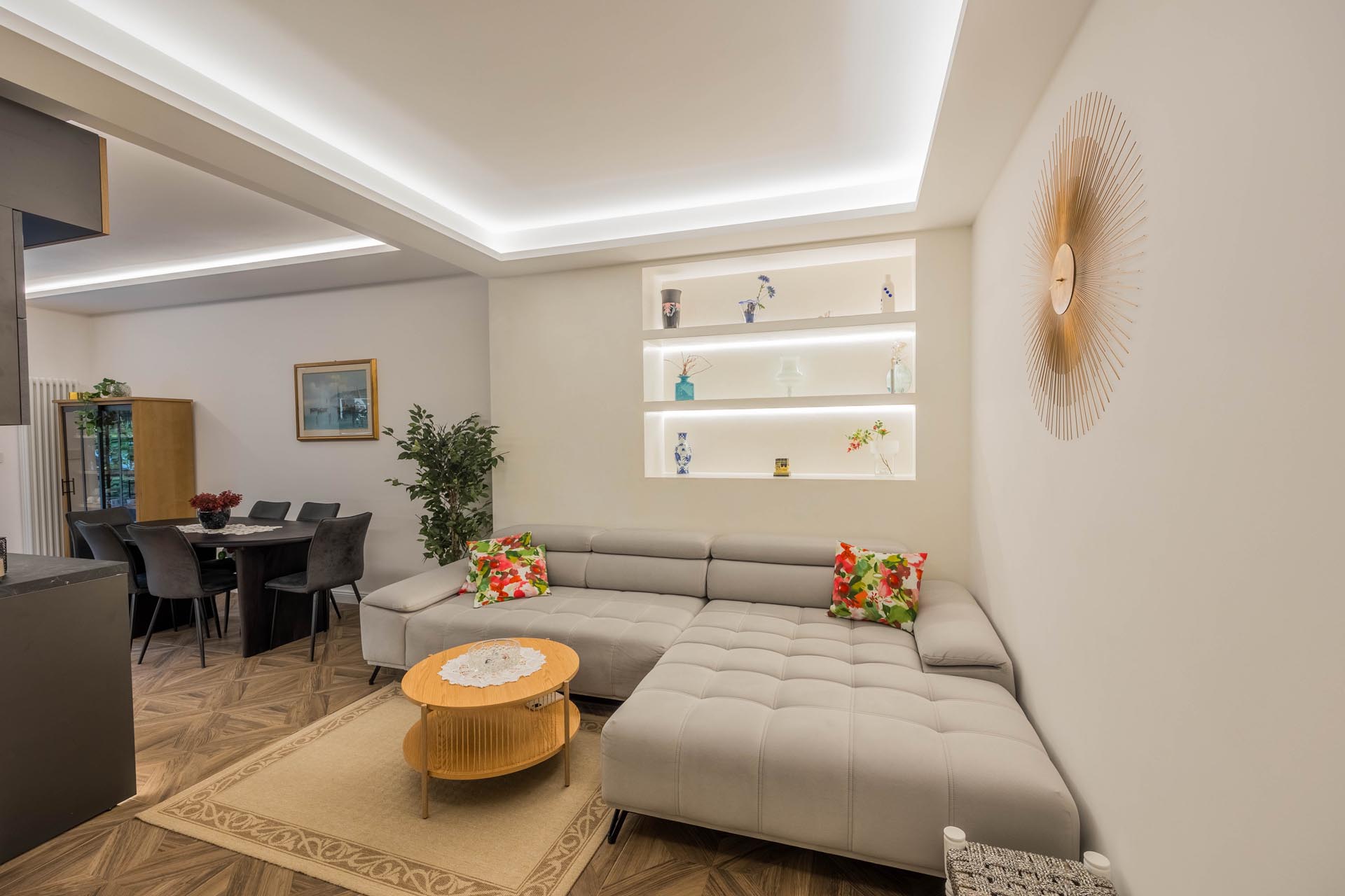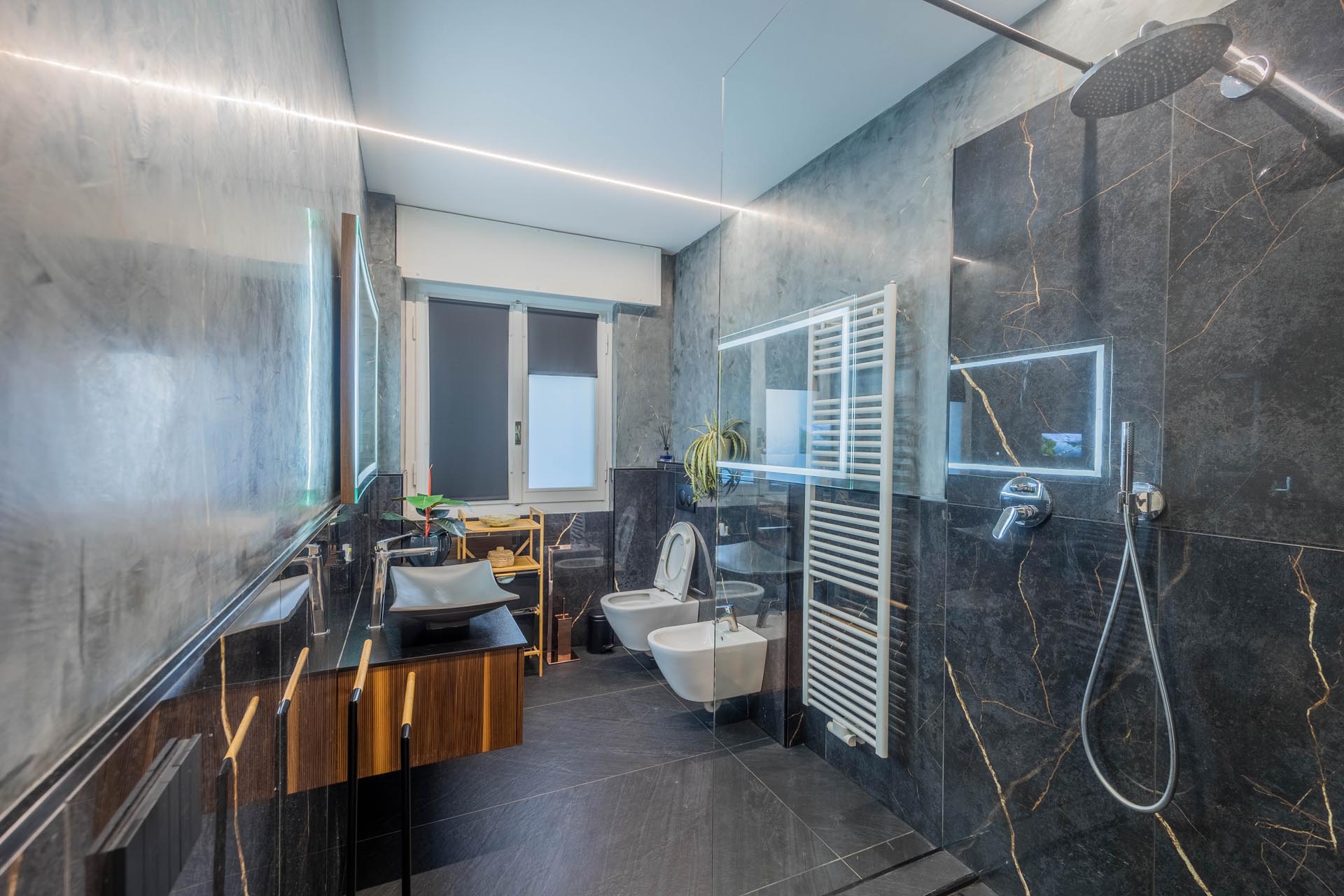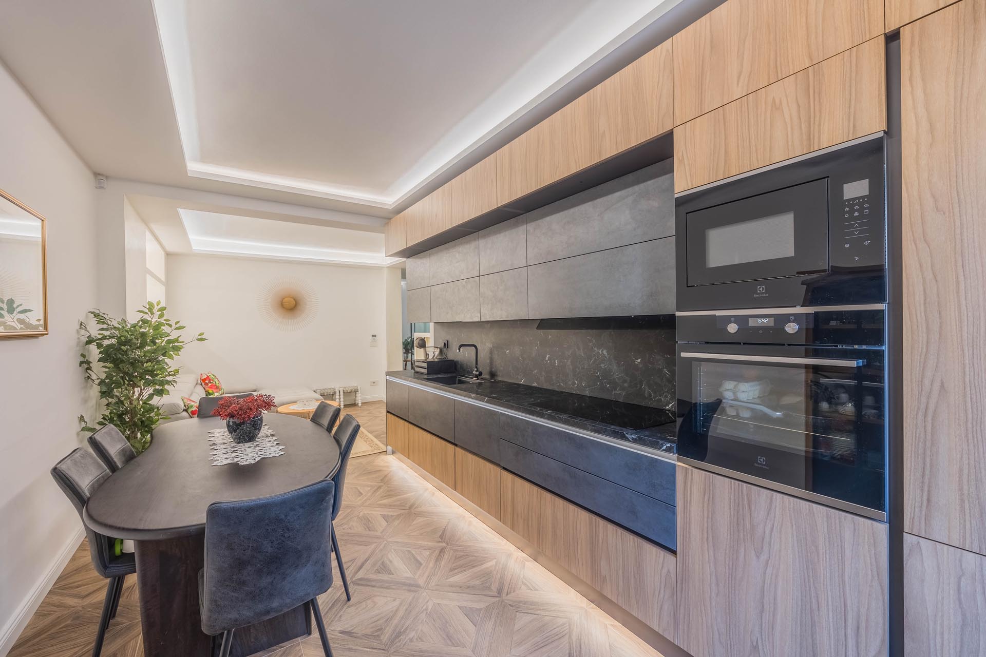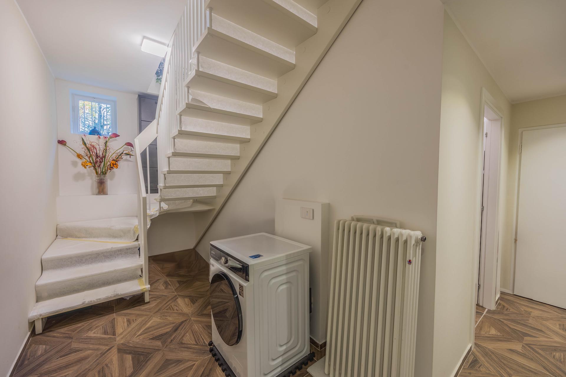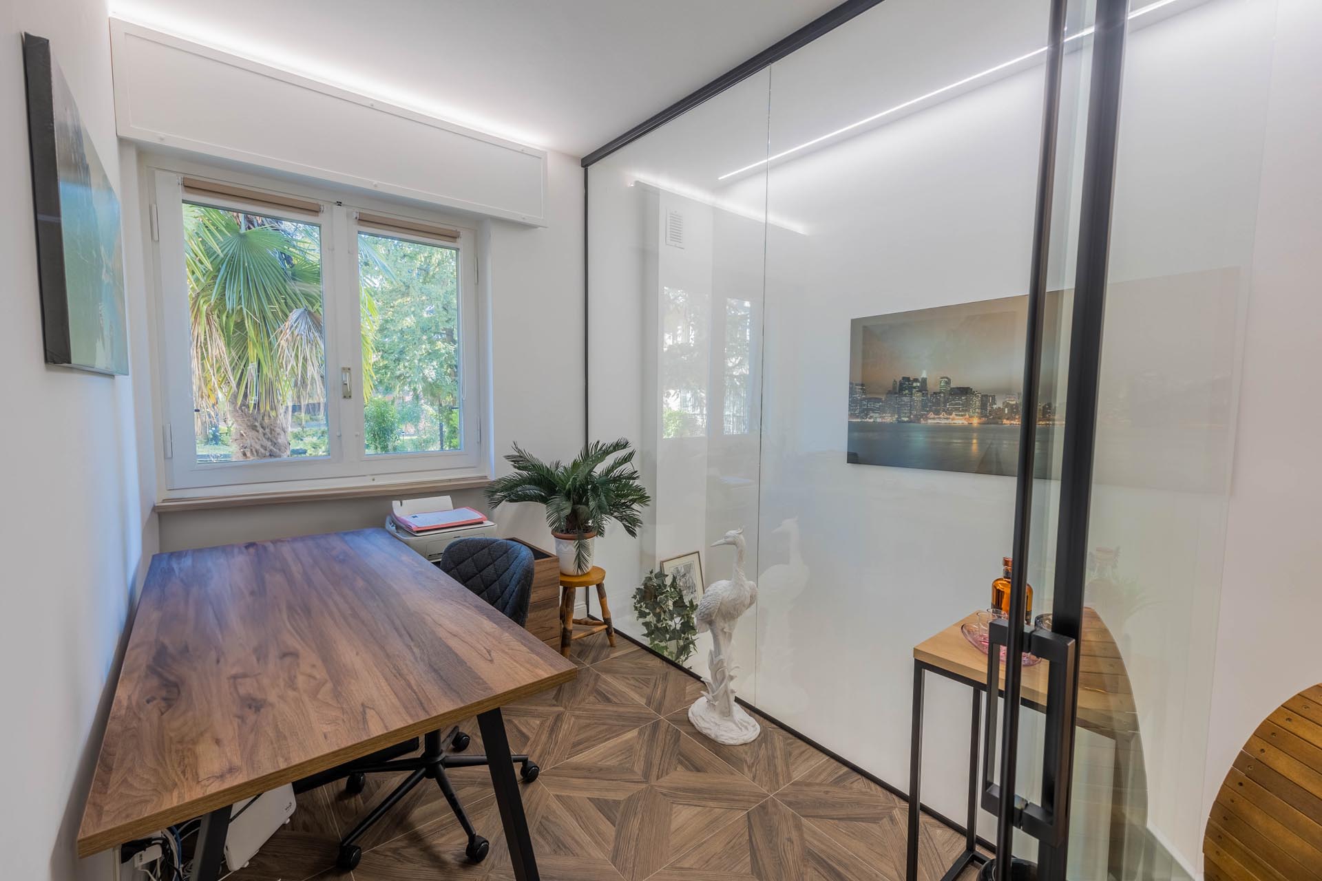 Die Immobilie wurde vollständig mit hochwertigen Materialien renoviert, wobei besonderer Wert auf edle Details gelegt wurde. Wände in Stucco Veneziano verleihen den Räumen eine stilvolle und repräsentative Note.