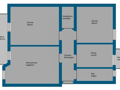 Die Raumaufteilung umfasst ein Wohnzimmer, eine Küche und zwei Schlafzimmer und bietet daher eine klassische, gut nutzbare Raumaufteilung. Dank des vorteilhaften Grundrisses besteht zudem die Möglichkeit, die Wohnung in eine 4-Zimmer-Wohnung umzuwandeln und dadurch zusätzlichen Wohnraum zu schaffen. Zwei Balkone sorgen für angenehme Lichtverhältnisse und erweitern den Wohnraum nach außen. Beheizt wird die Immobilie über eine autonome Gasheizung, wodurch eine individuelle Regulierung der Heizkosten möglich ist. Ein Keller sowie ein Dachboden sind im Angebot inbegriffen und bieten zusätzlichen Stauraum.