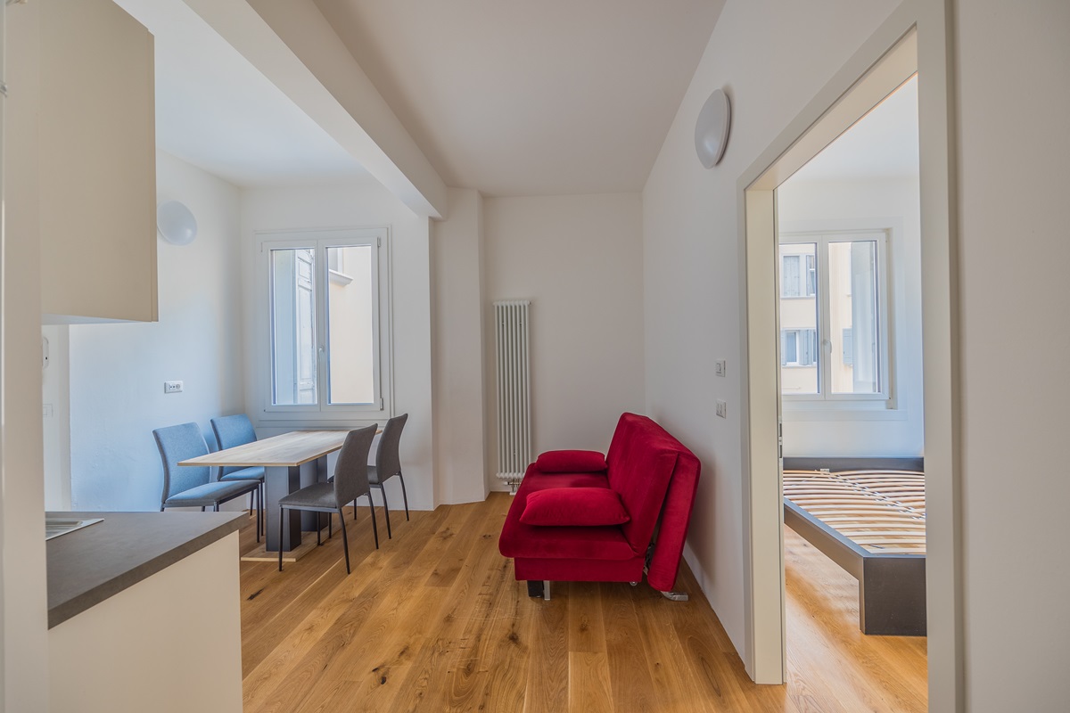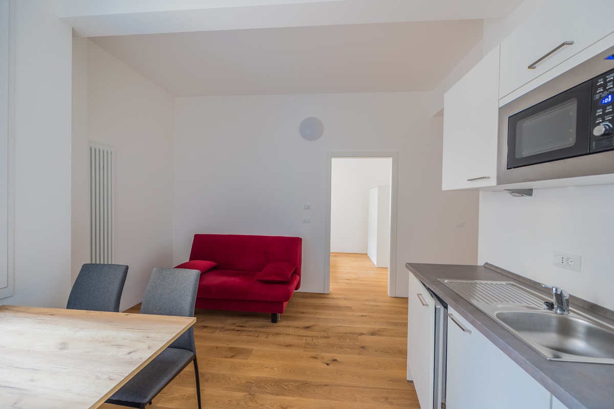 V00192BZ2Z - In der Leonardo da Vinci Straße, inmitten des Bozner Stadtzentrums, bieten wir eine komplett sanierte und neu eingerichtete 2-Zimmer Wohnung mit Keller zur Miete an.