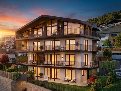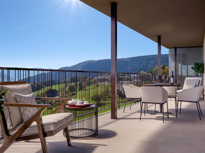 Die Immobilie befindet sich in einer ruhigen, sonnigen Hanglage mit freiem Blick auf die umliegende Berglandschaft. Alle Wohnungen sind nach Süden ausgerichtet und verfügen über großzügige private Außenflächen wie Terrassen, Gärten oder eine weitläufige Dachterrasse. Ein moderner Aufzug sorgt für bequemen Zugang zu allen Etagen.