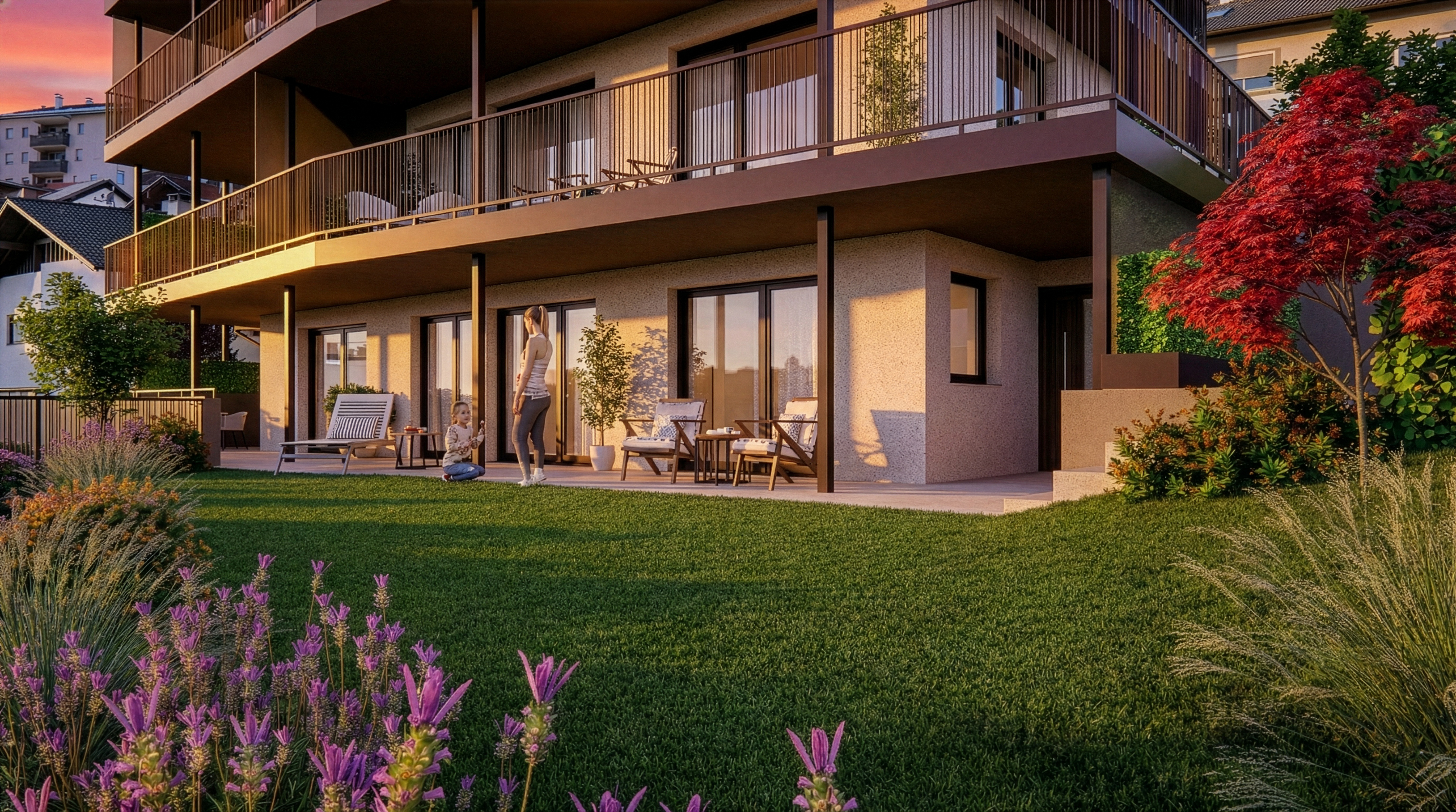 Die einzelnen Wohneinheiten zeichnen sich durch durchdachte Grundrisse, hochwertige Ausstattung und ein helles, freundliches Wohngefühl aus. Zur Auswahl stehen 3- und 4-Zimmer Wohnungen, teils konventioniert, teils frei verfügbar, die unterschiedliche Bedürfnisse perfekt abdecken – von der kompakten Wohnung mit Terrasse bis zur exklusiven Dachgeschosswohnung mit Panoramablick. Besonders hervorzuheben sind die großzügige Gartenwohnung, die weitläufige 4-Zimmer Wohnung mit riesiger Terrasse sowie das exklusive Penthouse, das mit seiner Aussicht über die Bergwelt Jenesiens beeindruckt.
