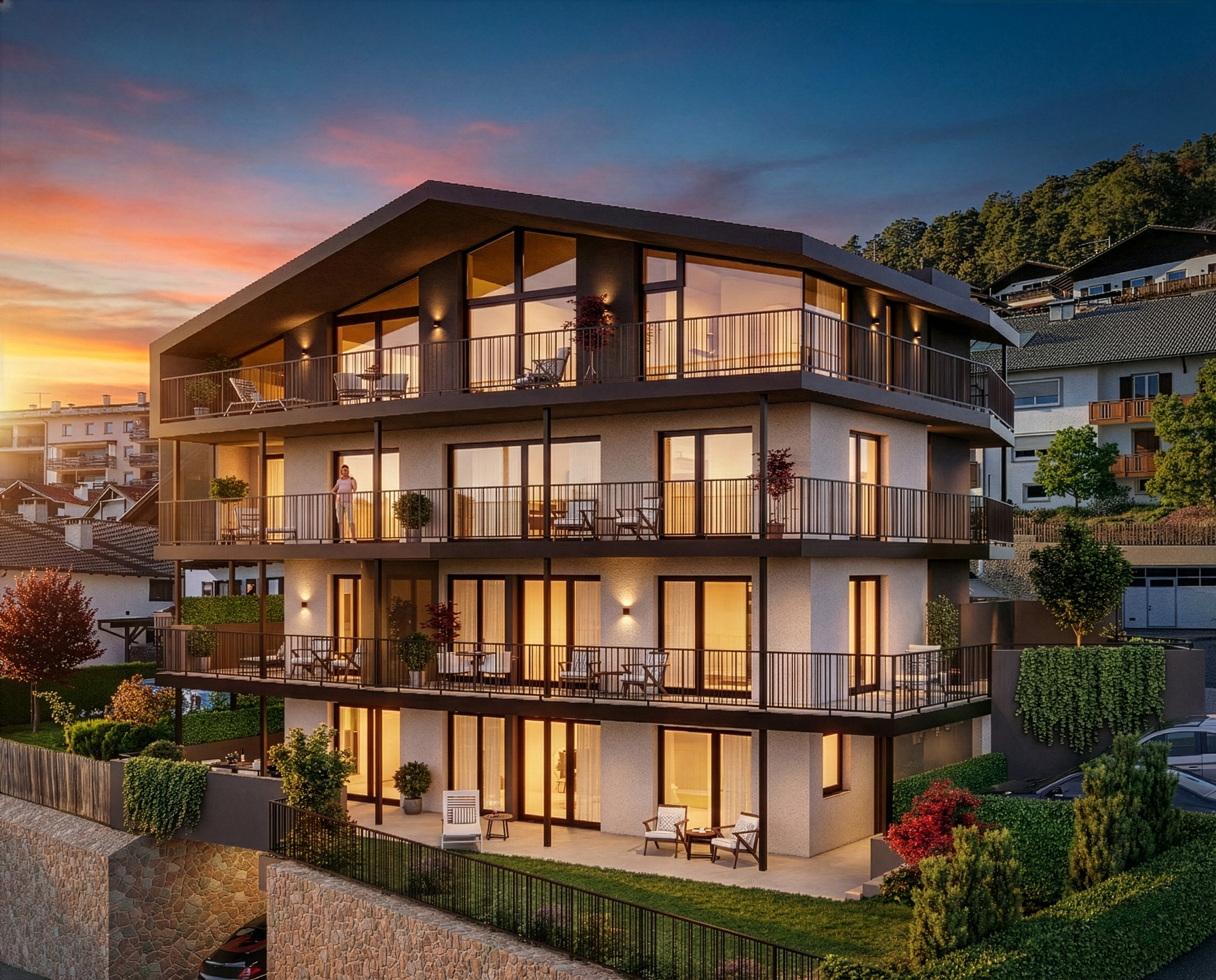 R07077JE3Z - Provisionsfreier Verkauf: In sonniger Panoramalage von Jenesien entsteht ein exklusives Wohnhaus mit nur fünf Wohneinheiten – ein Projekt, das modernen Wohnkomfort, hochwertige Bauweise und atemberaubende Aussicht in einzigartiger Weise vereint. Das Haus wird im KlimaHaus-A-Standard errichtet und überzeugt durch seine energieeffiziente Bauweise, sorgfältig ausgewählte Materialien und eine Architektur, die Licht, Raum und Natur perfekt in Einklang bringt.