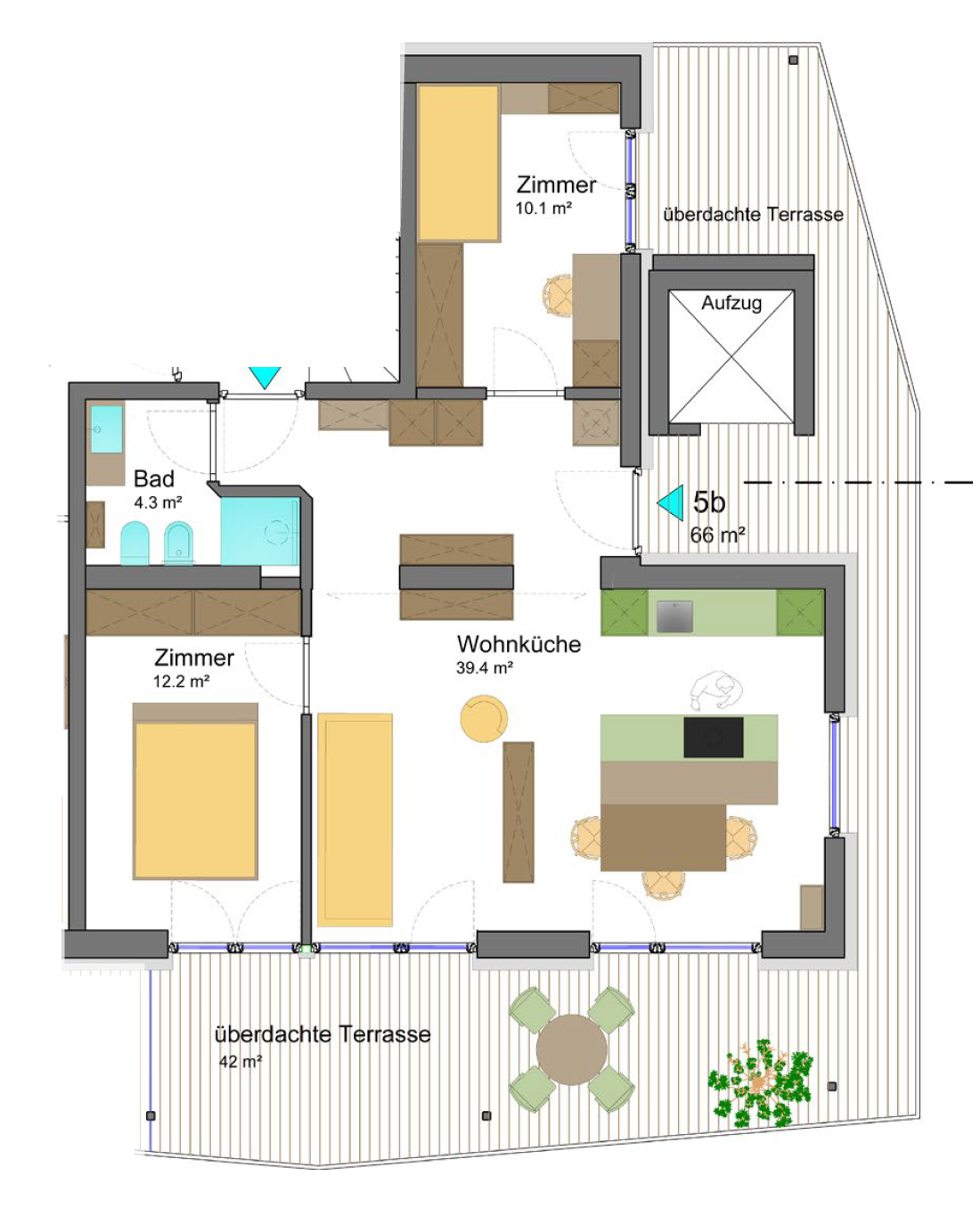 | Anzahl Schlafzimmer: 2 | Anzahl Bäder: 1 | Küche: Kochecke |