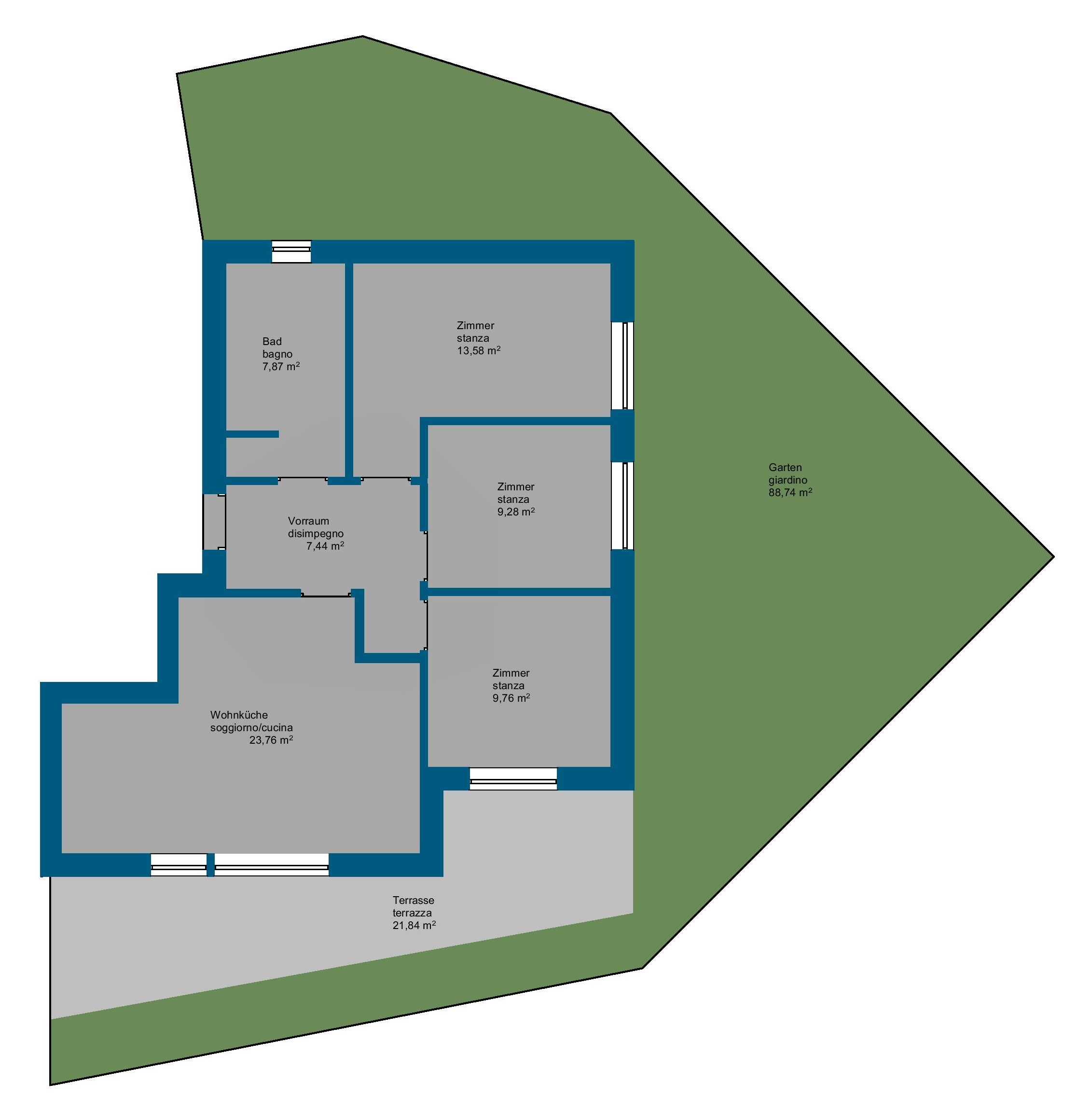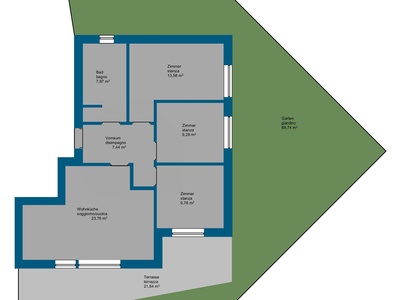 | Balkon: Nein | Terrasse: Ja | Garten: Ja |