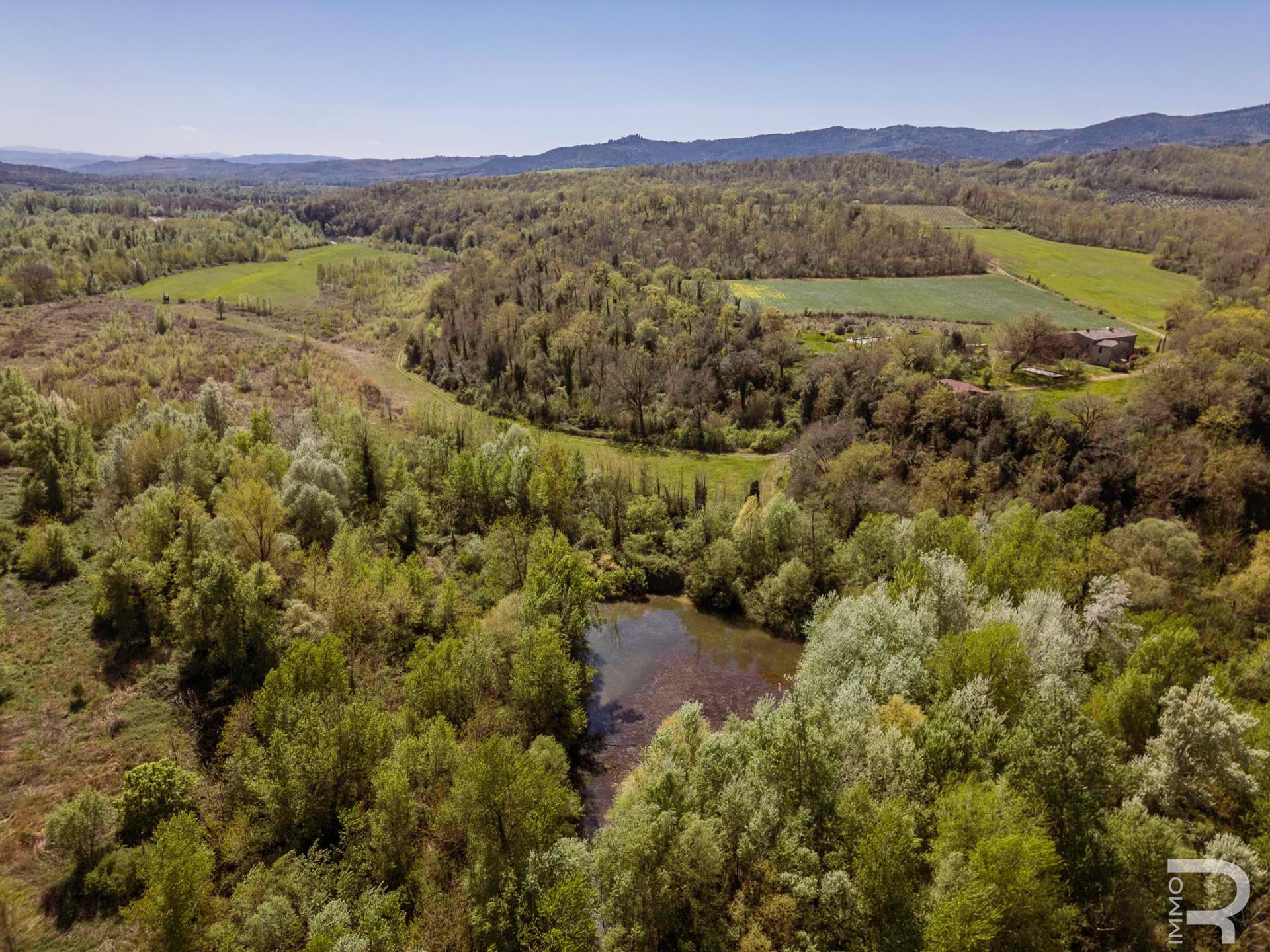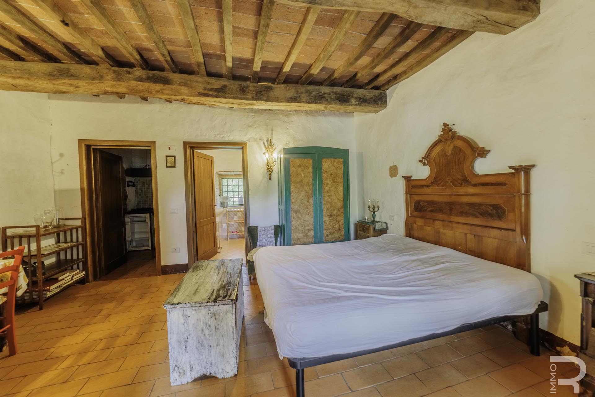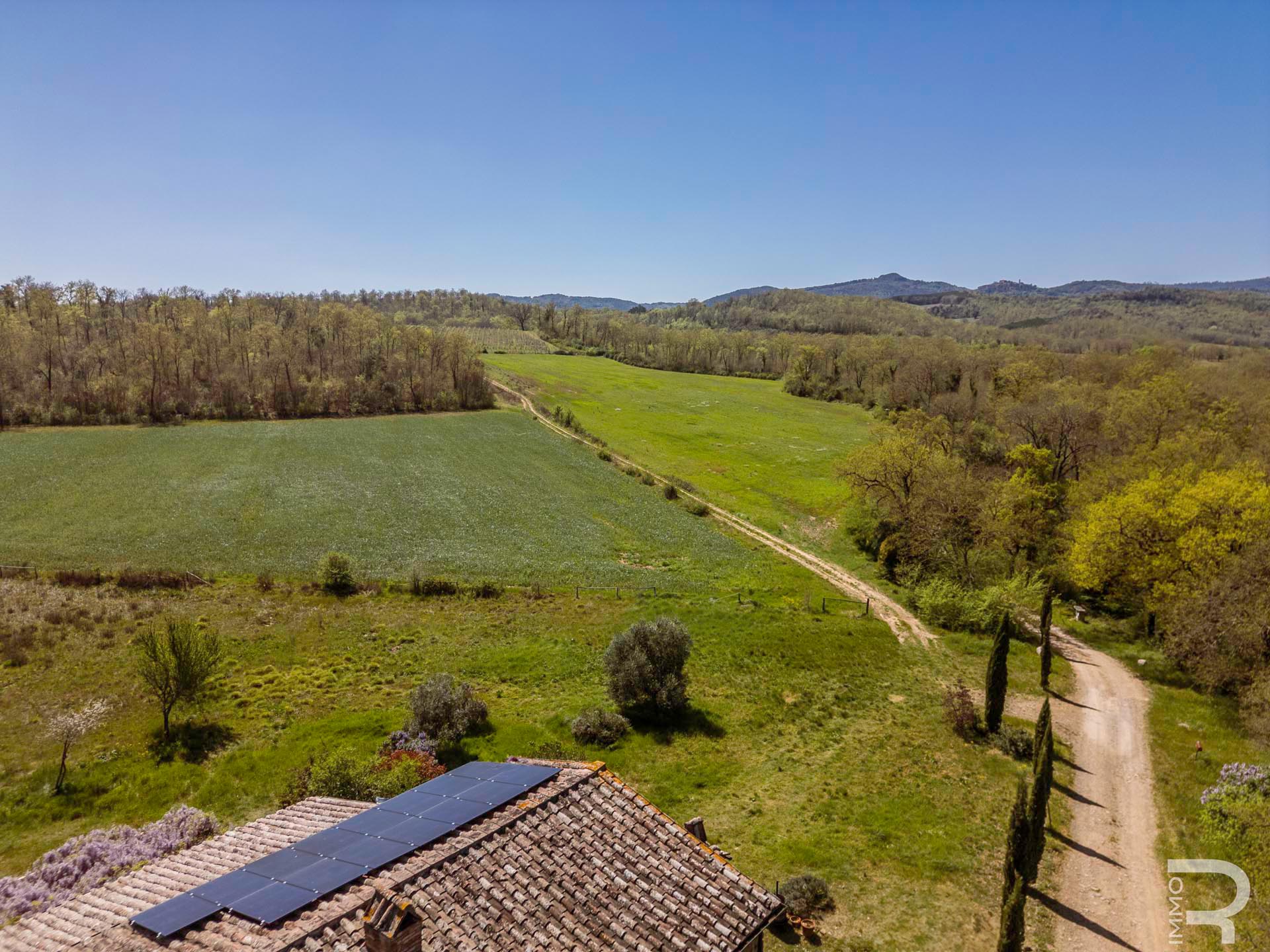 Das insgesamt etwa 70 Hektar große Grundstück bietet vielfältige landwirtschaftliche Nutzungsmöglichkeiten. Es umfasst rund 4 Hektar Weinberge mit Rebsorten wie Sangiovese und Cabernet Sauvignon, etwa 4 Hektar Olivenhaine mit rund 1.000 Bäumen sowie circa 25 Hektar Ackerland, das derzeit für Klee- und Heuanbau genutzt wird. Die restlichen Flächen bestehen aus Wald und runden das naturbelassene Gesamtbild ab.