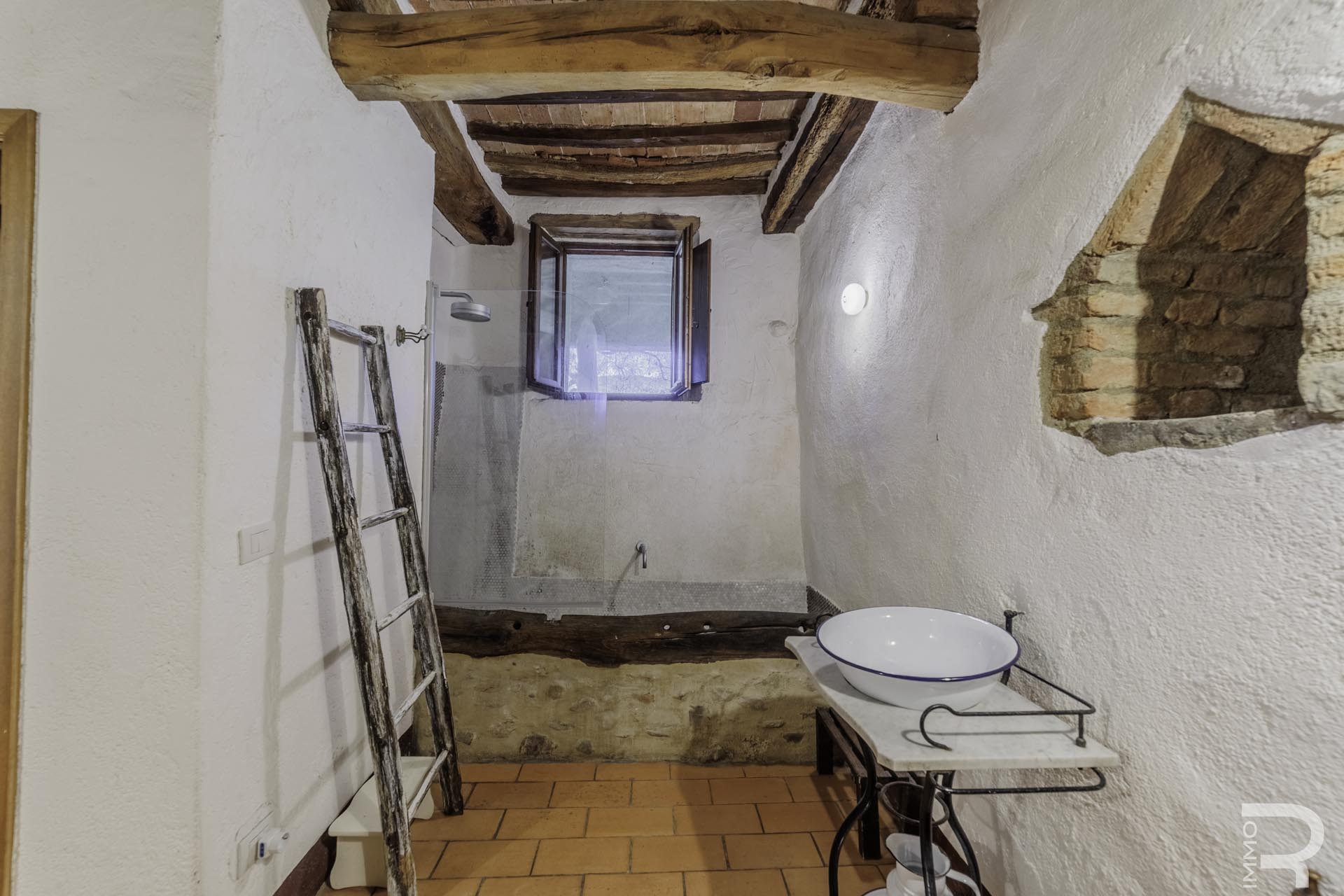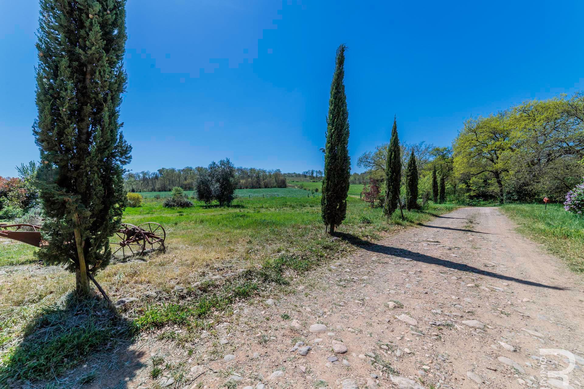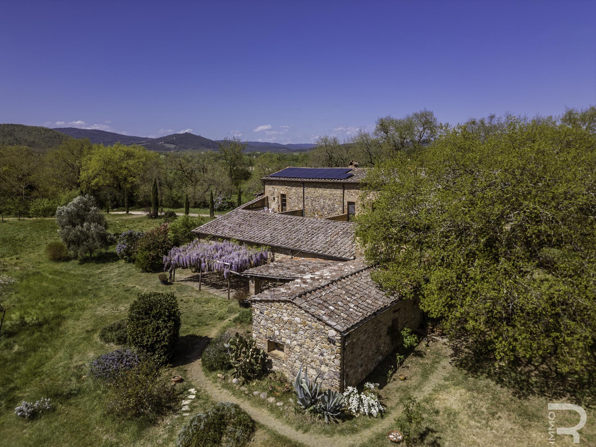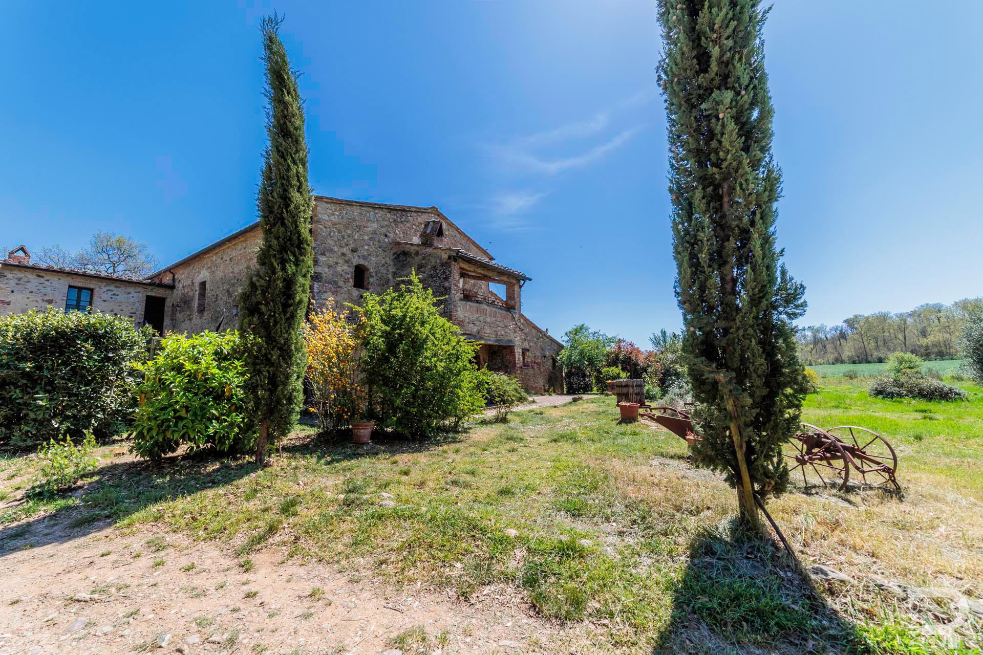 Das insgesamt etwa 70 Hektar große Grundstück bietet vielfältige landwirtschaftliche Nutzungsmöglichkeiten. Es umfasst rund 4 Hektar Weinberge mit Rebsorten wie Sangiovese und Cabernet Sauvignon, etwa 4 Hektar Olivenhaine mit rund 1.000 Bäumen sowie circa 25 Hektar Ackerland, das derzeit für Klee- und Heuanbau genutzt wird. Die restlichen Flächen bestehen aus Wald und runden das naturbelassene Gesamtbild ab.
