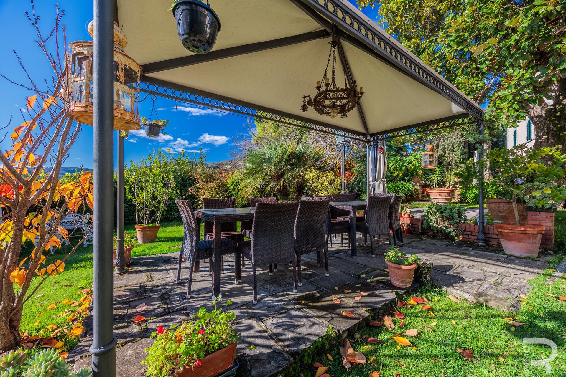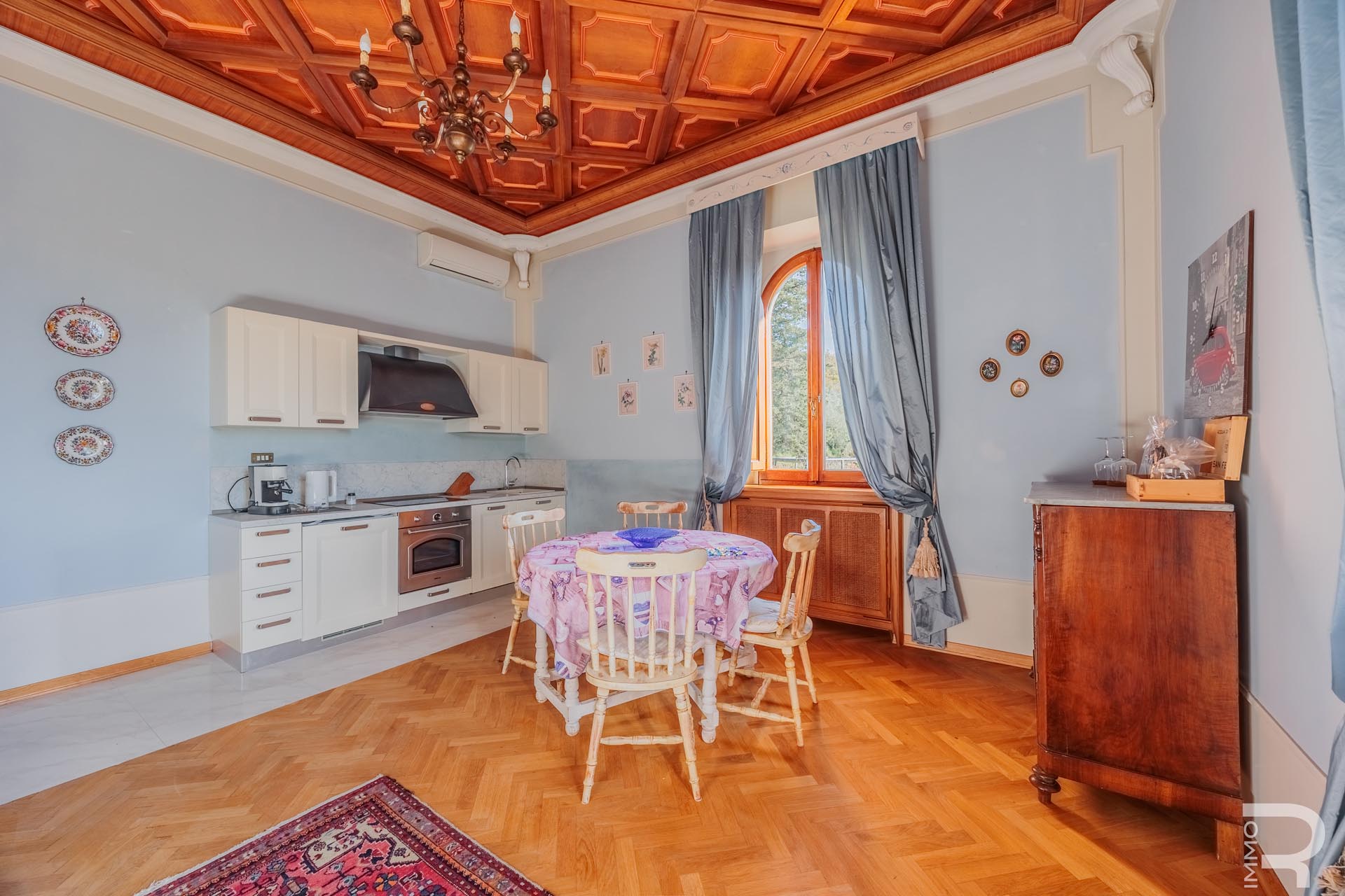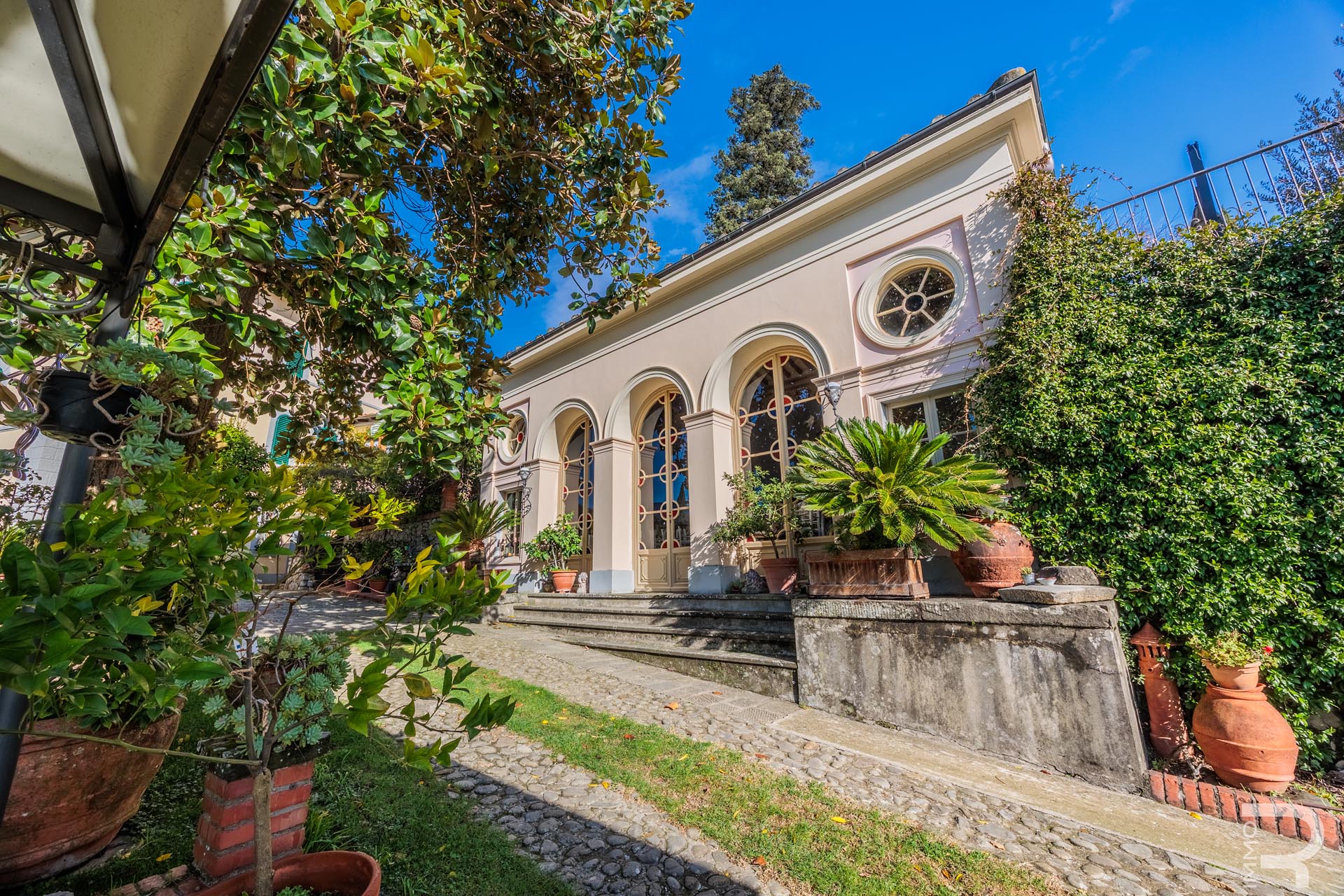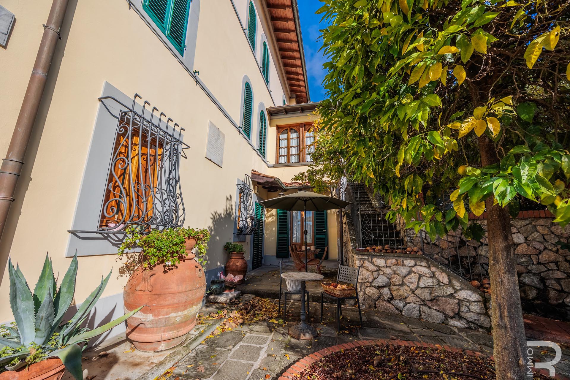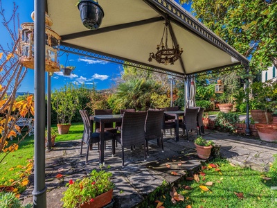Die historische Limonaia dient heute als stimmungsvoller Frühstücksraum mit eigener Küche, Holzofen und Kamin. Ergänzend verfügt die Villa über eine weitere professionelle Küche. In einem separaten, 2015 renovierten Gebäude – der ehemaligen Werkstatt – entstanden zwei charmante Apartments mit privater Terrasse sowie Räume für einen Weinkeller, Lagerflächen und Vorräte. Ein weiteres kleines Holzgebäude beherbergt Wäscherei, Bügelraum und sanitäre Einrichtungen für das Personal.