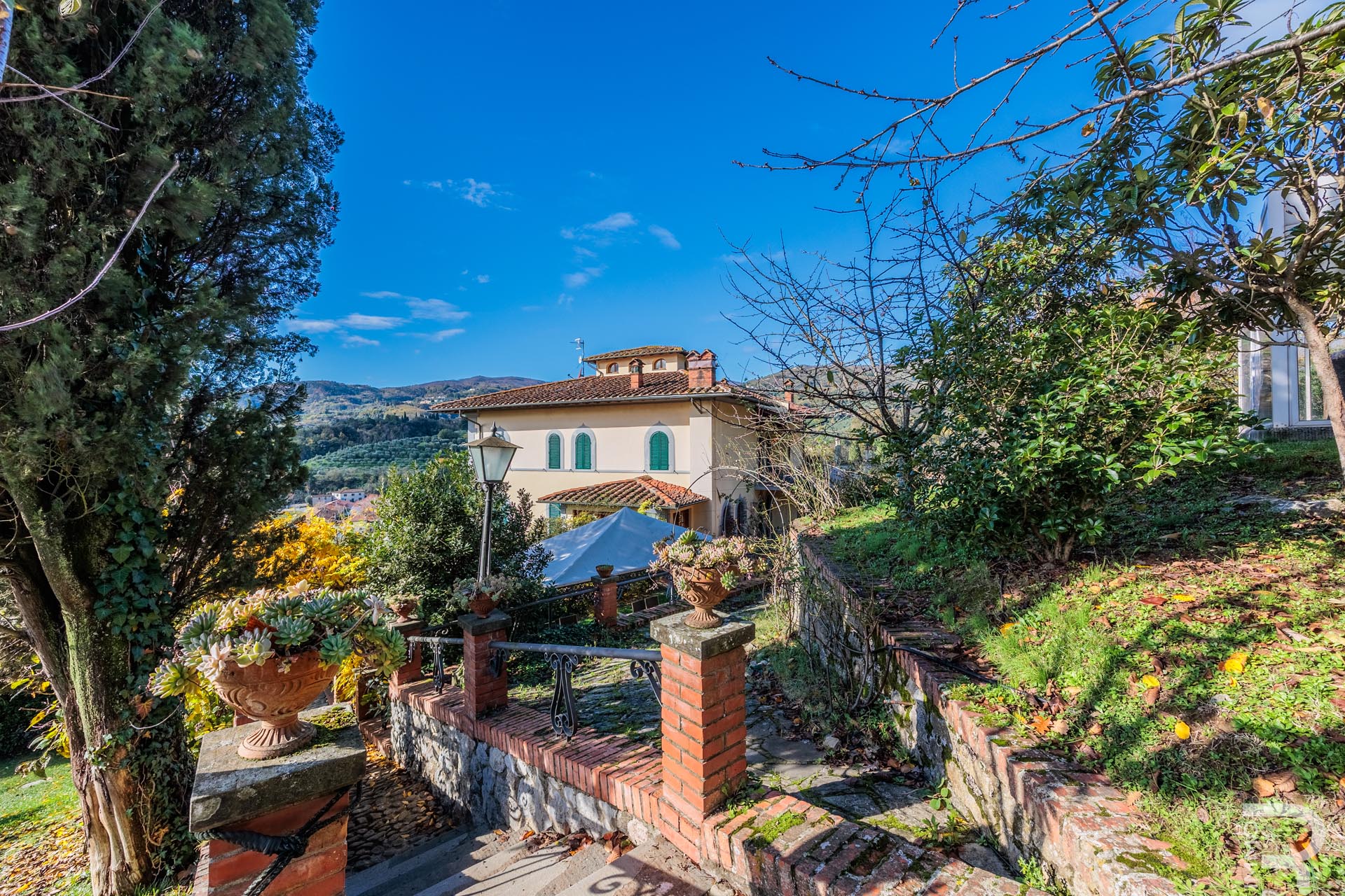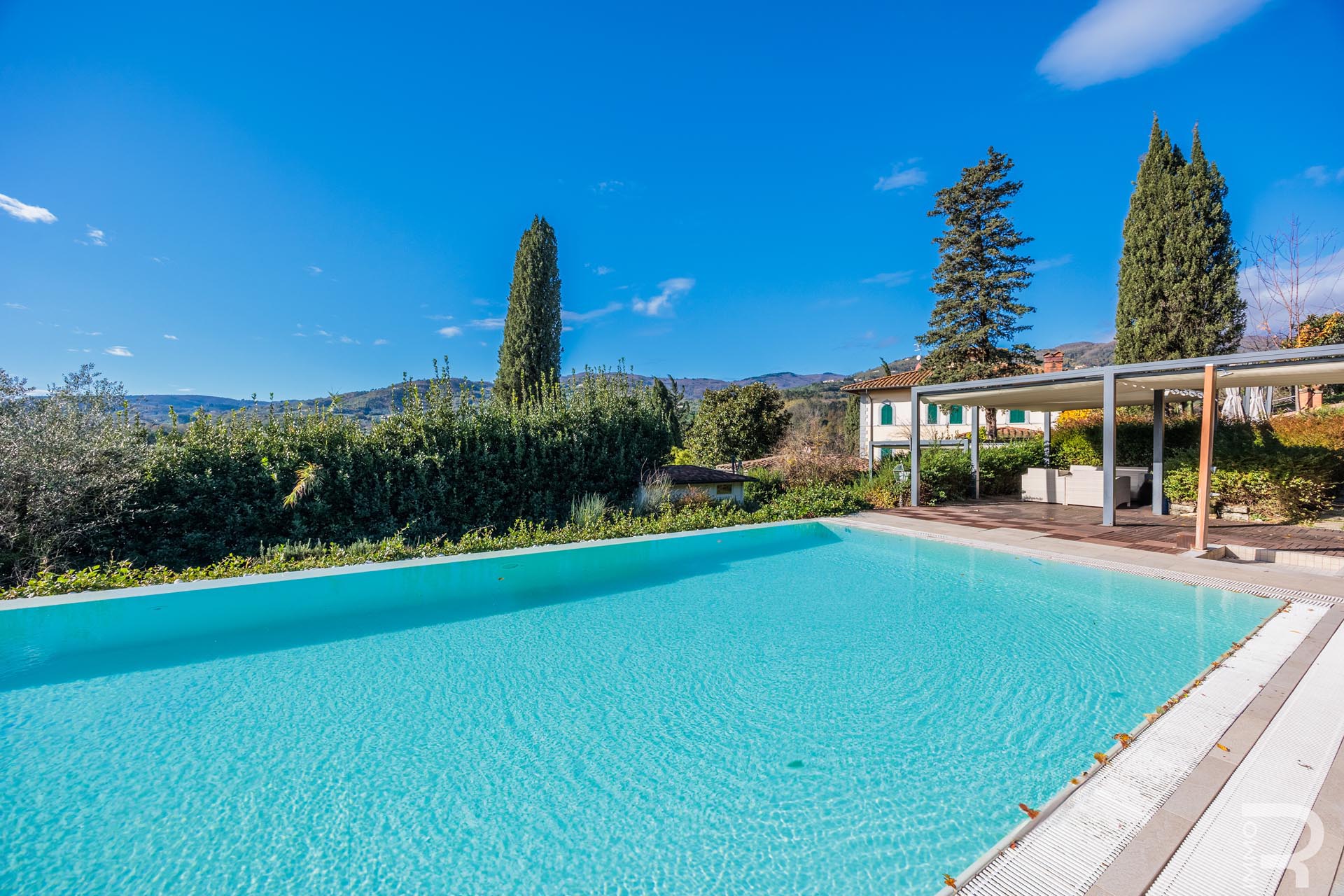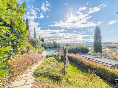R06692PIAG - Diese traumhafte Villa ist eine historische Residenz von besonderem Charme, eingebettet in eine ruhige und exklusive Hügellandschaft nur wenige Minuten von Pistoia entfernt. Sie wurde Anfang des 19. Jahrhunderts von Ing. Parri erbaut, dem Planer der ersten Eisenbahnlinie Mittelitaliens. Anlässlich der Einweihung dieser Bahnlinie wohnten sogar der Großherzog der Toskana Leopoldo II. und der Erbprinz von Italien in der Villa, was ihre historische Bedeutung bis heute spürbar macht.