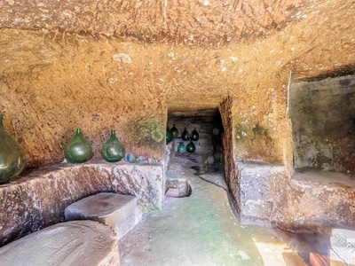 Ein besonderes Highlight sind die insgesamt acht in den Tuffstein gehauenen etruskischen Höhlen, die dem Anwesen eine einzigartige historische Dimension verleihen. Ergänzt wird dies durch einen Weinkeller sowie einen weiteren Raum, der als Abstellfläche oder Garage genutzt werden kann.