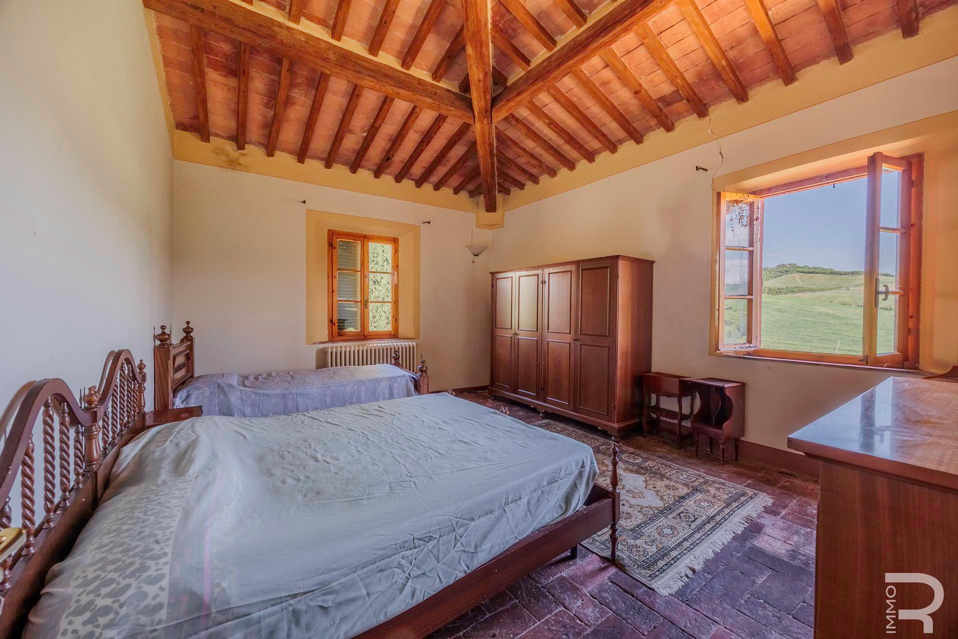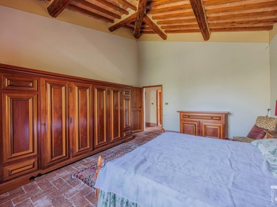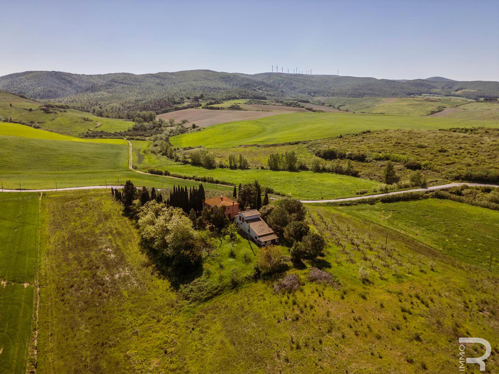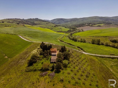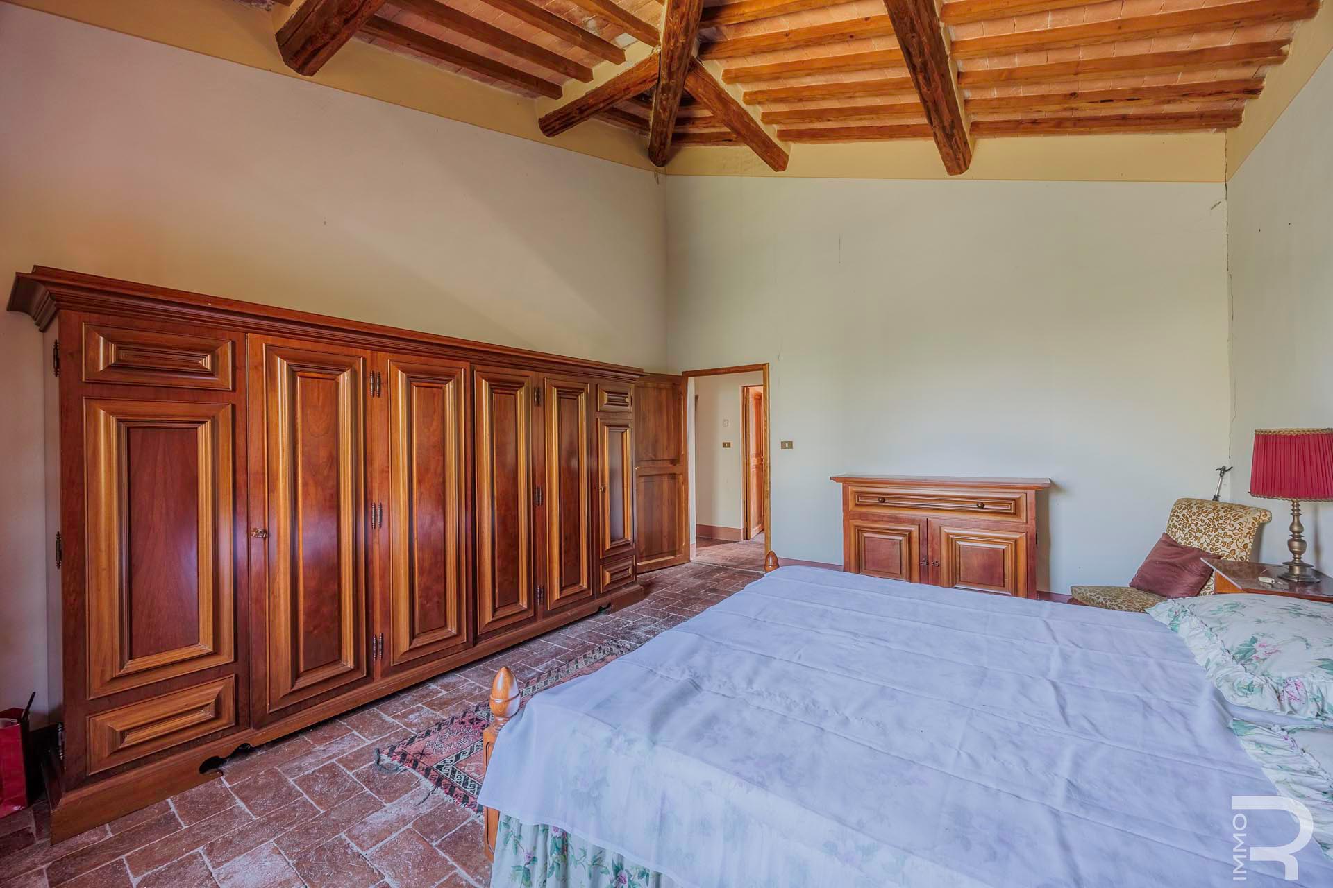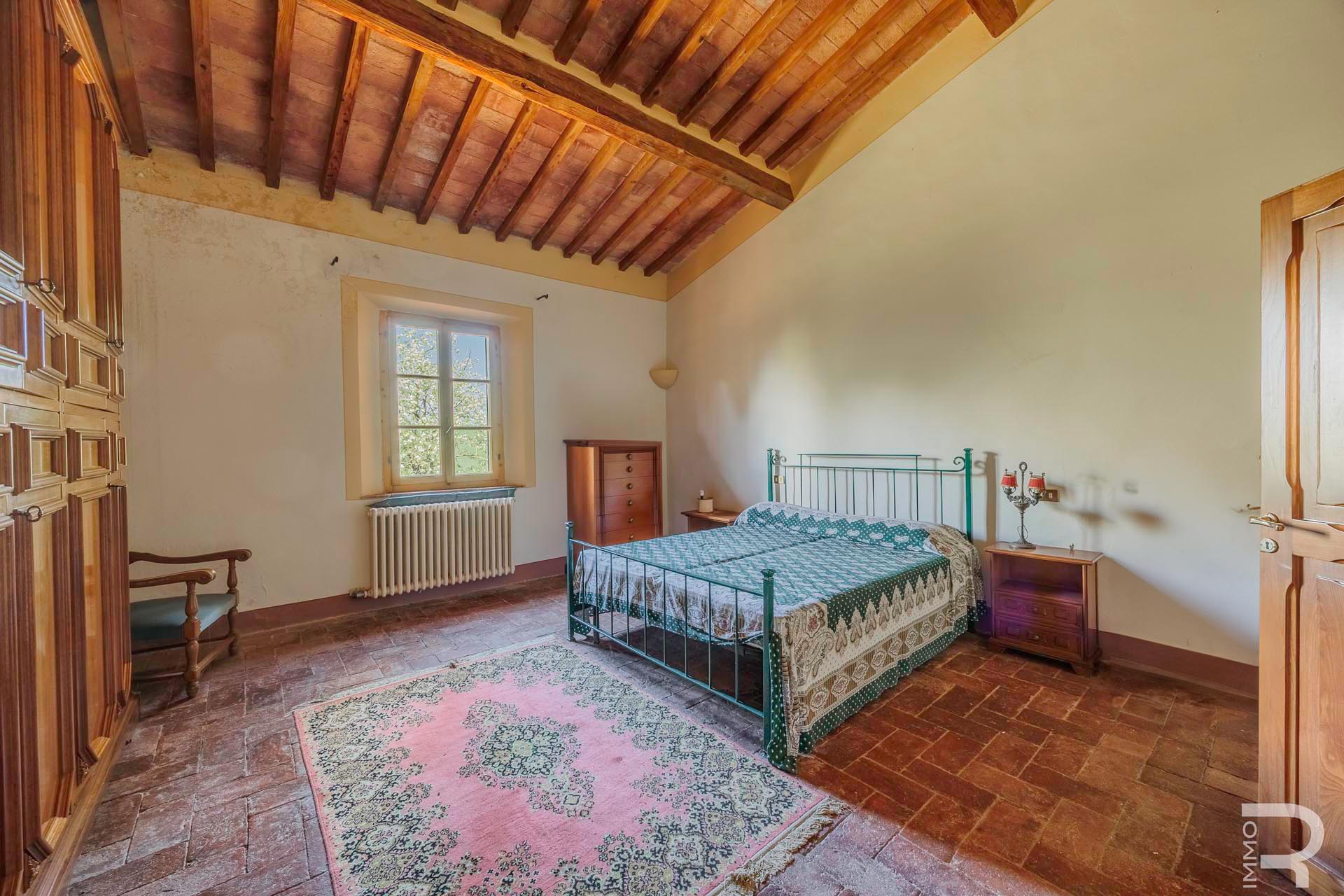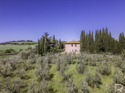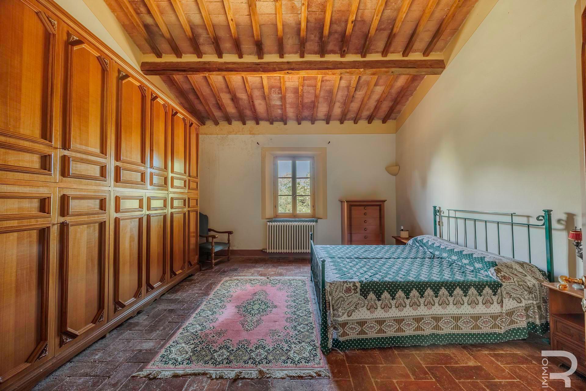 R07177CARU - Dieses eindrucksvolle Anwesen mit Bauernhaus und Scheune befindet sich in erhöhter Lage und dominiert mit seiner einzigartigen Position die gesamte umliegende Landschaft. Eine malerische Zypressenallee führt hinauf zum Haus und unterstreicht bereits bei der Zufahrt den besonderen Charakter dieser Immobilie.
