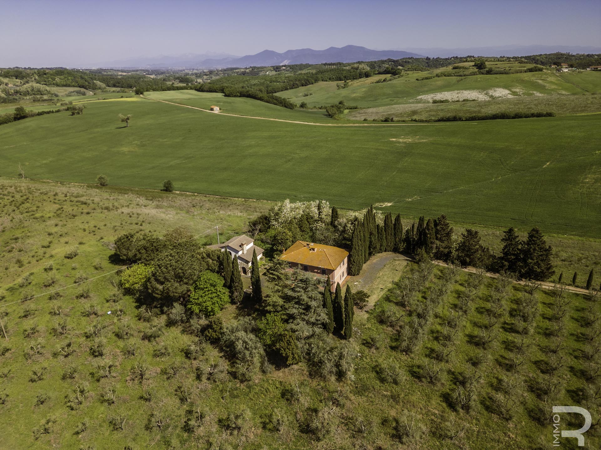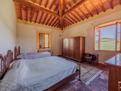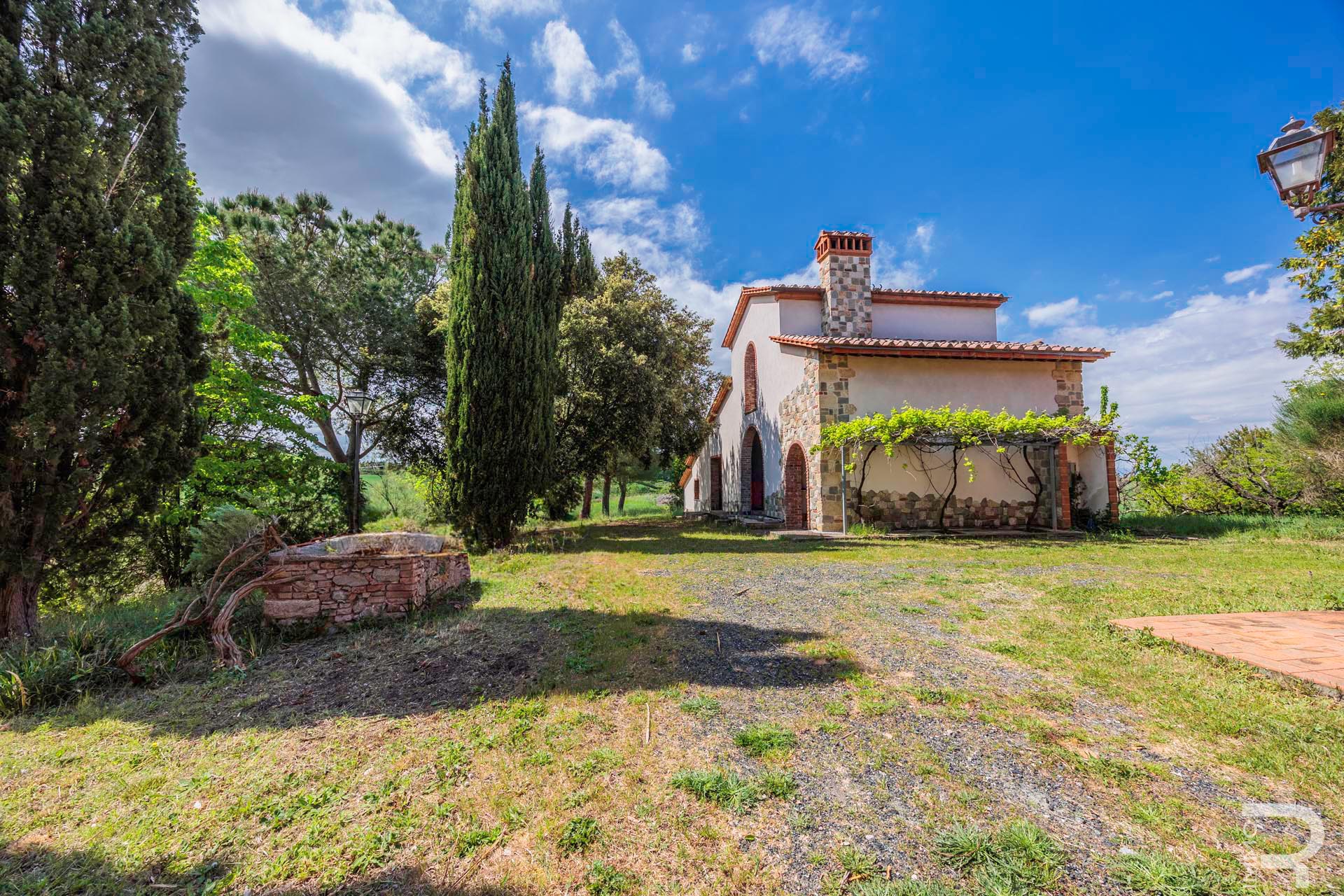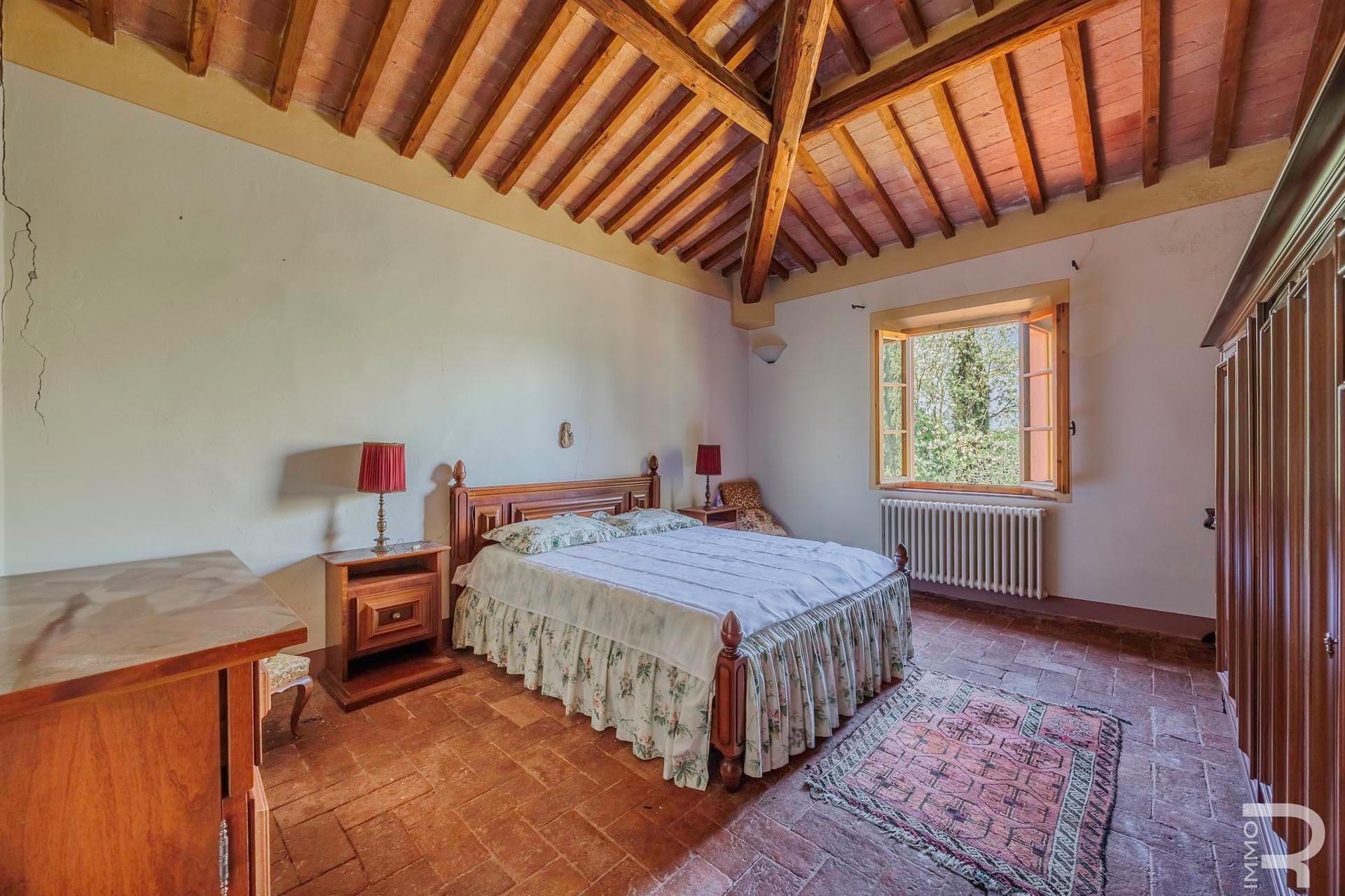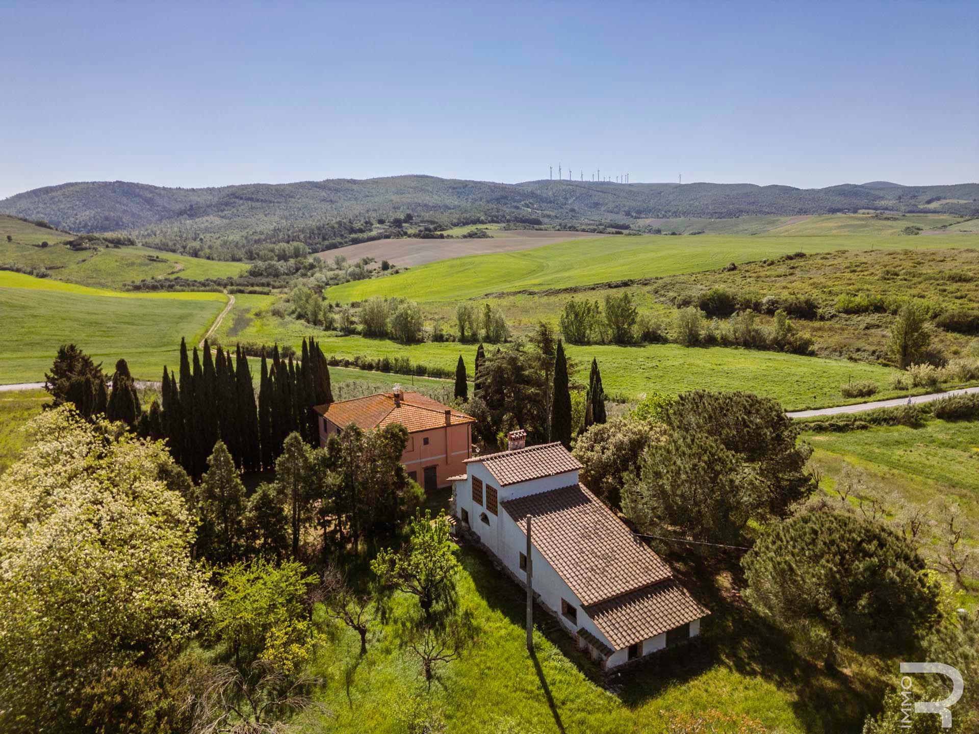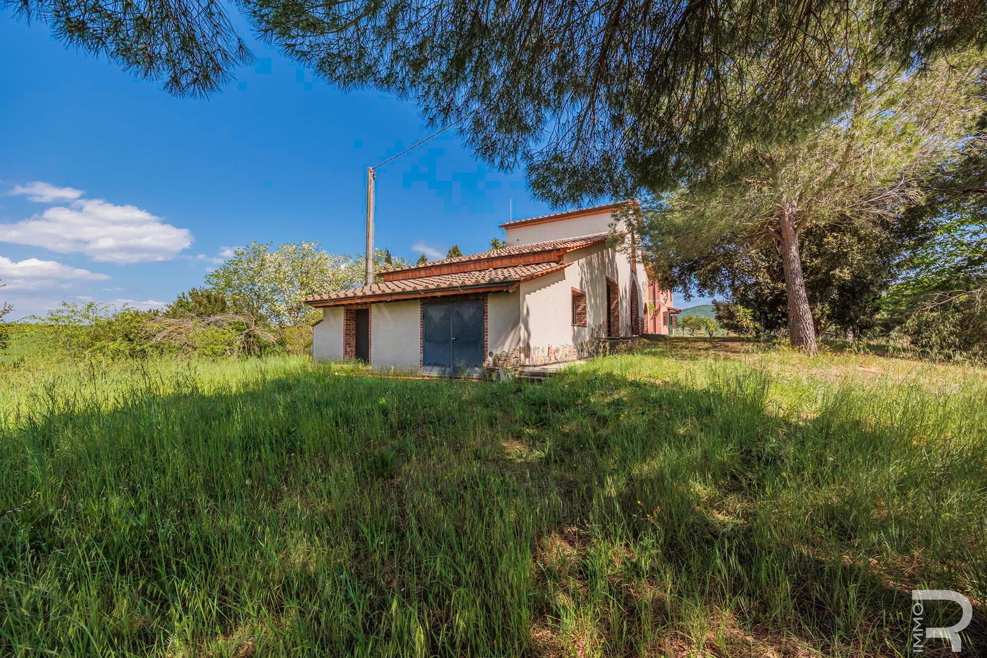 R07177CARU - Dieses eindrucksvolle Anwesen mit Bauernhaus und Scheune befindet sich in erhöhter Lage und dominiert mit seiner einzigartigen Position die gesamte umliegende Landschaft. Eine malerische Zypressenallee führt hinauf zum Haus und unterstreicht bereits bei der Zufahrt den besonderen Charakter dieser Immobilie.