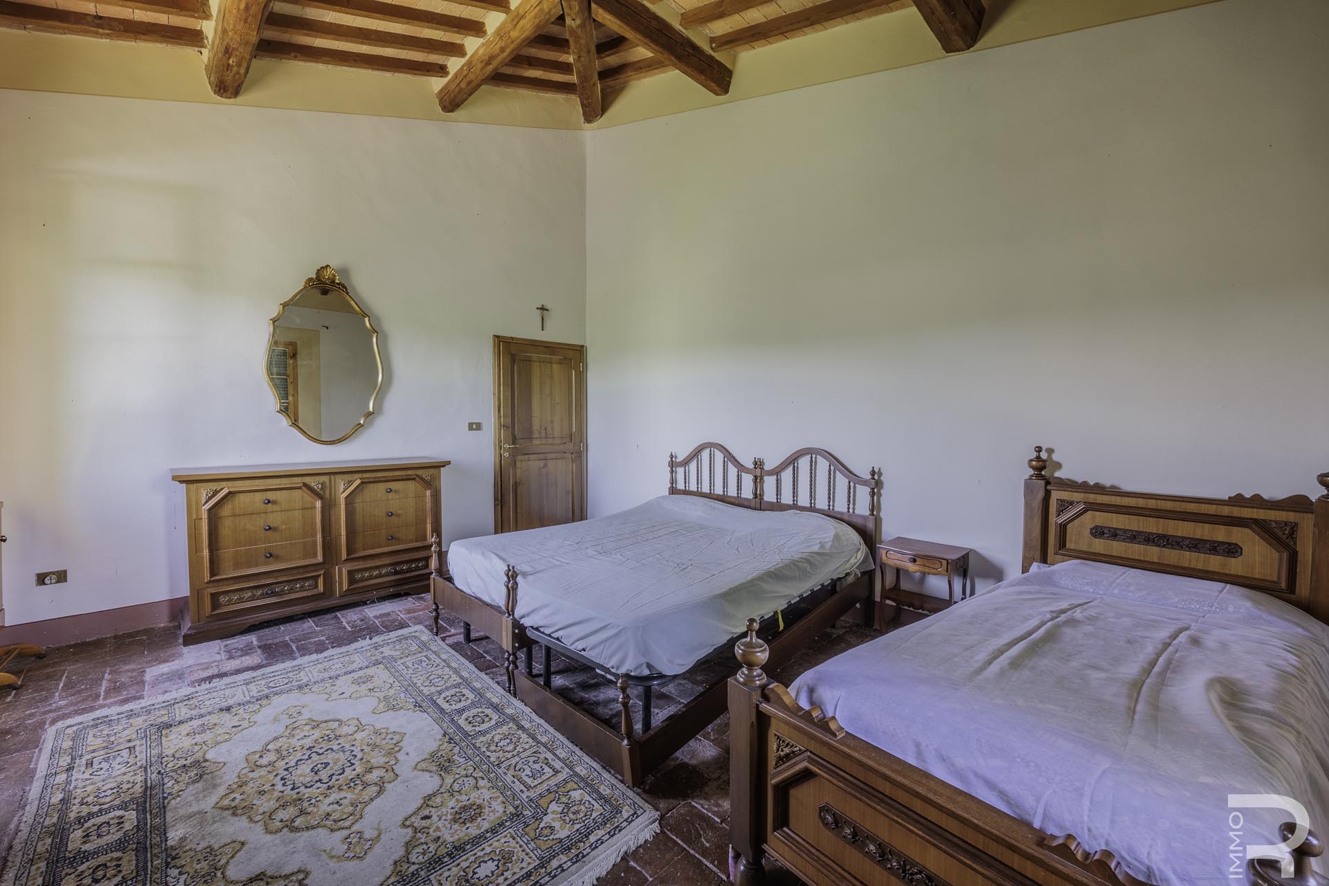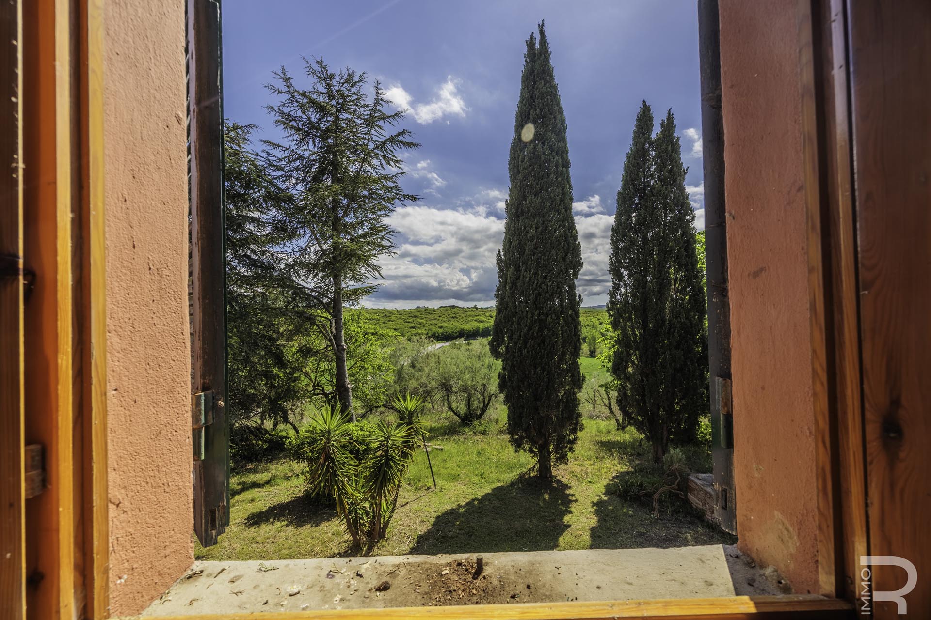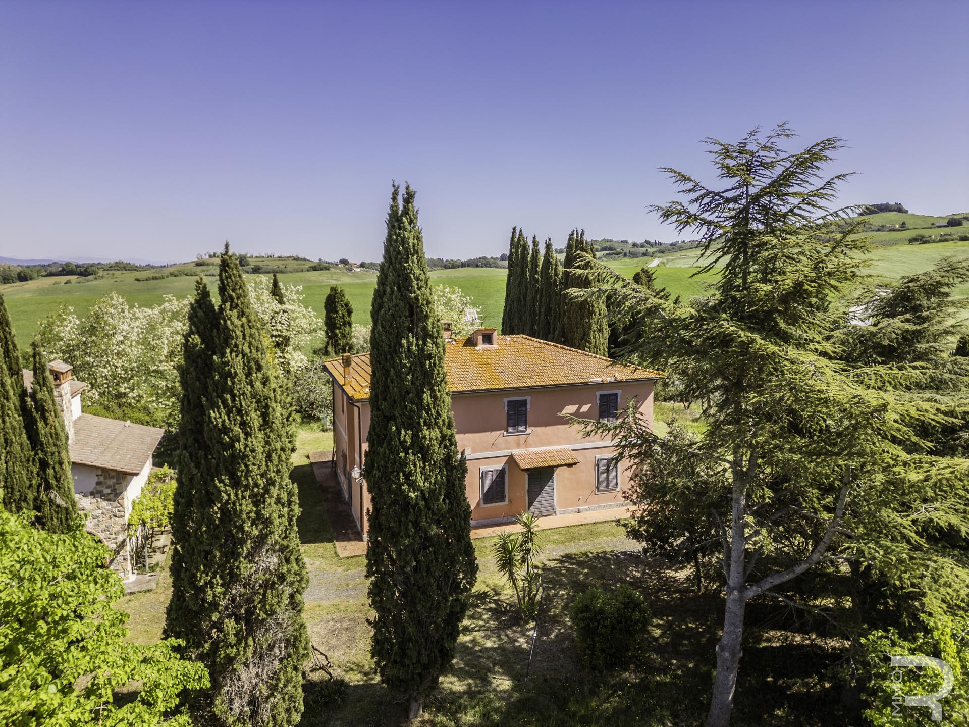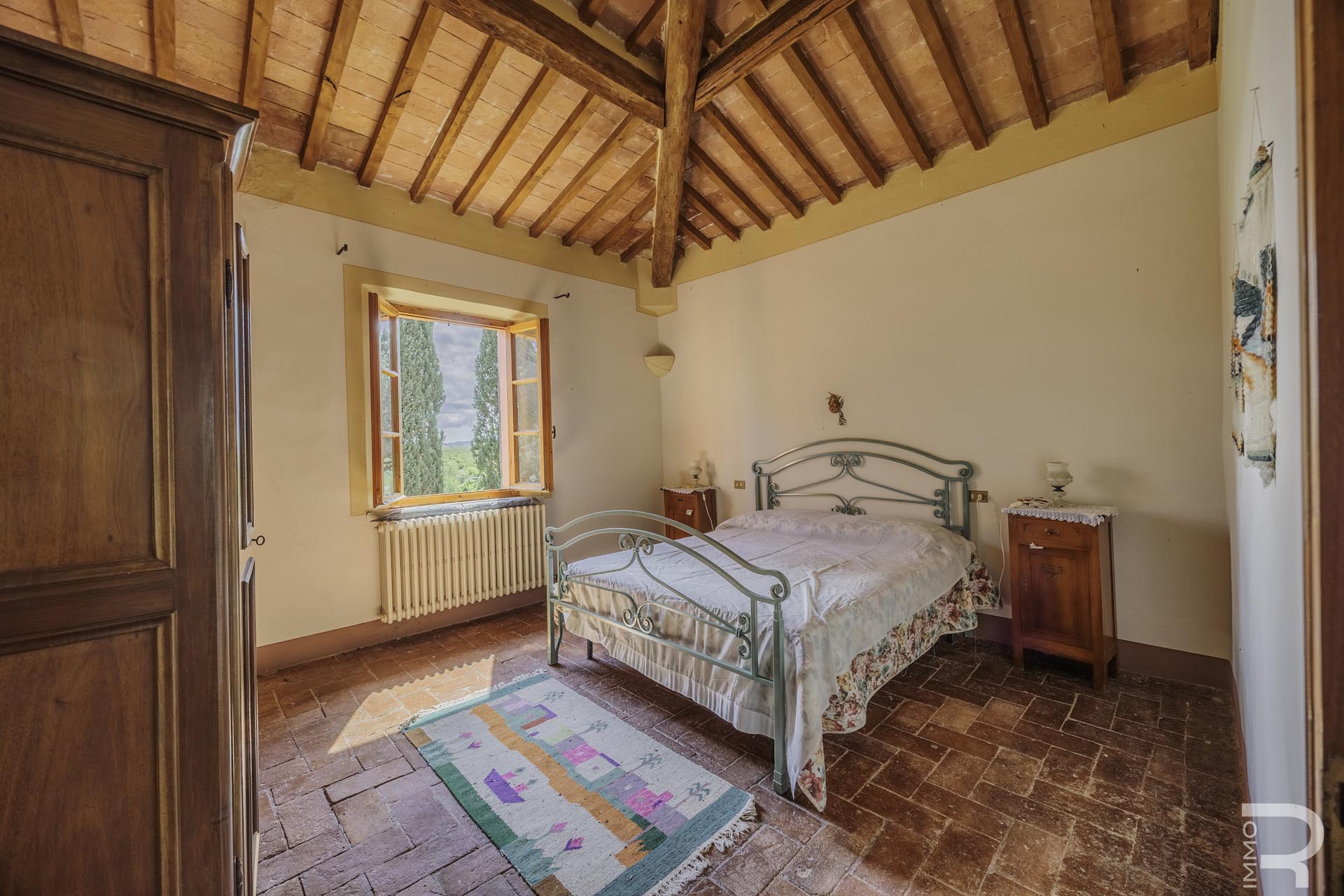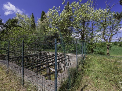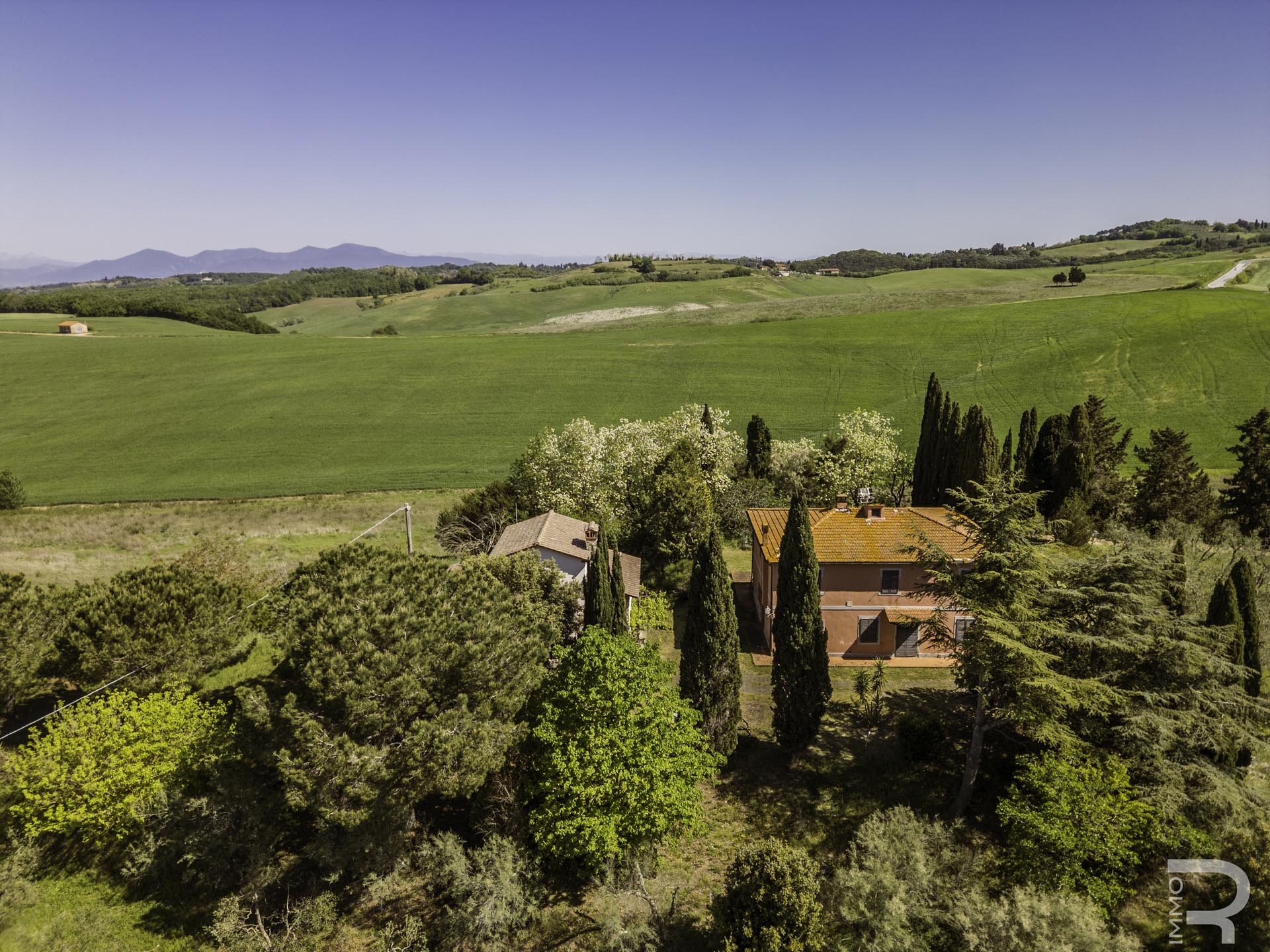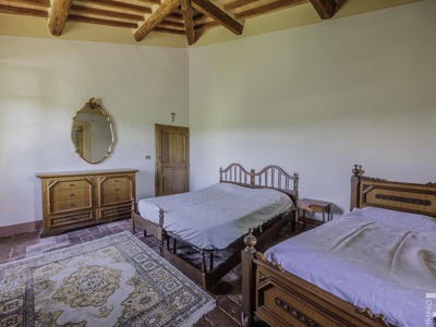 R07177CARU - Dieses eindrucksvolle Anwesen mit Bauernhaus und Scheune befindet sich in erhöhter Lage und dominiert mit seiner einzigartigen Position die gesamte umliegende Landschaft. Eine malerische Zypressenallee führt hinauf zum Haus und unterstreicht bereits bei der Zufahrt den besonderen Charakter dieser Immobilie.