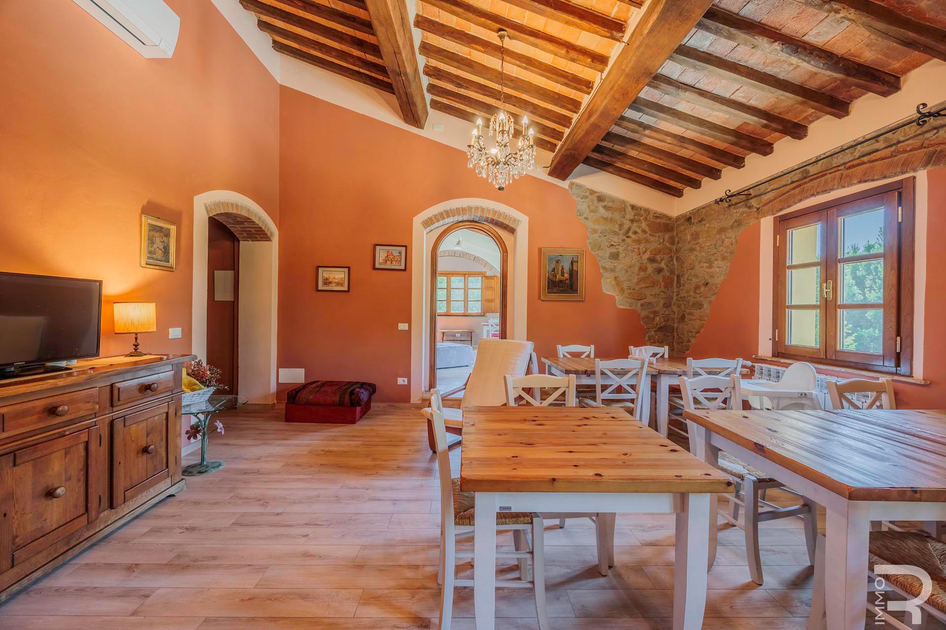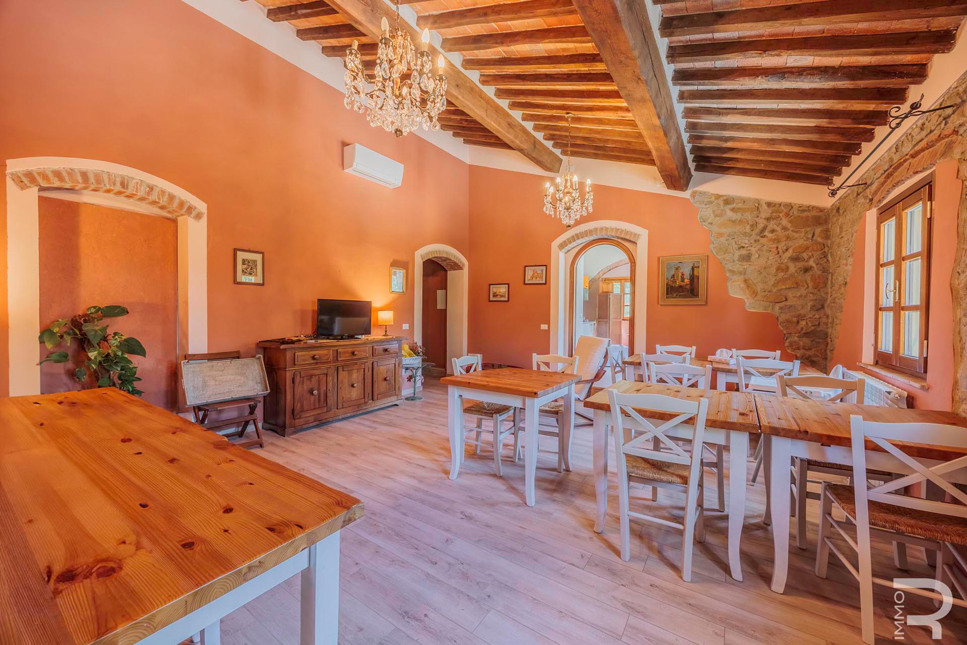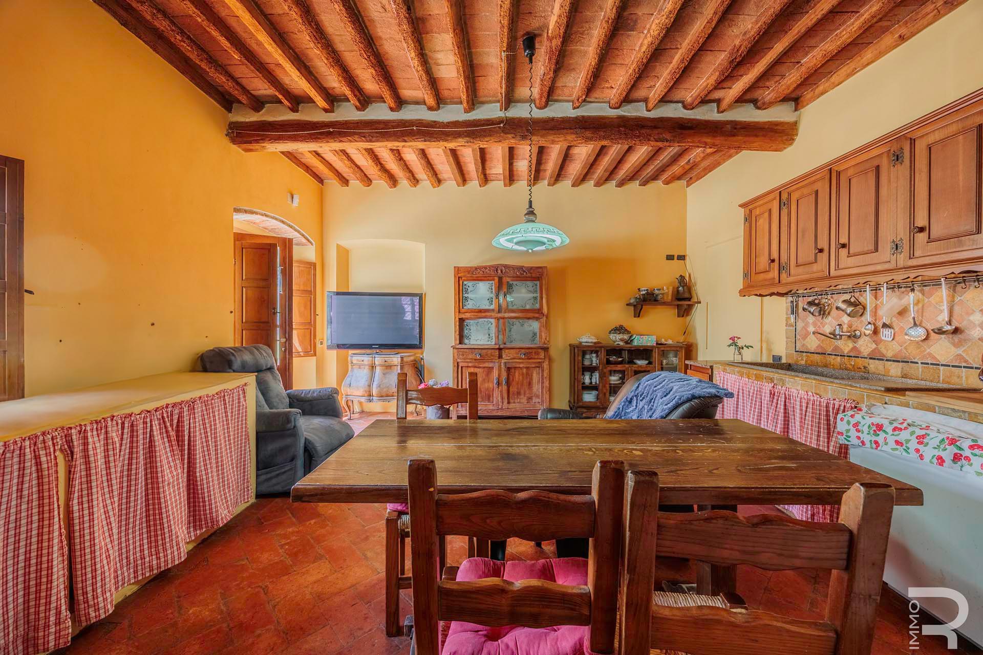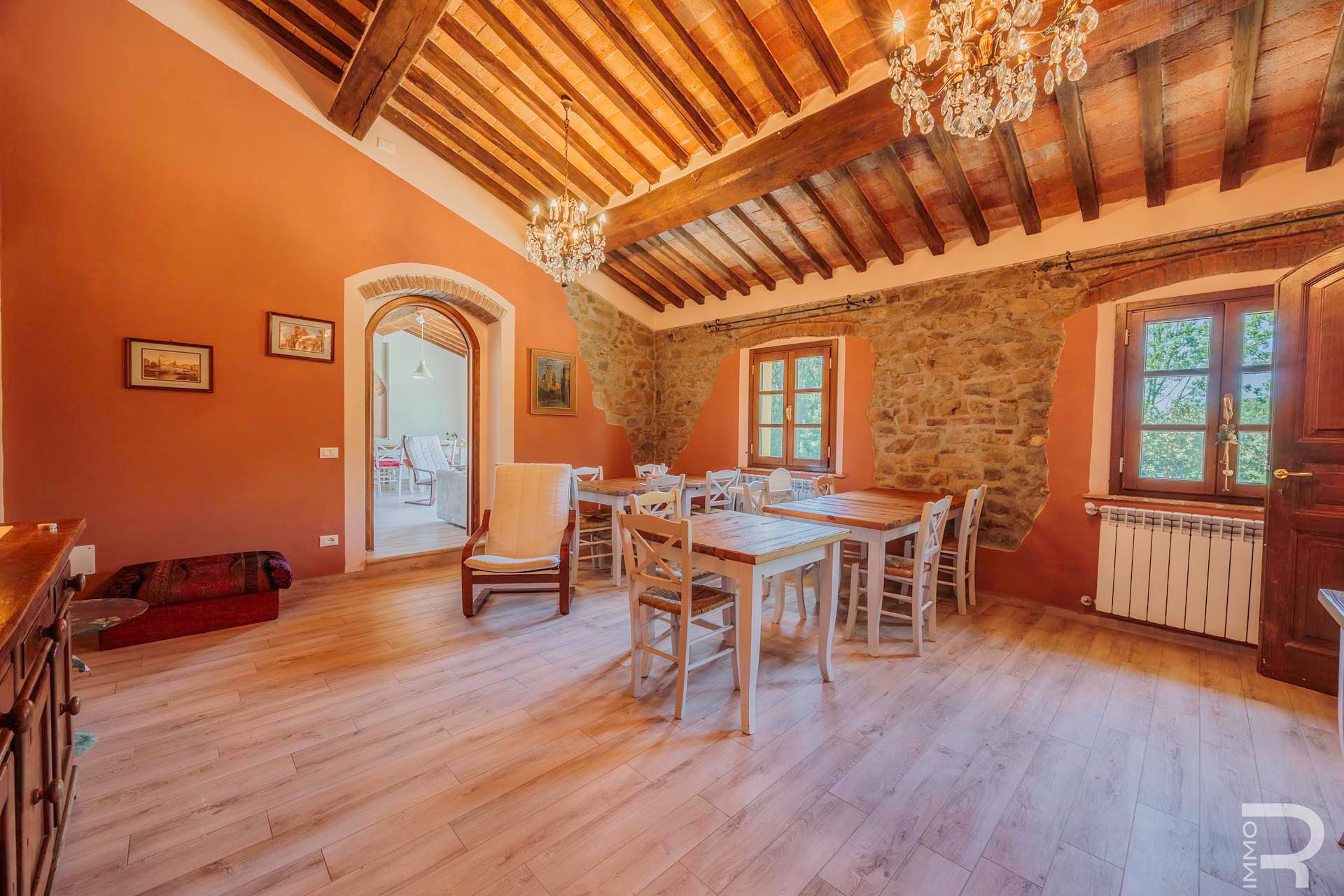 R07183SARU - Dieses ländlich gelegene Bauernhaus mit Nebengebäude verbindet den Charme eines traditionellen Anwesens mit interessanten Nutzungsmöglichkeiten, insbesondere im Bereich Agriturismo. Trotz der ruhigen Umgebung sind alle wichtigen Annehmlichkeiten in kurzer Entfernung erreichbar, was eine ideale Balance zwischen Natur und Alltag bietet.
