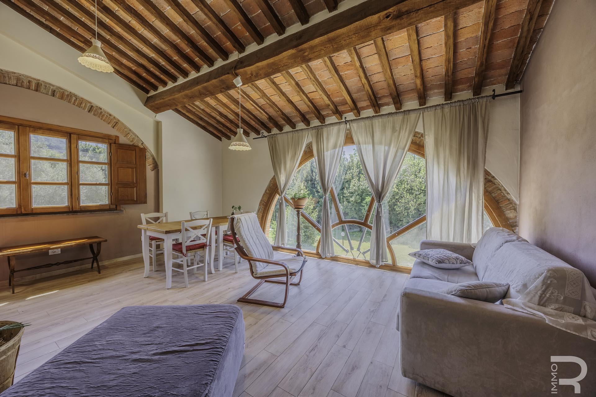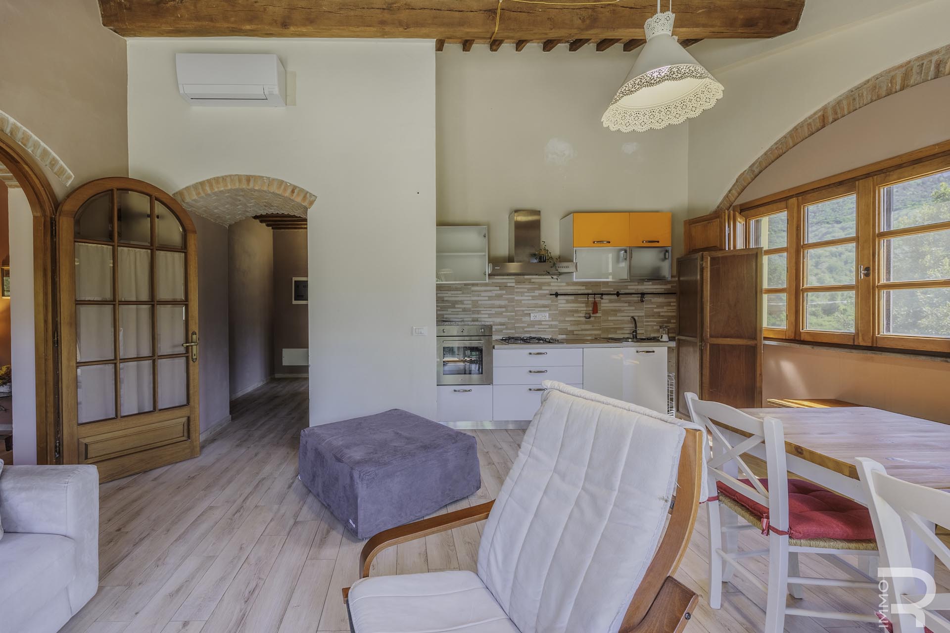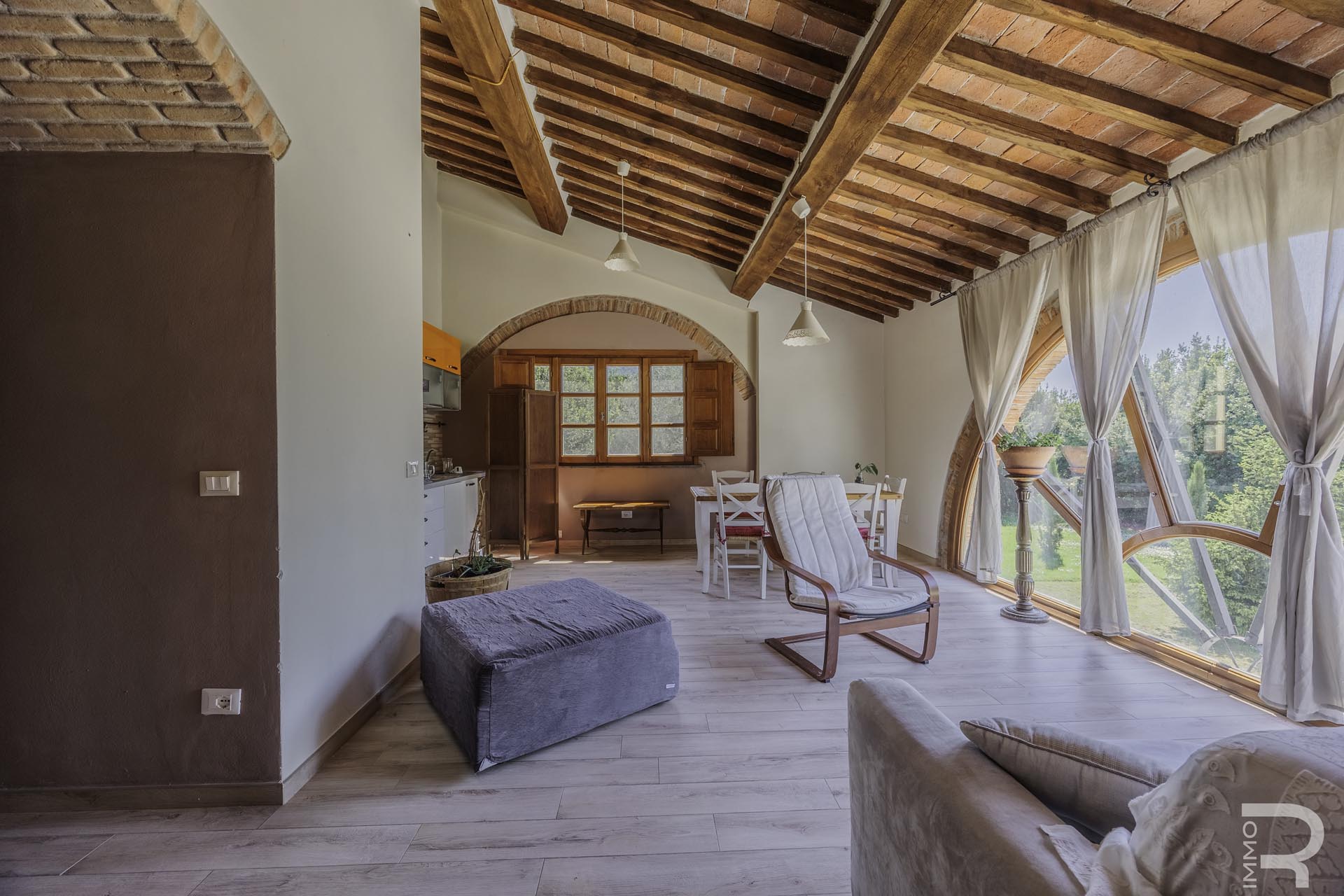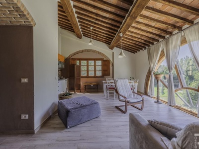 R07183SARU - Dieses ländlich gelegene Bauernhaus mit Nebengebäude verbindet den Charme eines traditionellen Anwesens mit interessanten Nutzungsmöglichkeiten, insbesondere im Bereich Agriturismo. Trotz der ruhigen Umgebung sind alle wichtigen Annehmlichkeiten in kurzer Entfernung erreichbar, was eine ideale Balance zwischen Natur und Alltag bietet.
