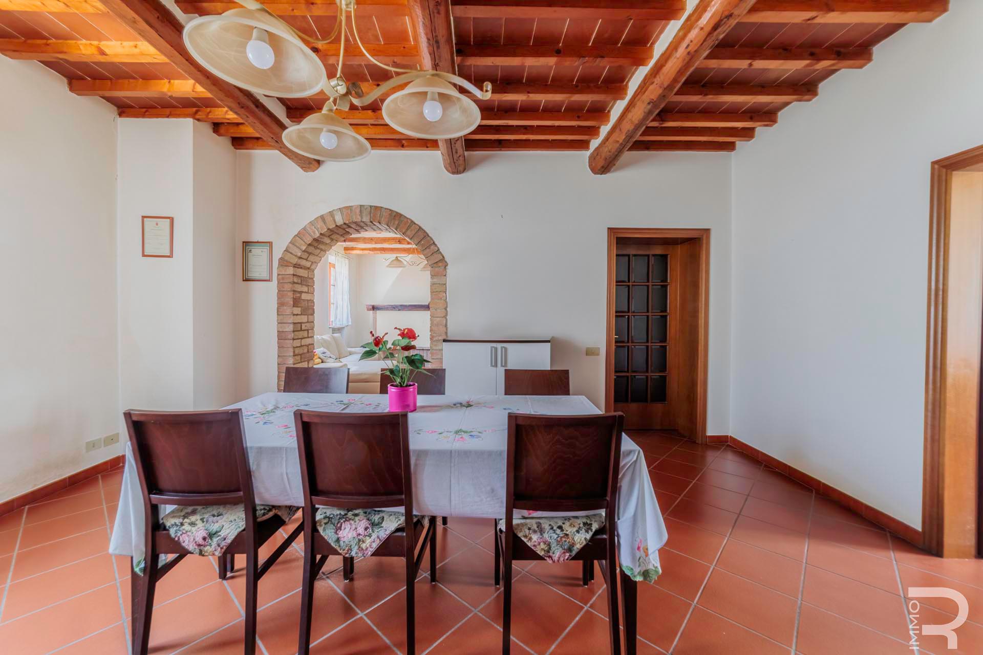 R07140PODH - Dieses charmante Anwesen ist Teil eines Bauernhauses, das auf drei Seiten frei steht, und befindet sich im Dorf Staggia Senese in unmittelbarer Nähe zu allen wichtigen Annehmlichkeiten. Die Kombination aus zentraler Lage und traditionellem Charakter macht diese Immobilie besonders attraktiv.