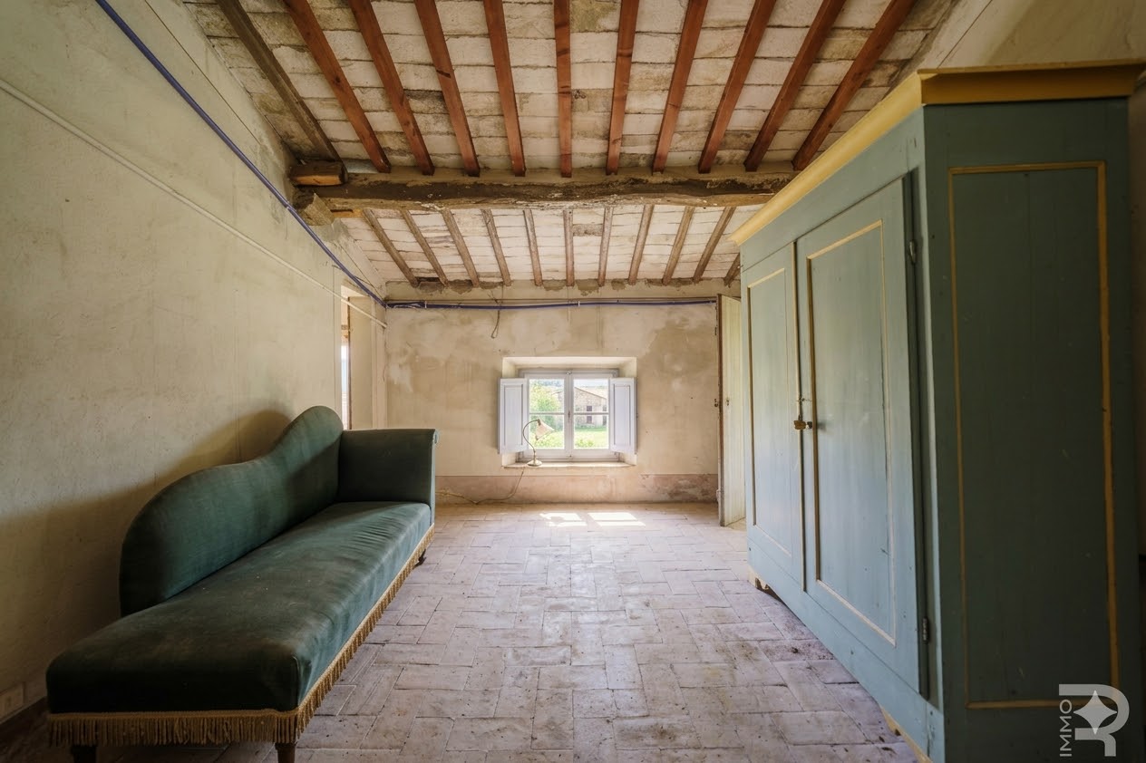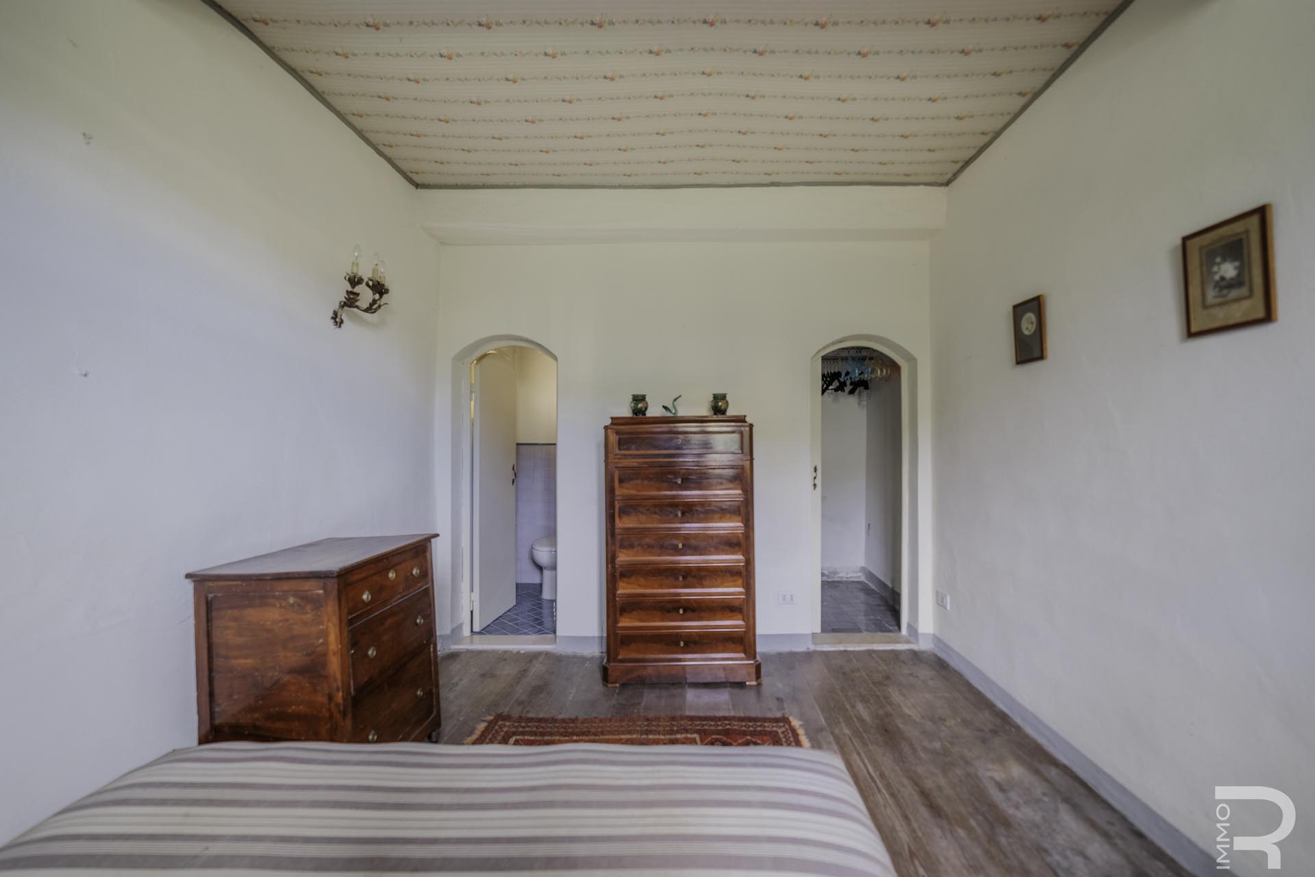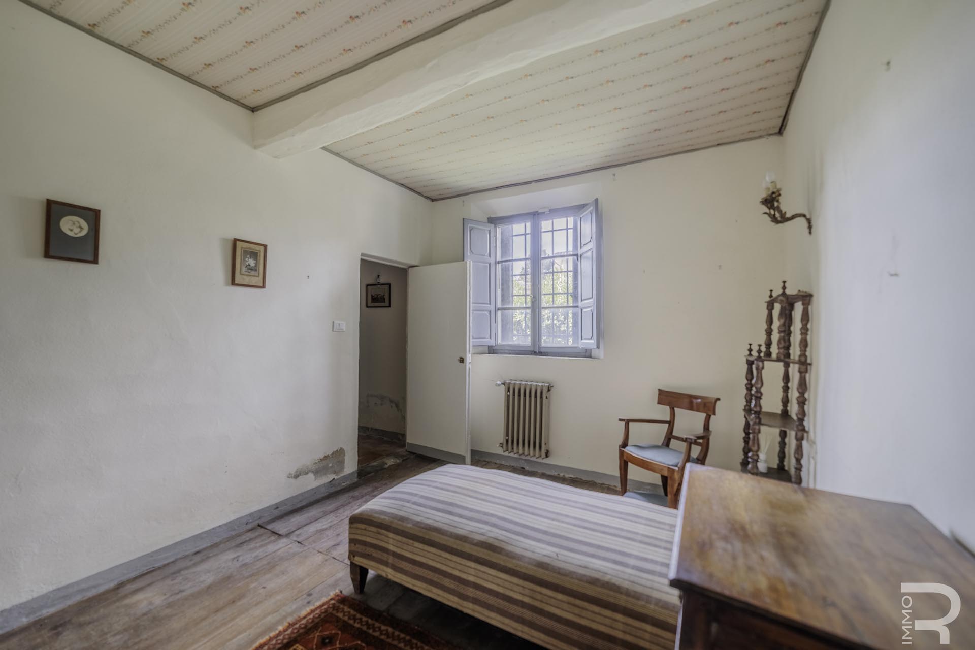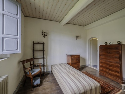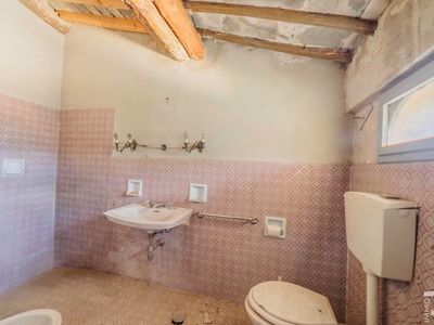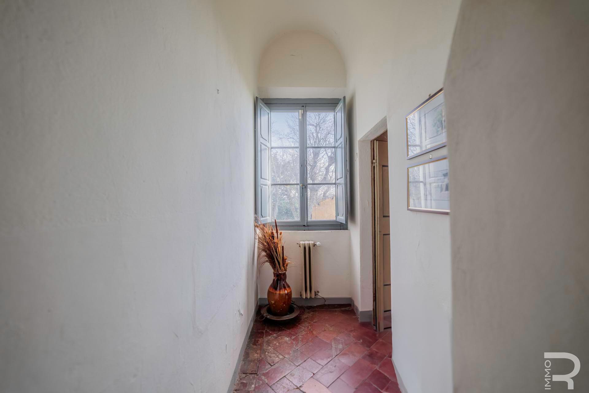 Die Villa erstreckt sich über zwei Etagen und verfügt über insgesamt 6 Schlafzimmer sowie 4 Badezimmer. Großzügige Räume und die klassische Architektur prägen das Erscheinungsbild. Besonders hervorzuheben sind einige Innenwände, die mit dekorativen Fresken verziert sind und den historischen Charakter der Immobilie unterstreichen.