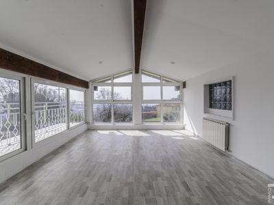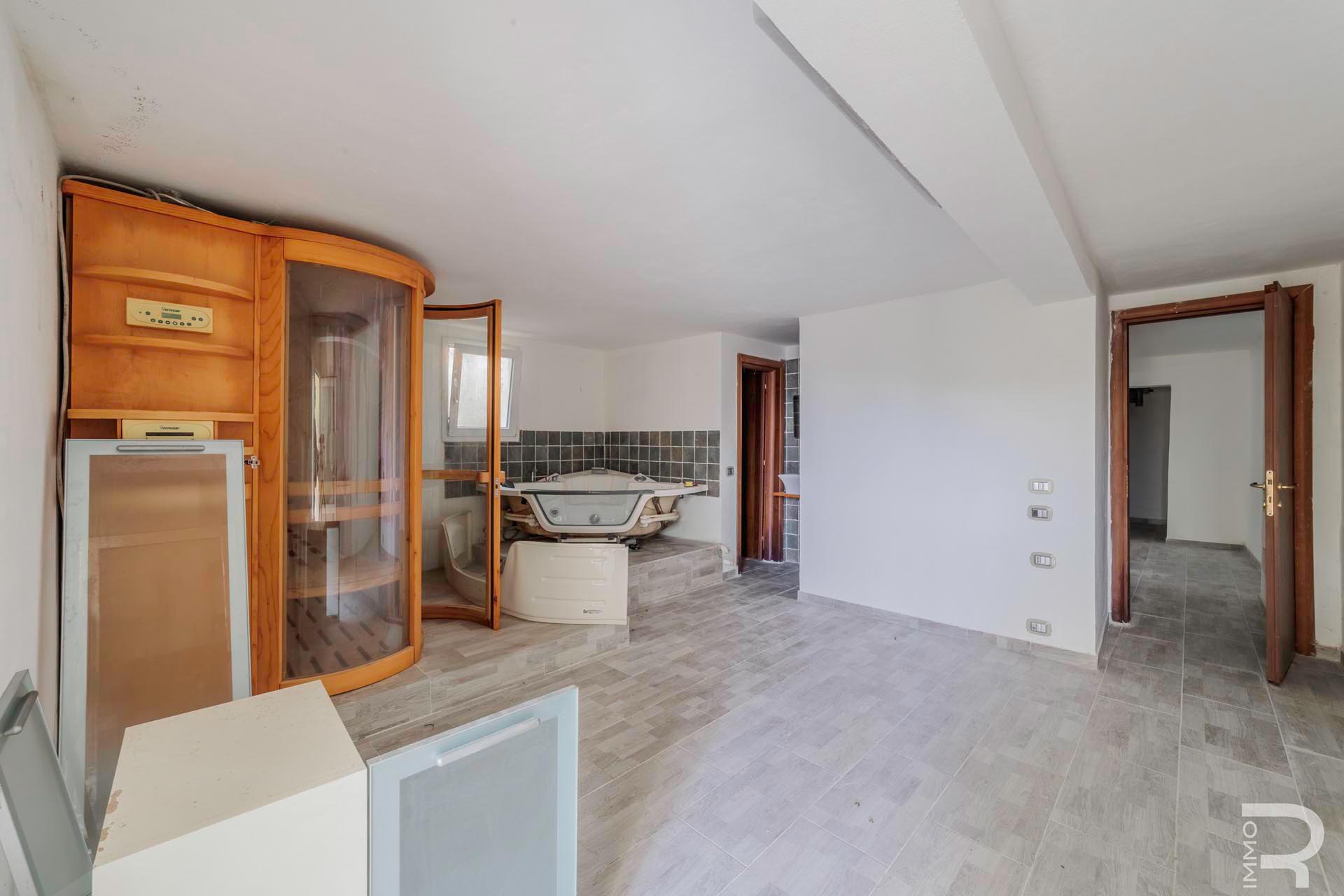Das Gebäude erstreckt sich über zwei Etagen und bietet großzügige Wohnräume mit viel Licht. Ergänzt wird die Villa durch einen verglasten Dachboden, der dank seiner großen Fenster einen beeindruckenden Panoramablick bietet und sich ideal als zusätzlicher Wohn- oder Rückzugsbereich nutzen lässt. Im Untergeschoss befindet sich zudem ein Kellerbereich mit einem Spa, der den Wohnkomfort zusätzlich unterstreicht und einen privaten Wellnessbereich im eigenen Haus schafft.
