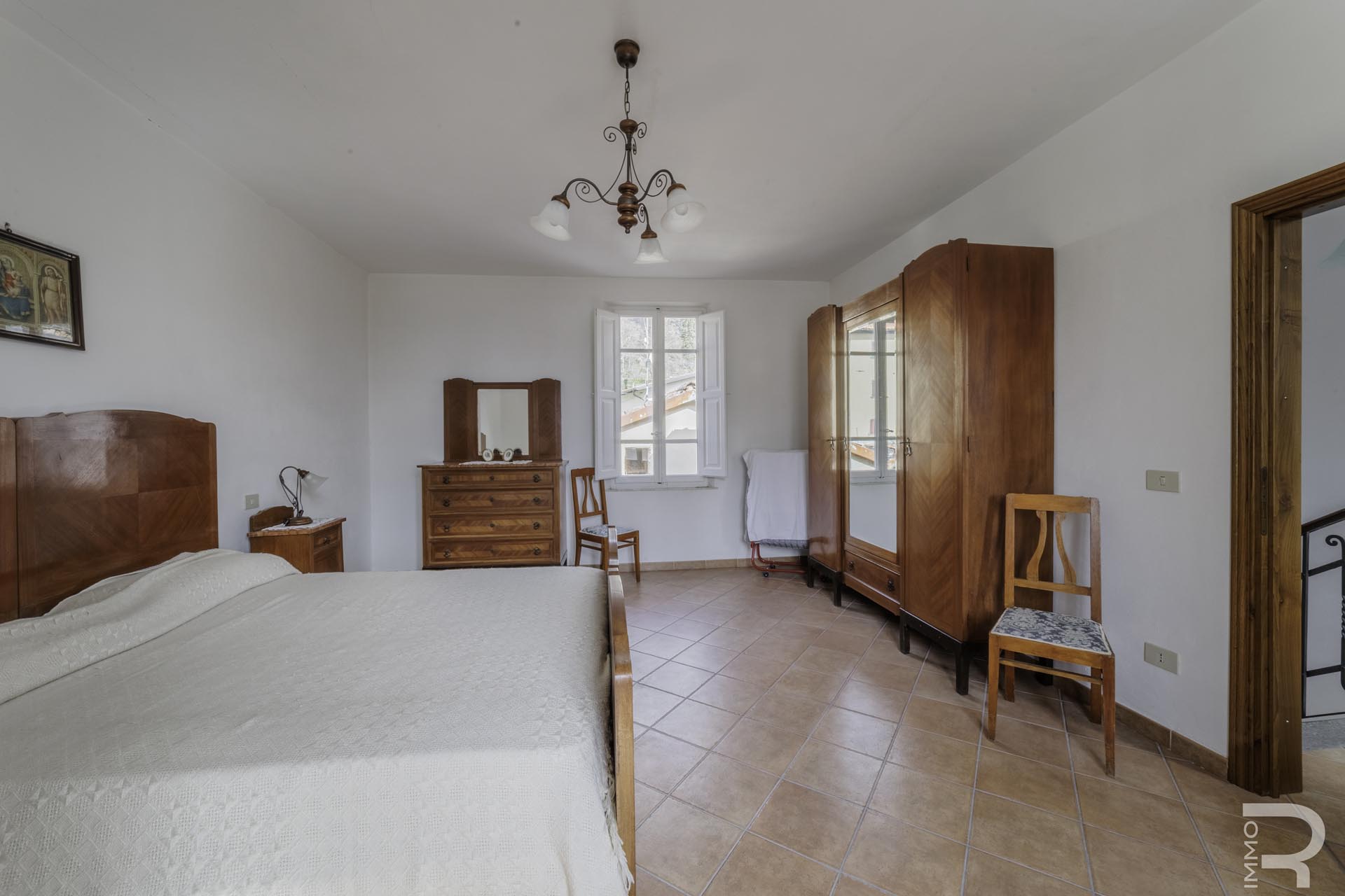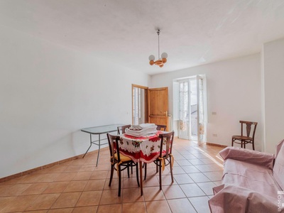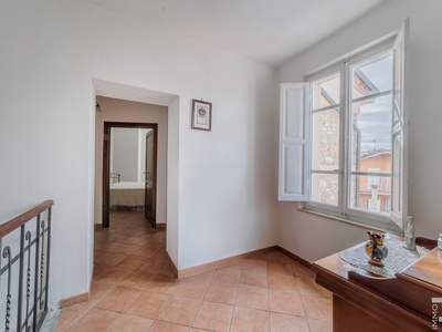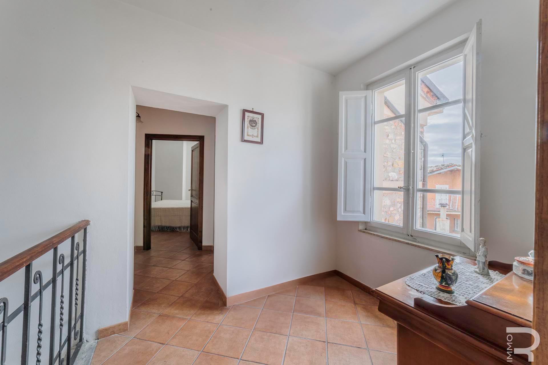 Die Hauptwohnung erstreckt sich über den ersten und zweiten Stock des Hauses und bietet großzügige Wohnräume mit viel Licht. Ein besonderes Highlight ist die große Panoramaterrasse, von der aus sich ein wunderschöner Blick auf die umliegenden Berge sowie auf das malerische Dorfzentrum eröffnet. Dieser Außenbereich eignet sich ideal, um entspannte Stunden im Freien zu verbringen und die besondere Atmosphäre der Umgebung zu genießen.