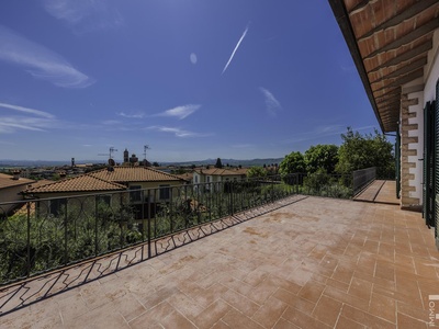 Ein besonderes Highlight ist der wunderschöne Balkon bzw. die Terrasse, von der aus sich ein herrlicher Blick auf das Zentrum von Sinalunga eröffnet – ideal für entspannte Stunden im Freien.