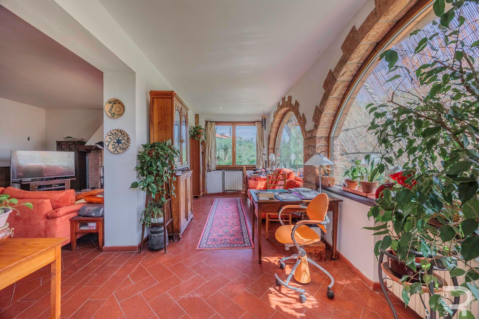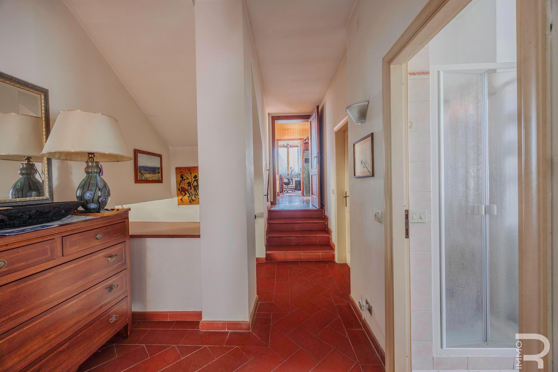 Das Anwesen verfügt zudem über viel Stauraum, einen Keller sowie eine Garage, die zusätzlichen Komfort bieten. Der ca. 1.500 m² große, vollständig umzäunte Garten ist mit rund 50 Olivenbäumen bepflanzt und schafft eine idyllische, private Atmosphäre mit typisch toskanischem Flair.
