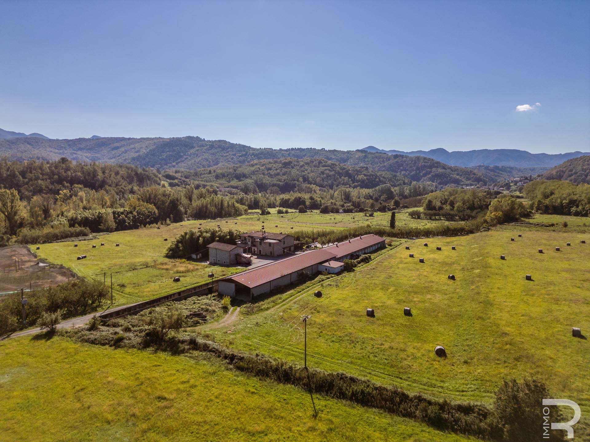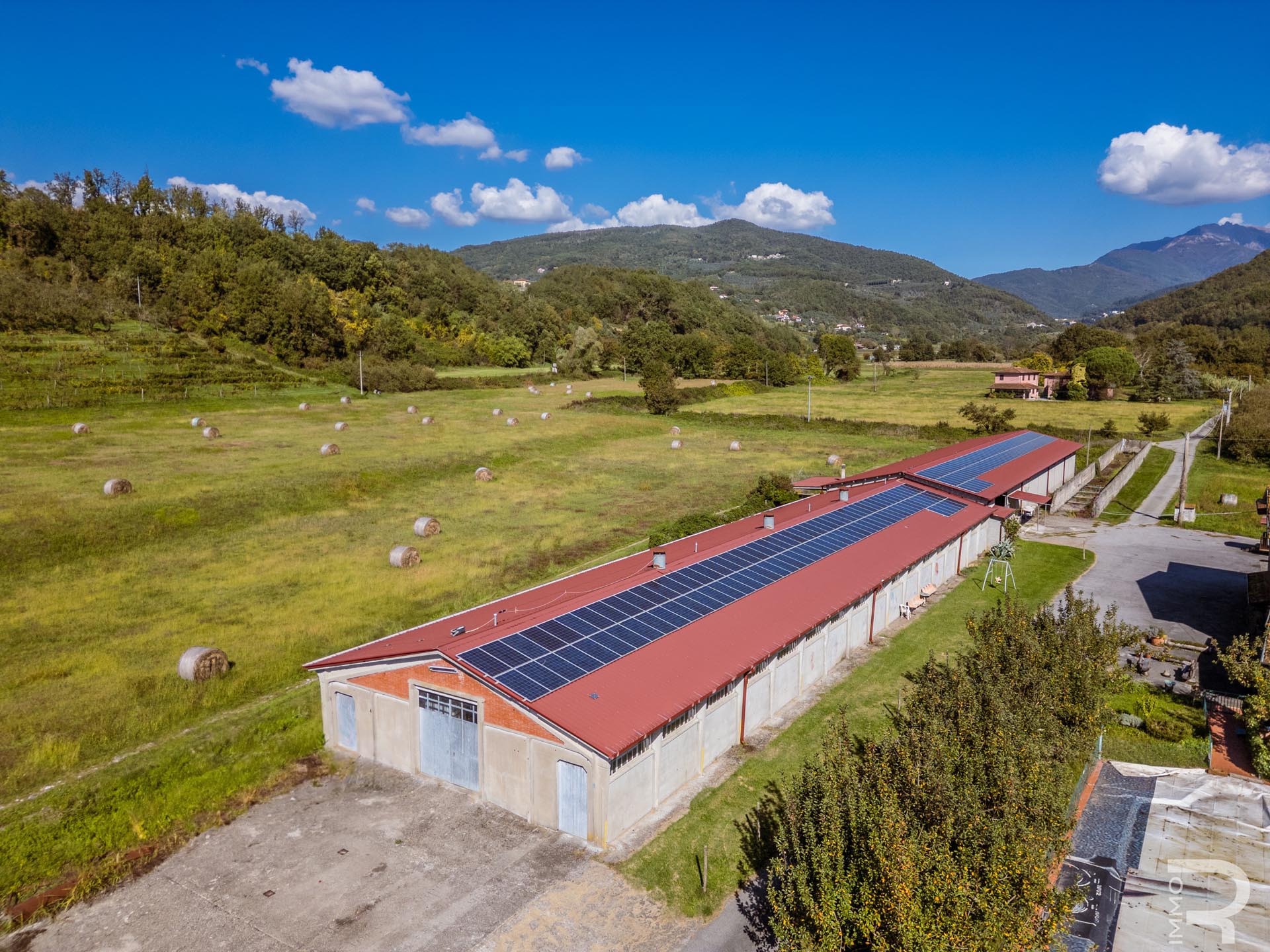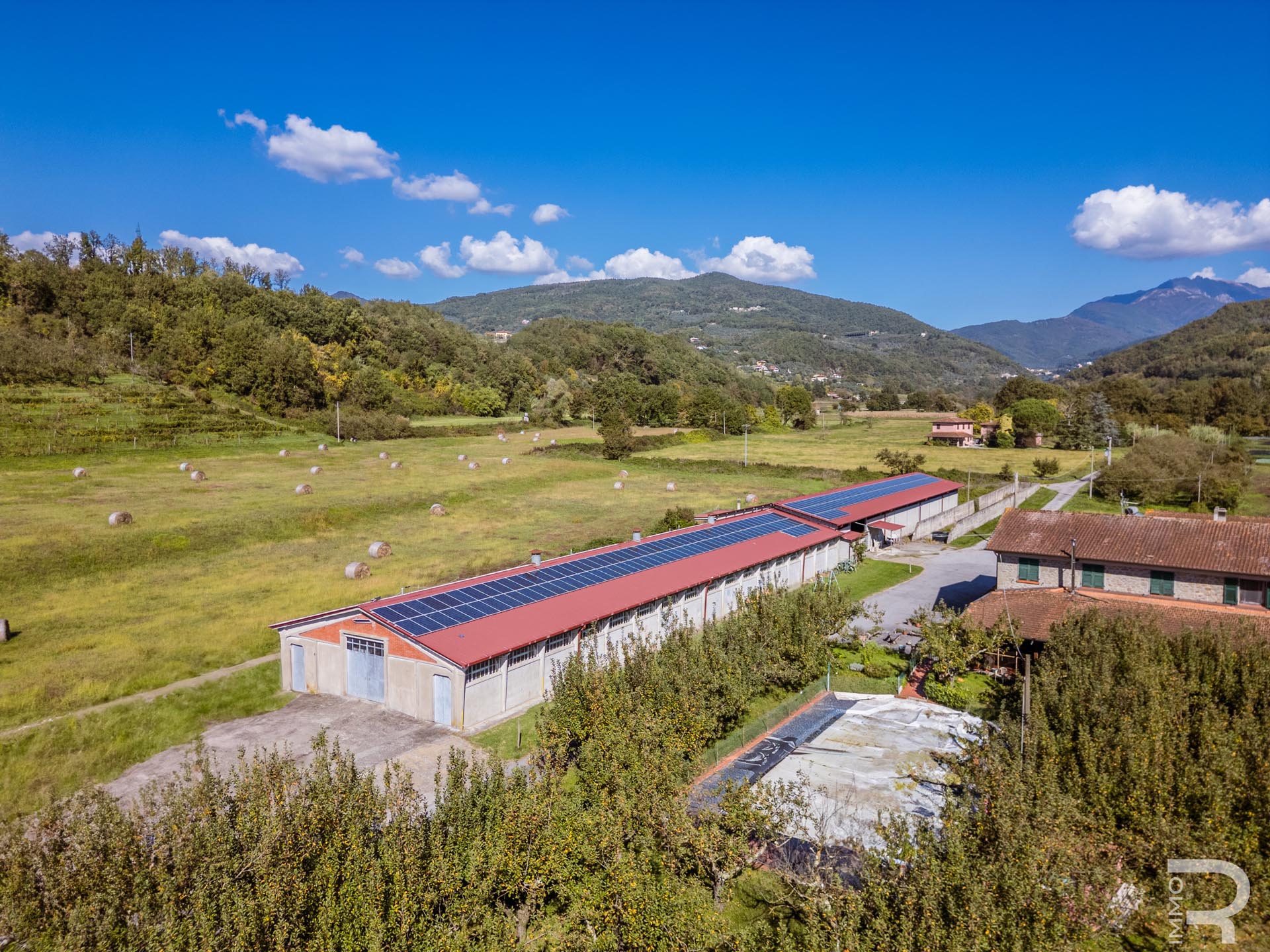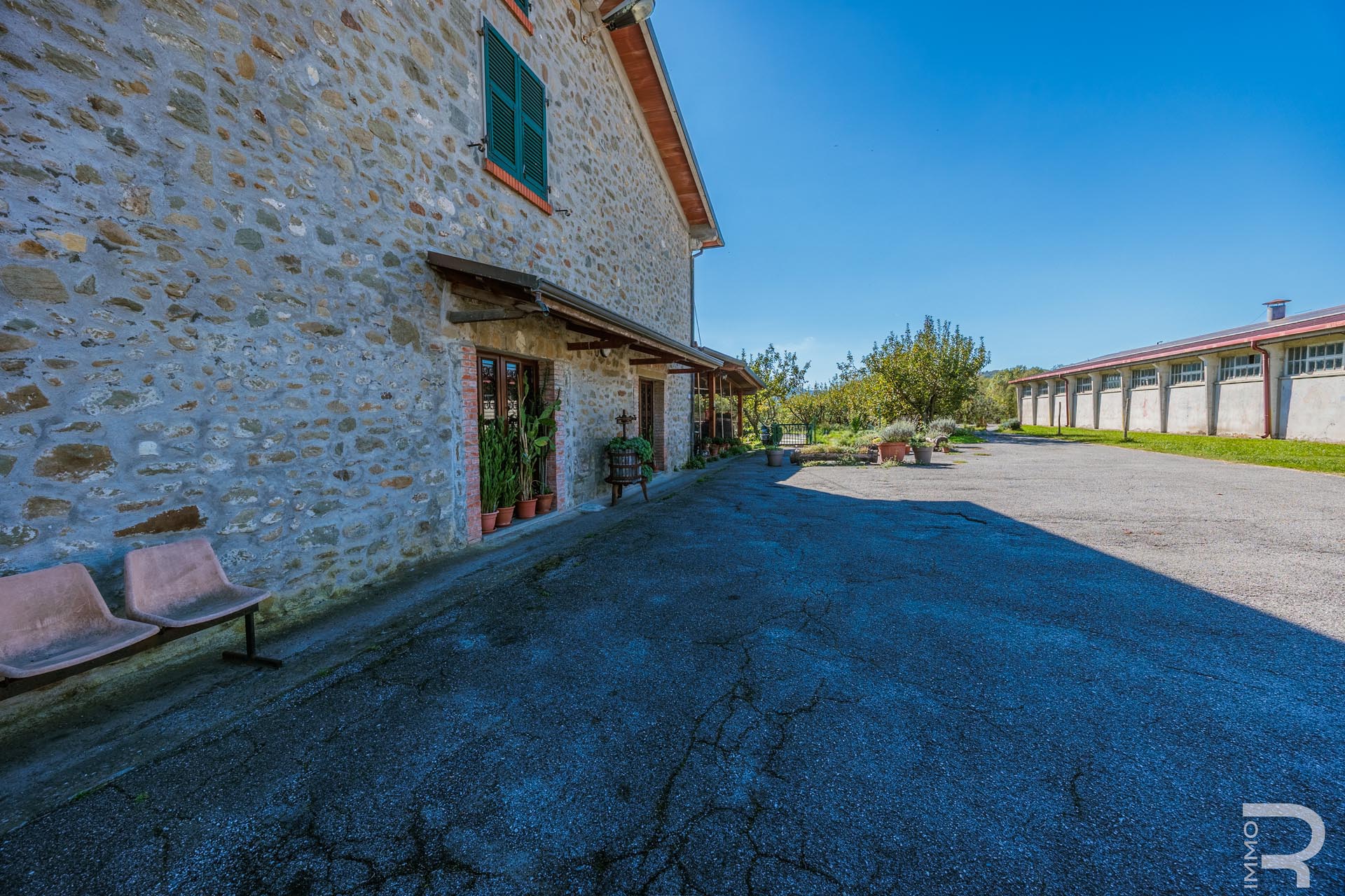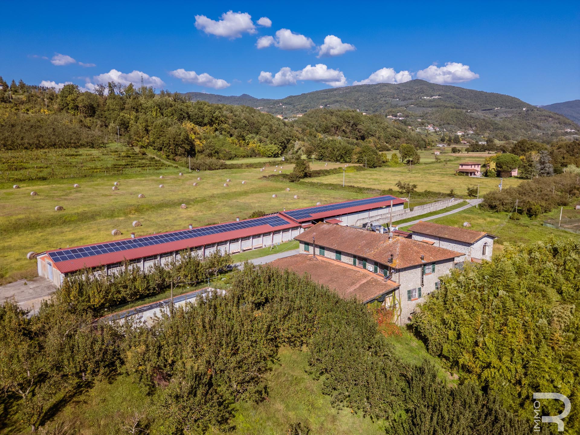 Ergänzend dazu gibt es eine Scheune mit einem flexiblen Mehrzweckraum, ideal für Workshops, Lagerung oder Veranstaltungen. Das zweite Bauernhaus beherbergt sechs voll ausgestattete Ferienwohnungen, die perfekt für einen Agriturismo-Betrieb geeignet sind. Eine große Halle mit 1.200 m² rundet das Ensemble ab und eröffnet zusätzliche Möglichkeiten für Lagerung, Produktion oder große Events.