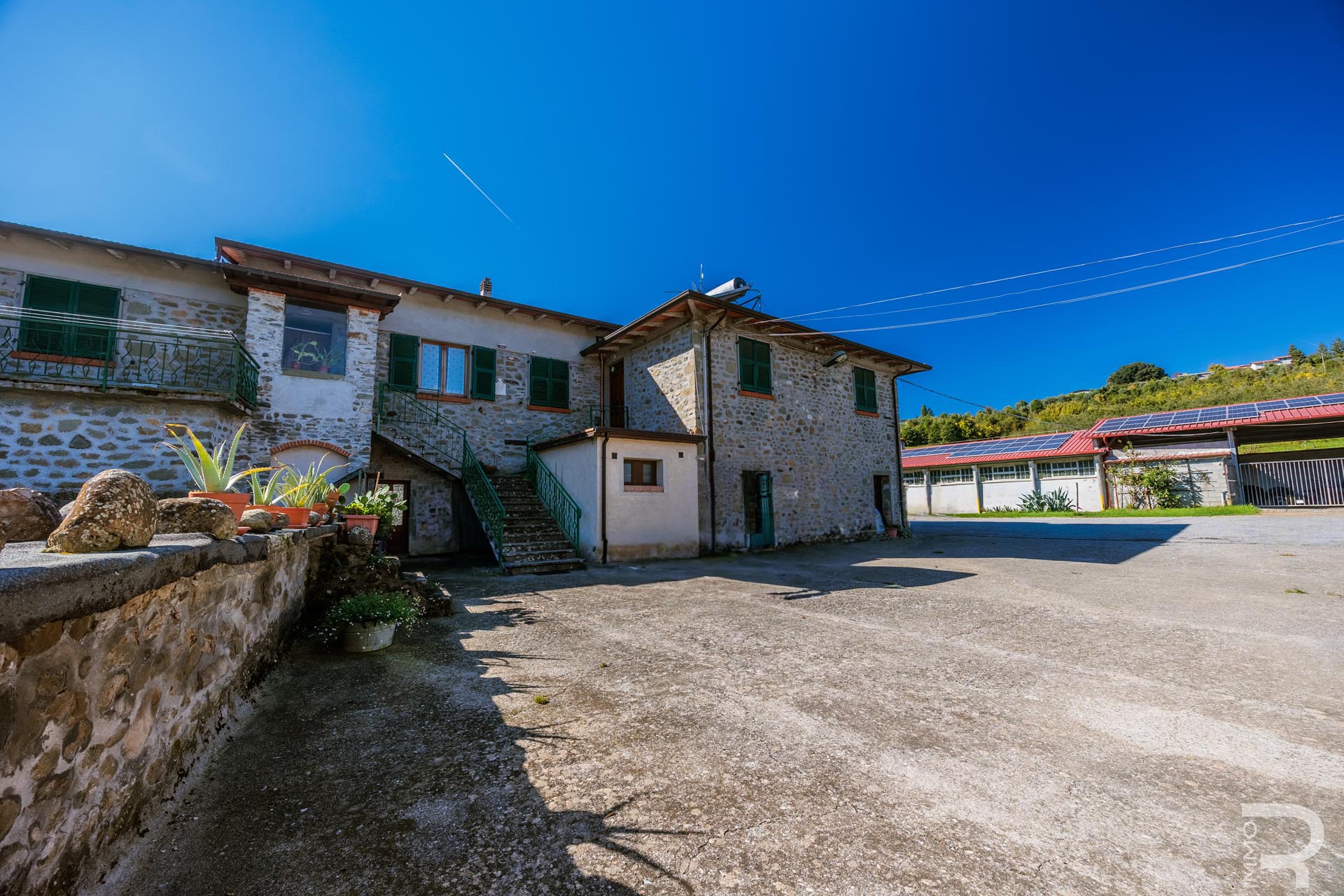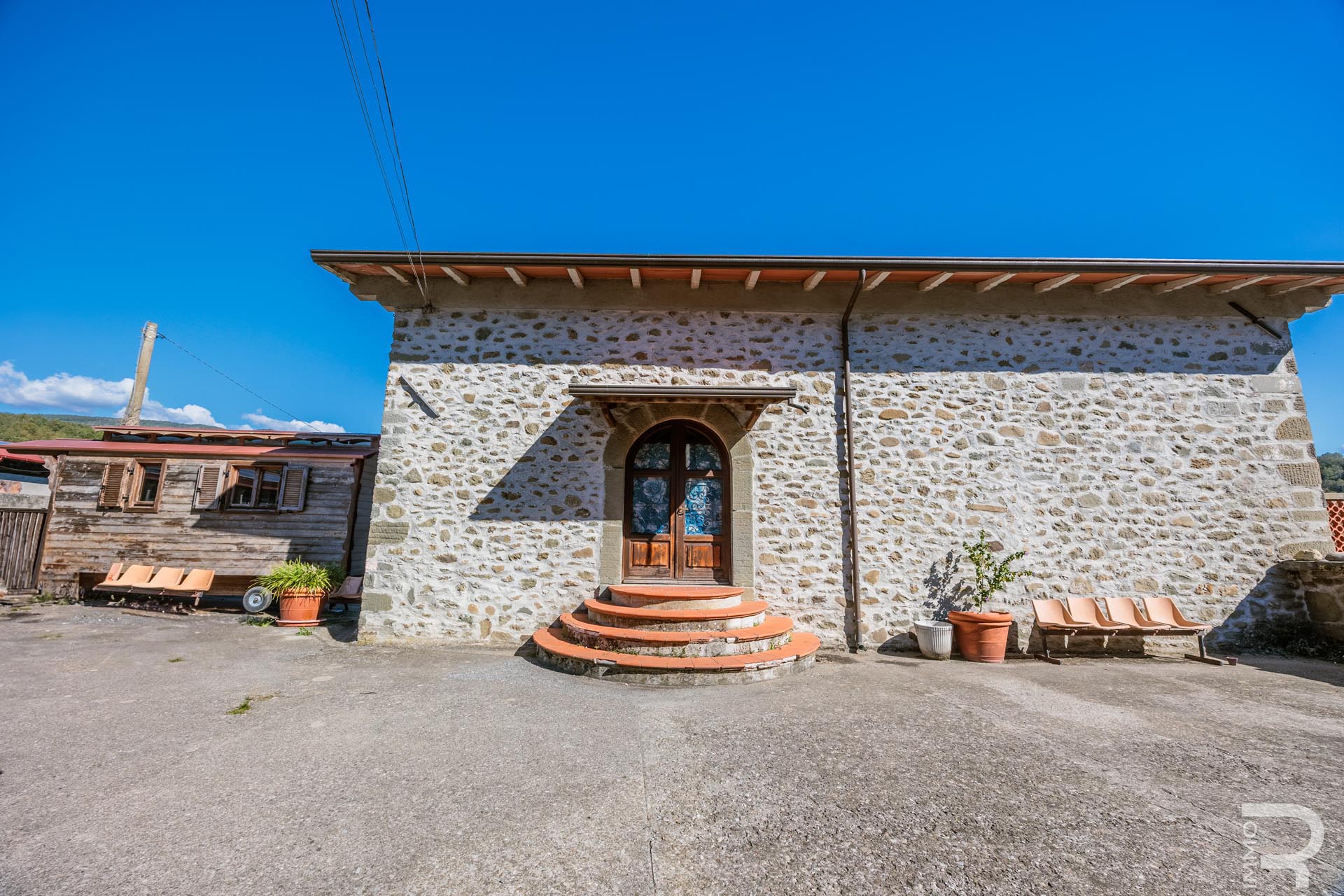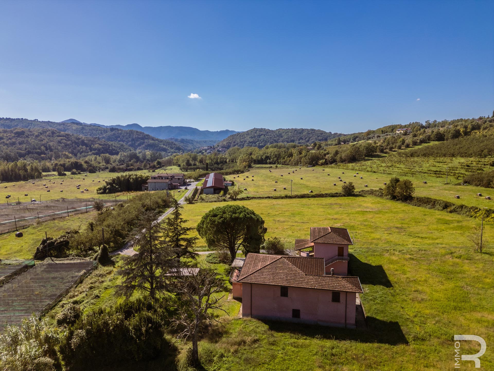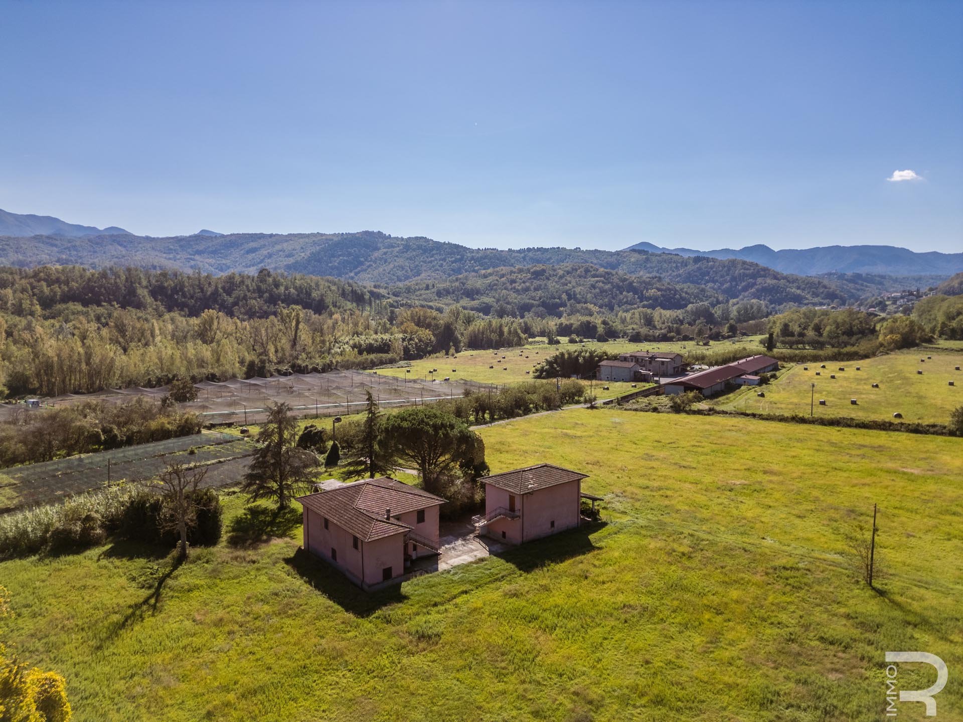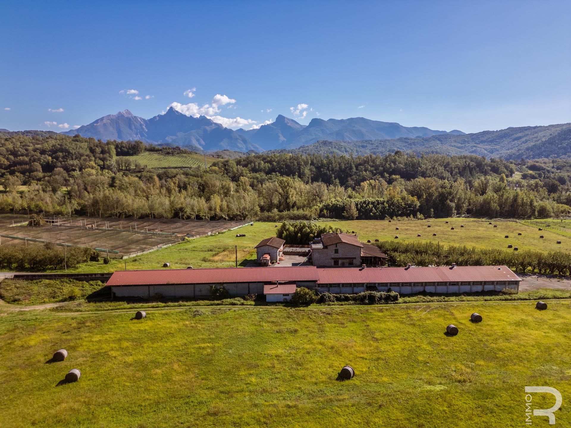 Ergänzend dazu gibt es eine Scheune mit einem flexiblen Mehrzweckraum, ideal für Workshops, Lagerung oder Veranstaltungen. Das zweite Bauernhaus beherbergt sechs voll ausgestattete Ferienwohnungen, die perfekt für einen Agriturismo-Betrieb geeignet sind. Eine große Halle mit 1.200 m² rundet das Ensemble ab und eröffnet zusätzliche Möglichkeiten für Lagerung, Produktion oder große Events.