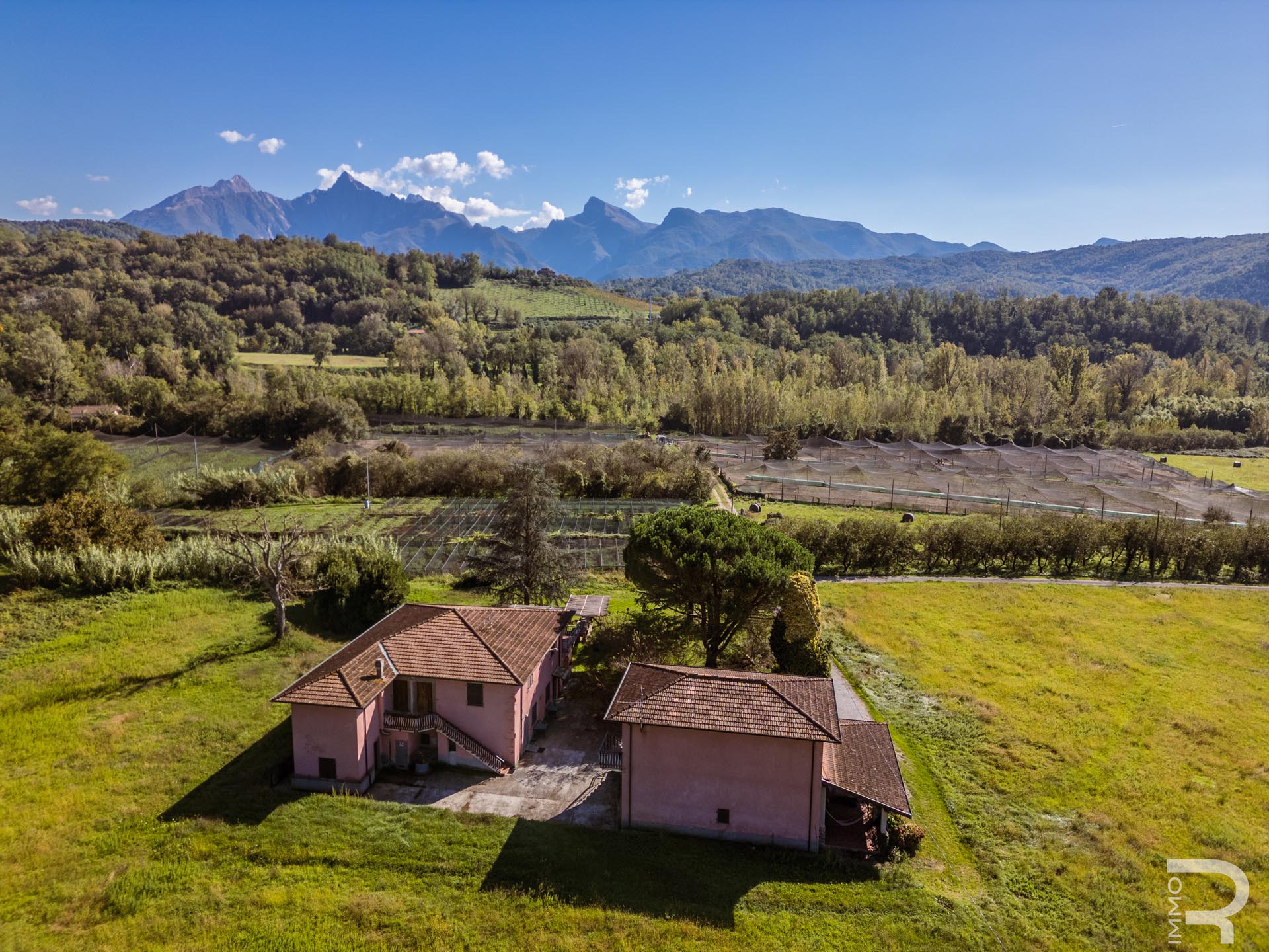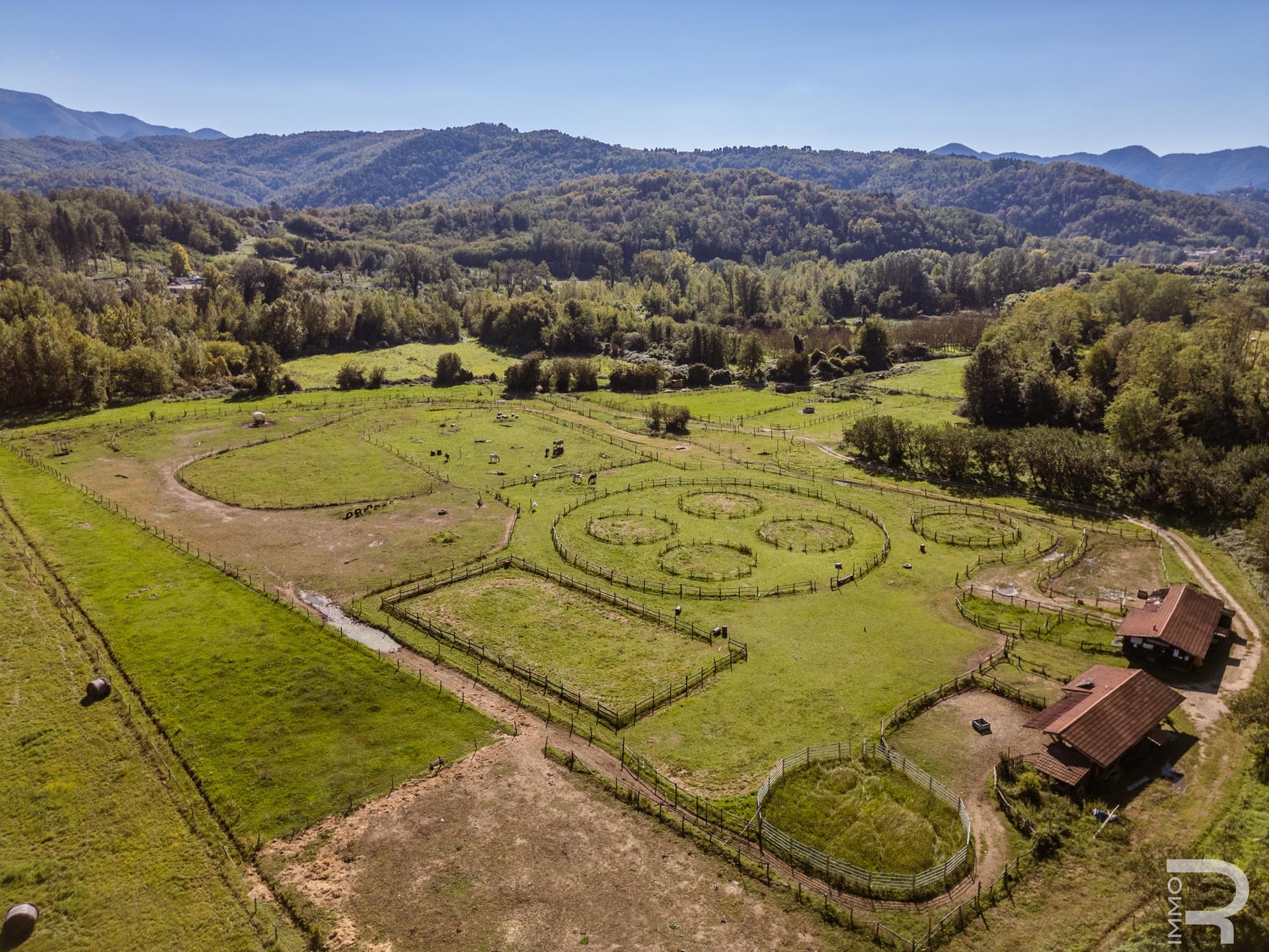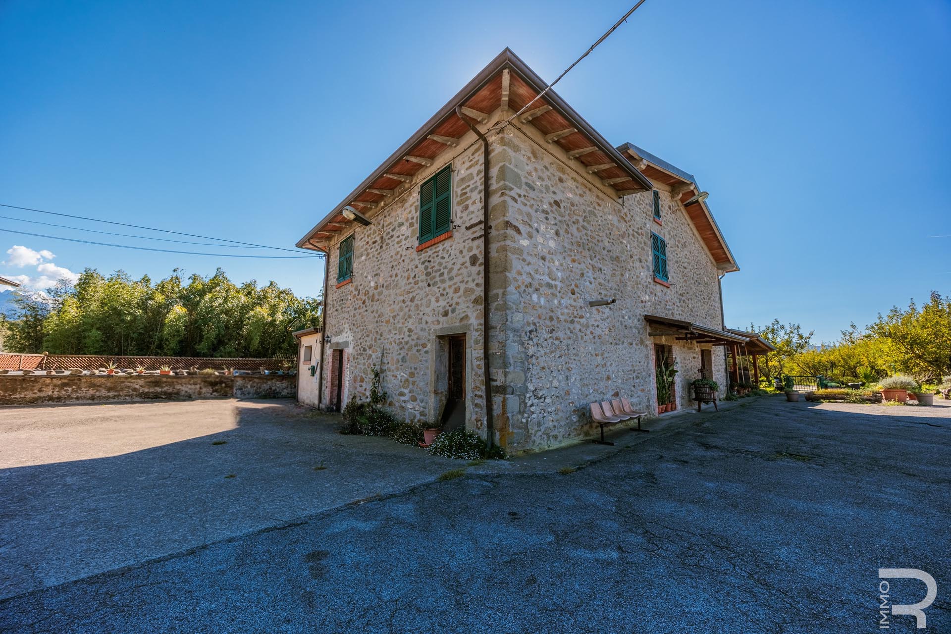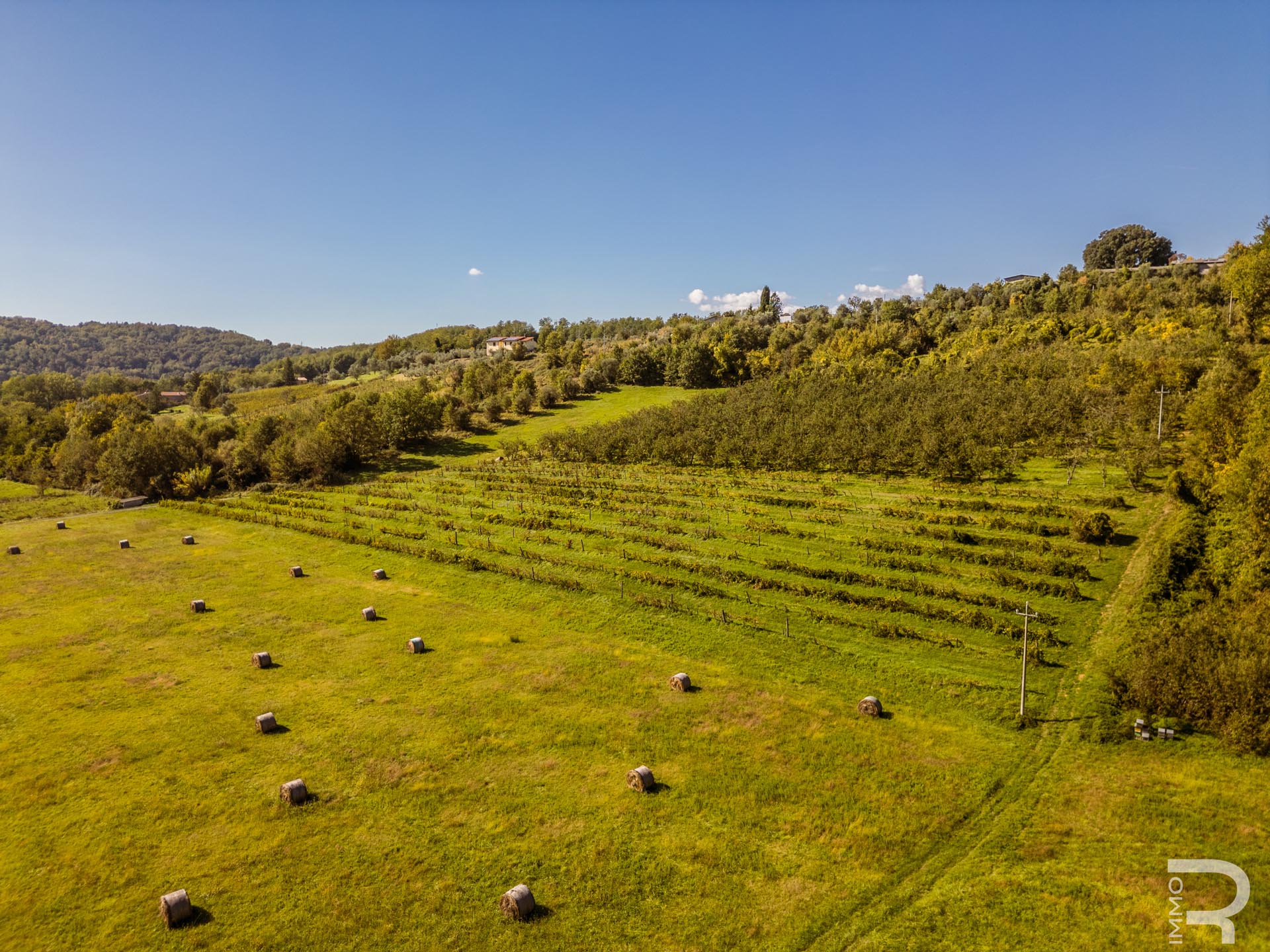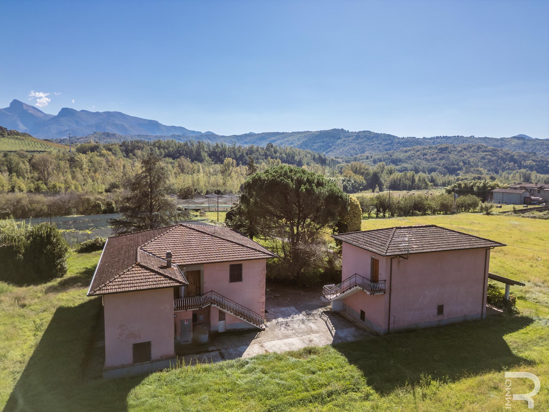 Ergänzend dazu gibt es eine Scheune mit einem flexiblen Mehrzweckraum, ideal für Workshops, Lagerung oder Veranstaltungen. Das zweite Bauernhaus beherbergt sechs voll ausgestattete Ferienwohnungen, die perfekt für einen Agriturismo-Betrieb geeignet sind. Eine große Halle mit 1.200 m² rundet das Ensemble ab und eröffnet zusätzliche Möglichkeiten für Lagerung, Produktion oder große Events.