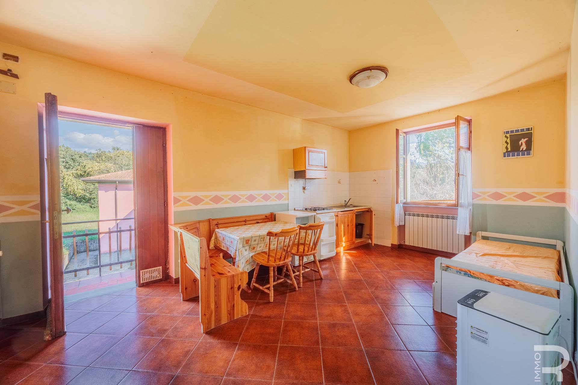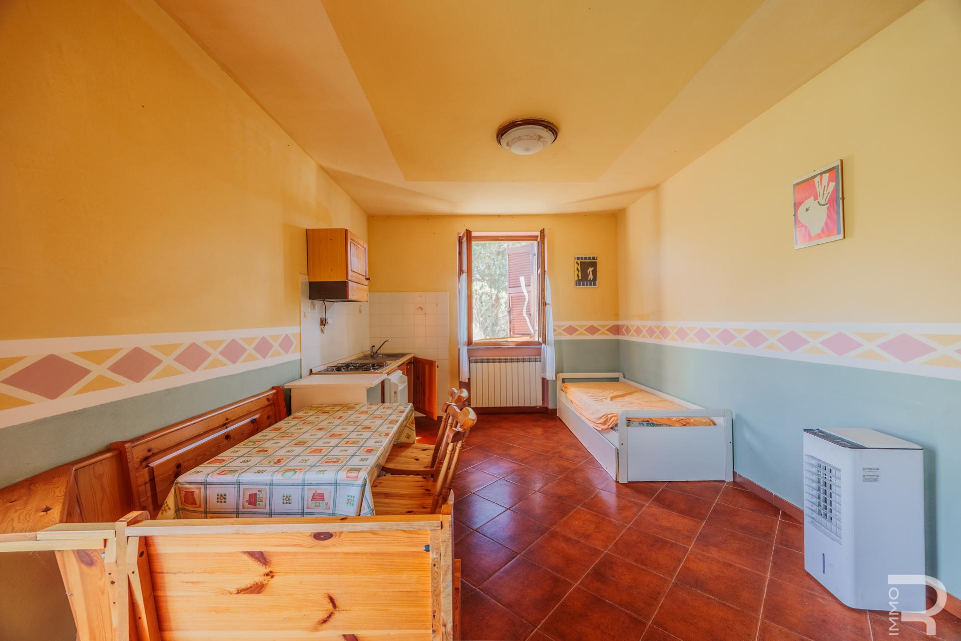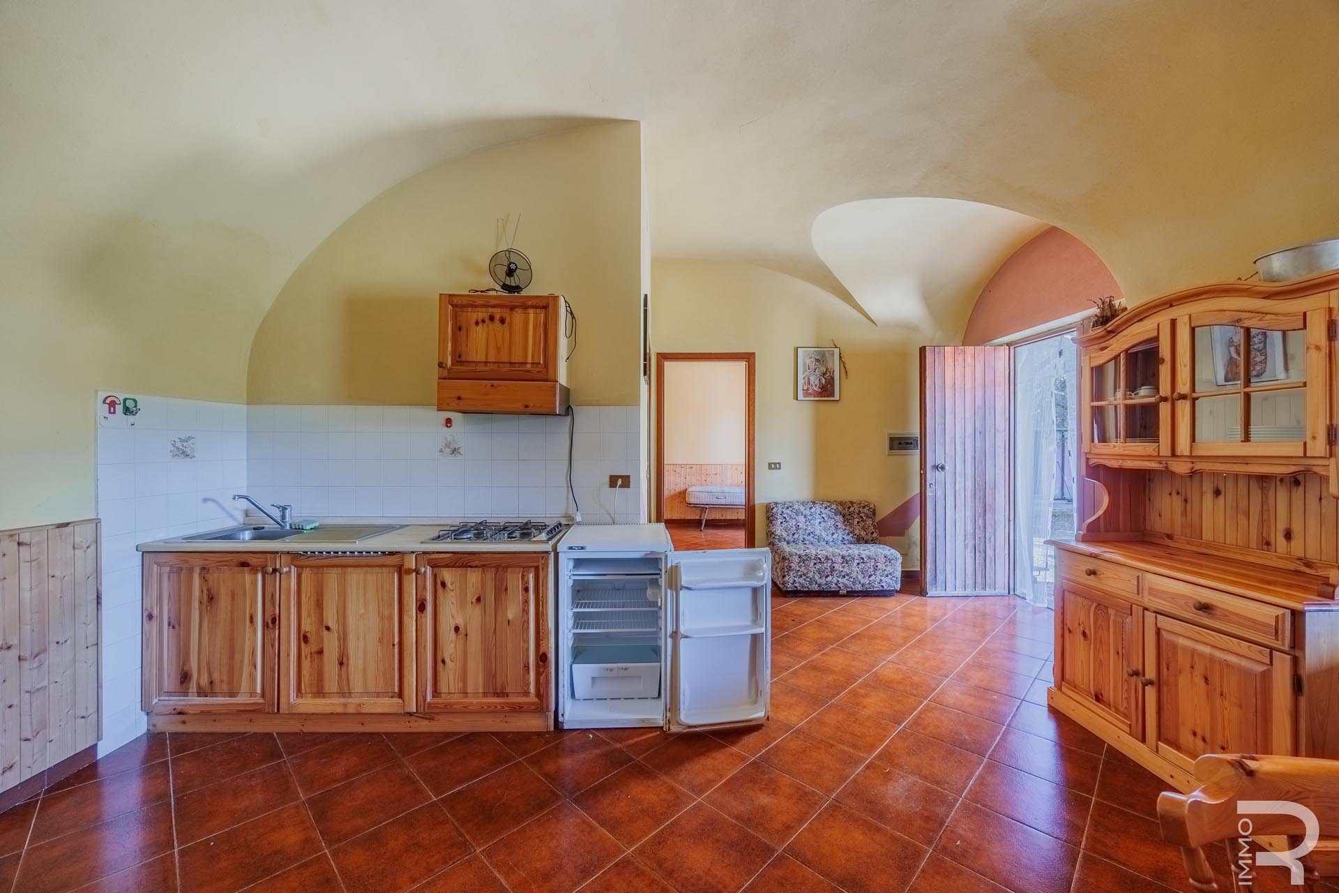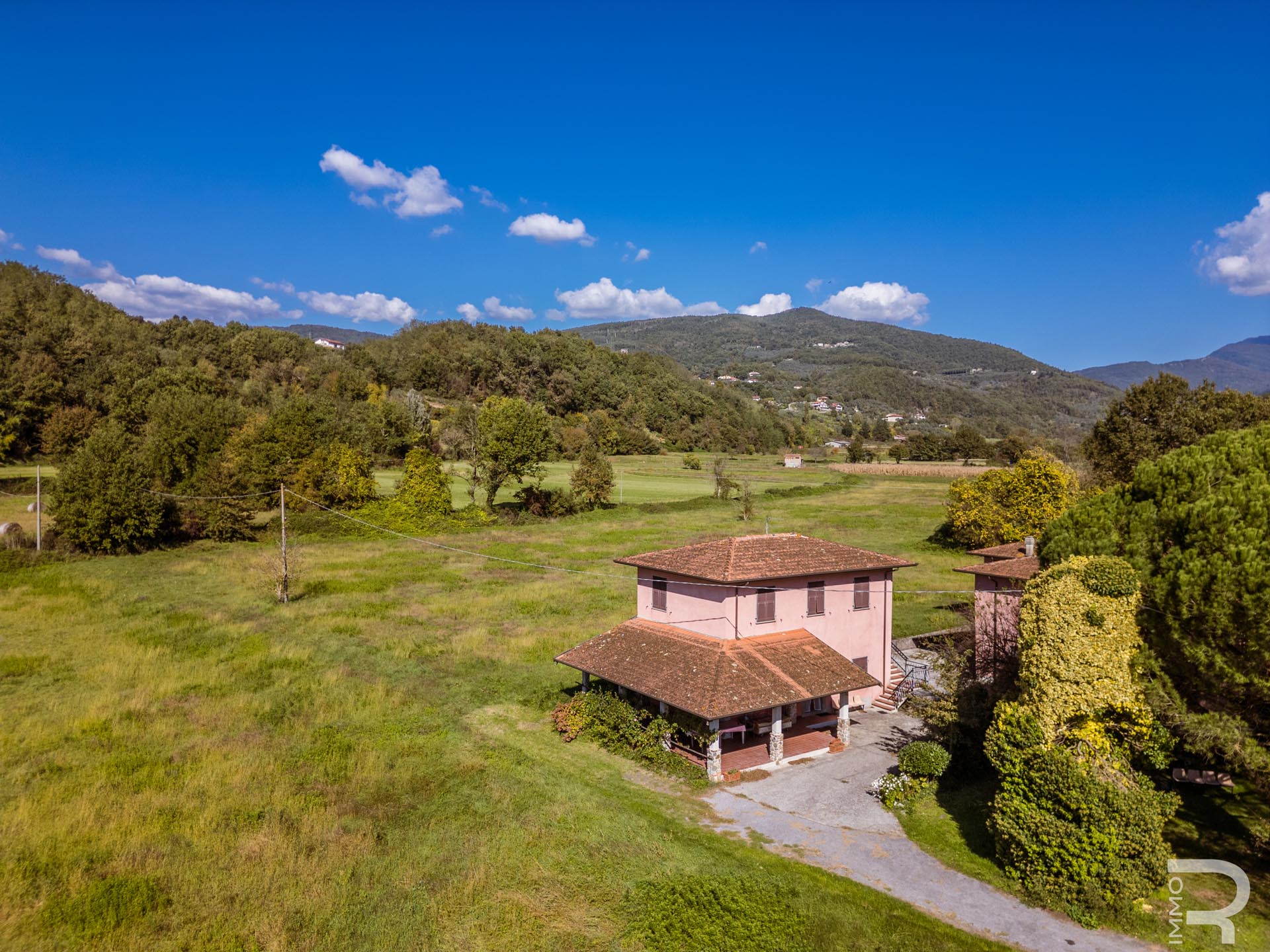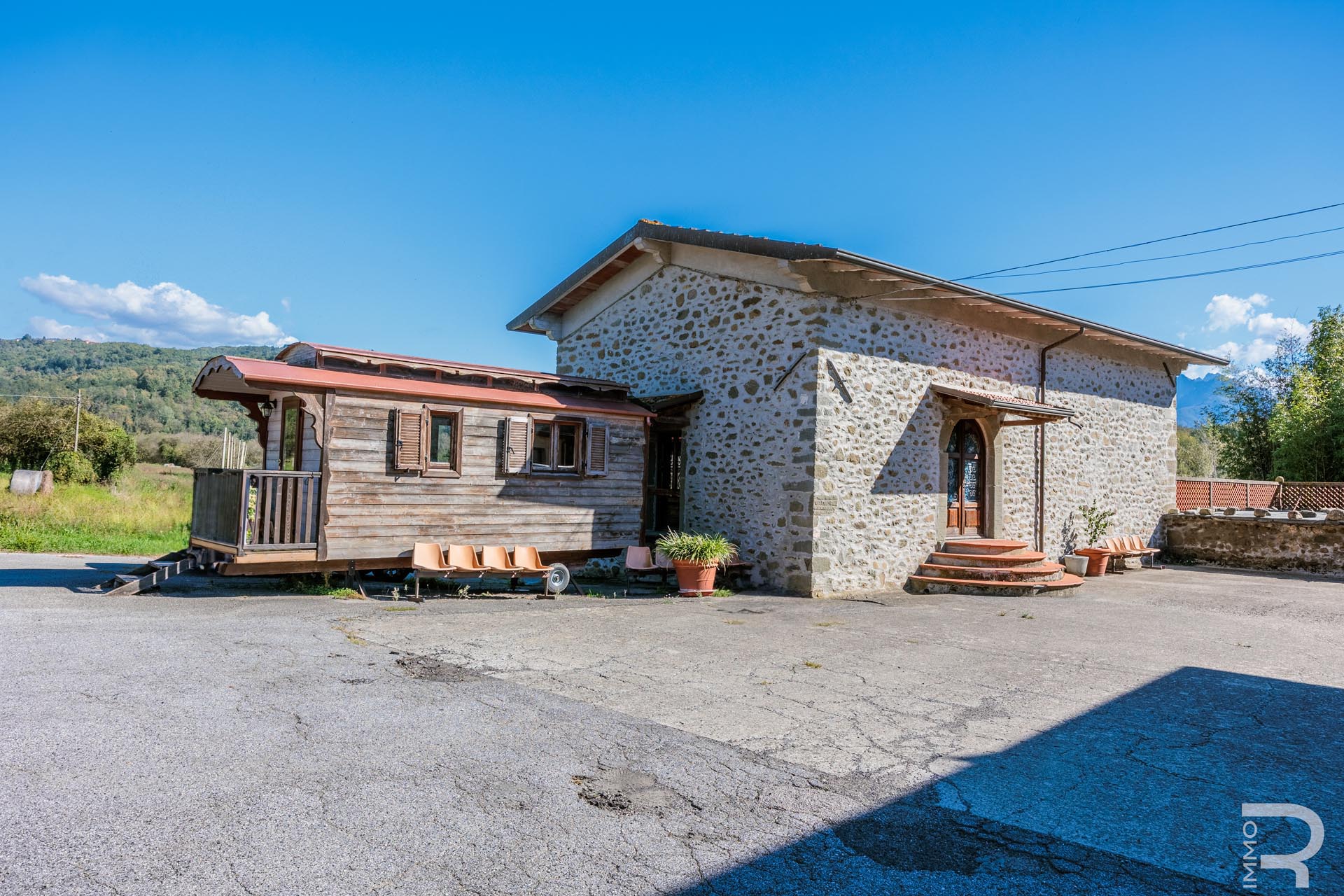 Ergänzend dazu gibt es eine Scheune mit einem flexiblen Mehrzweckraum, ideal für Workshops, Lagerung oder Veranstaltungen. Das zweite Bauernhaus beherbergt sechs voll ausgestattete Ferienwohnungen, die perfekt für einen Agriturismo-Betrieb geeignet sind. Eine große Halle mit 1.200 m² rundet das Ensemble ab und eröffnet zusätzliche Möglichkeiten für Lagerung, Produktion oder große Events.