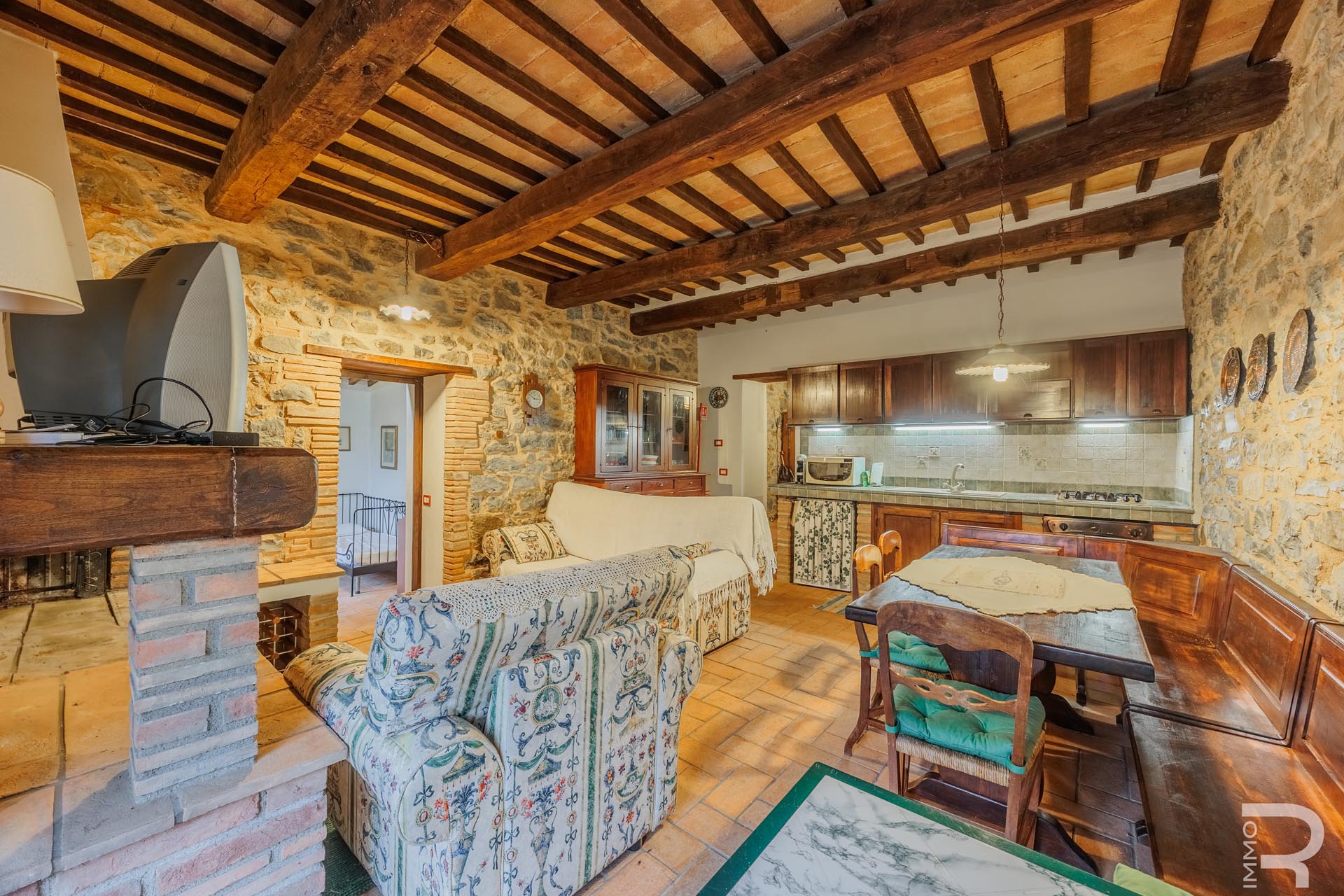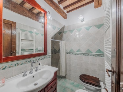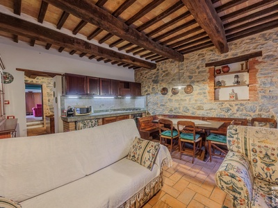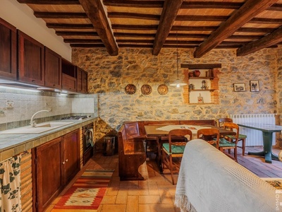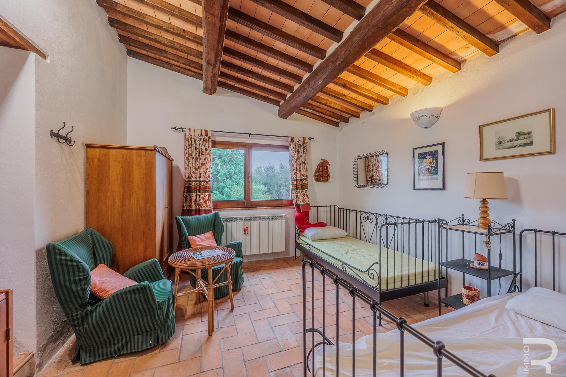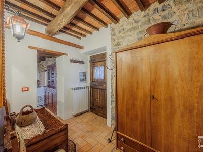 Zum Anwesen gehören insgesamt rund 2 Hektar Grundstück, auf denen sich etwa 120 Olivenbäume befinden – ideal für Liebhaber der toskanischen Landwirtschaft oder zur Eigenproduktion von Olivenöl. Die Immobilie wurde im Jahr 2006 vollständig und hochwertig renoviert, wobei großer Wert auf Qualität, Funktionalität und den Erhalt des ursprünglichen Charakters des Steinrusticos gelegt wurde.