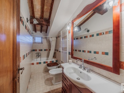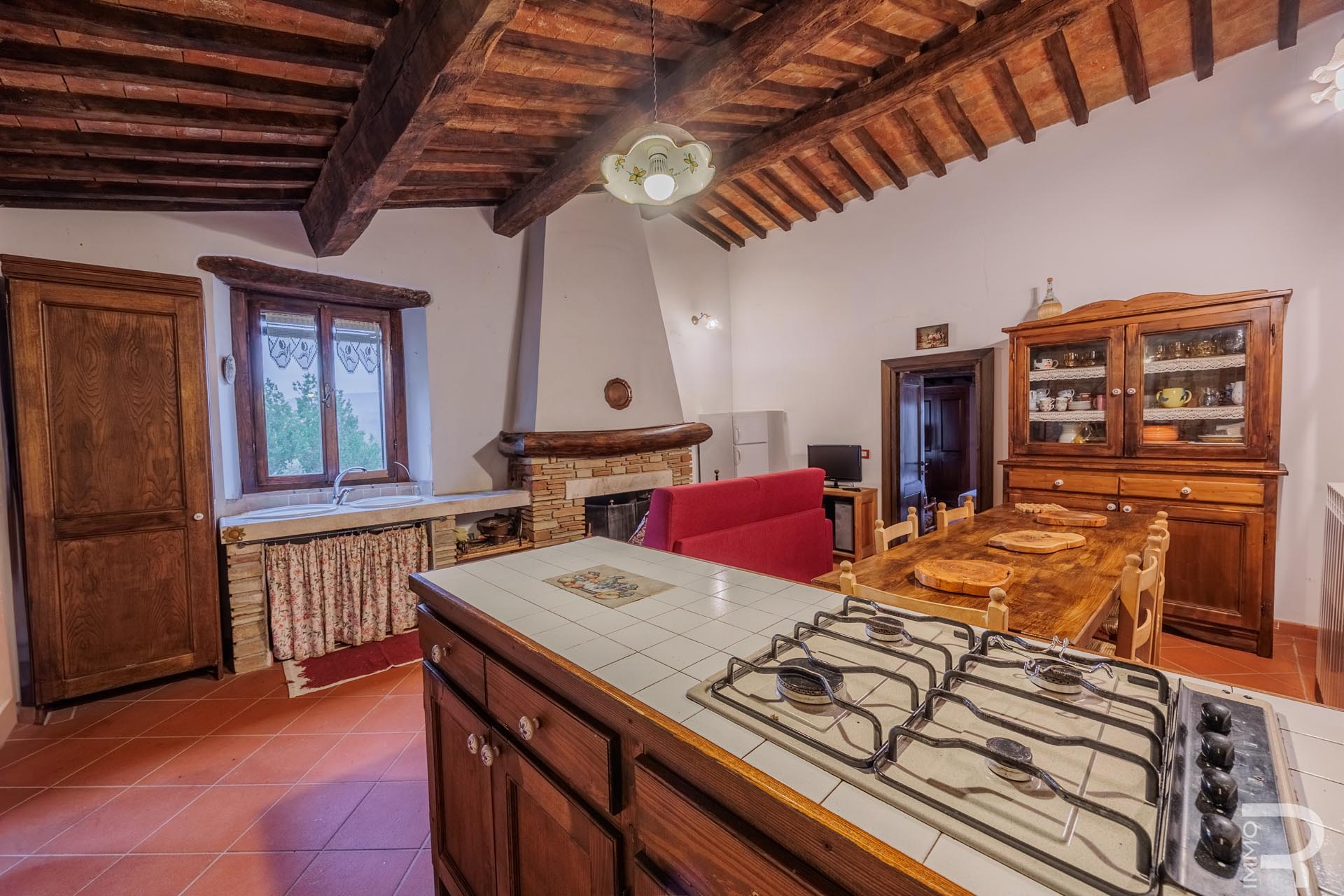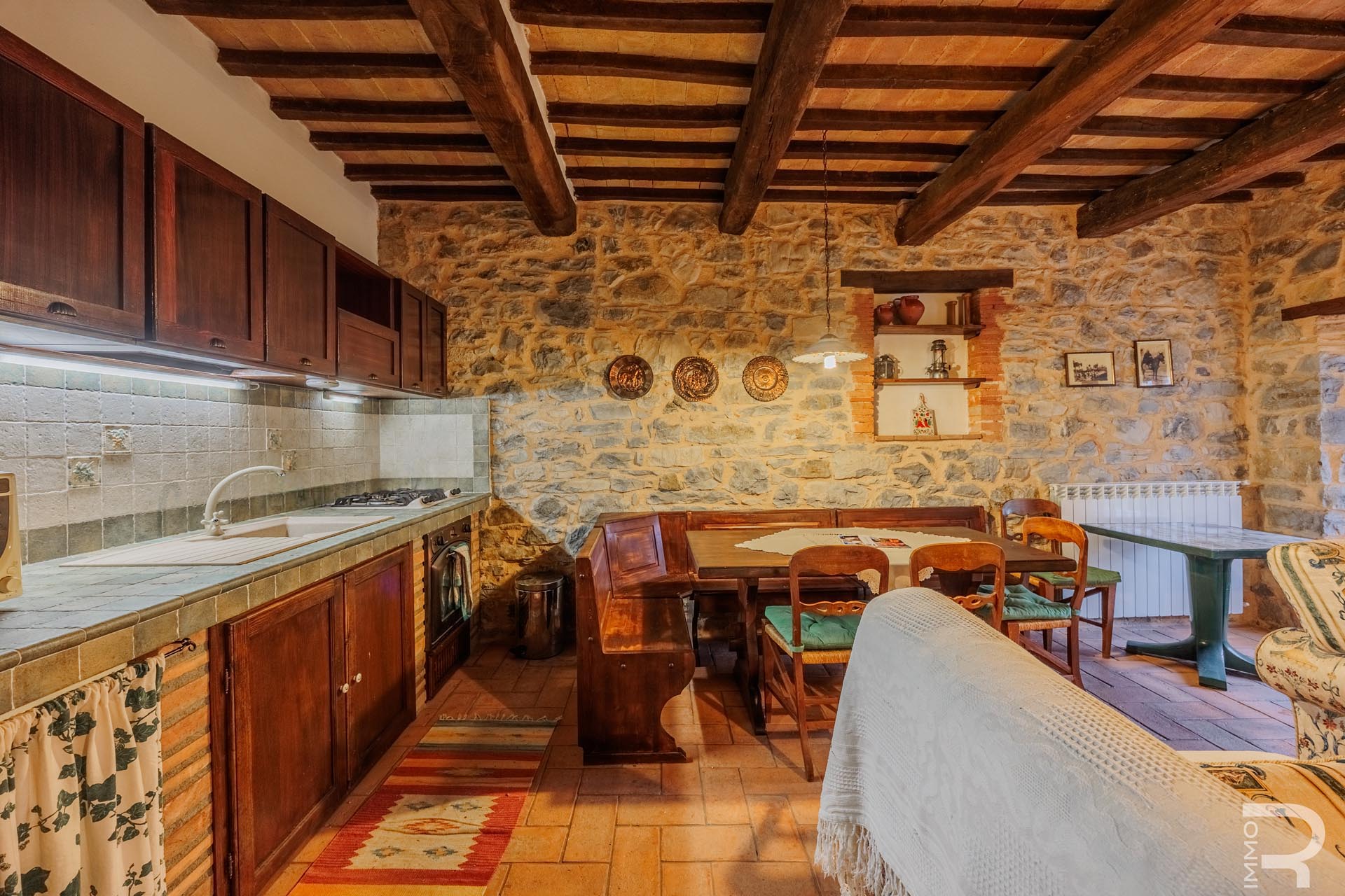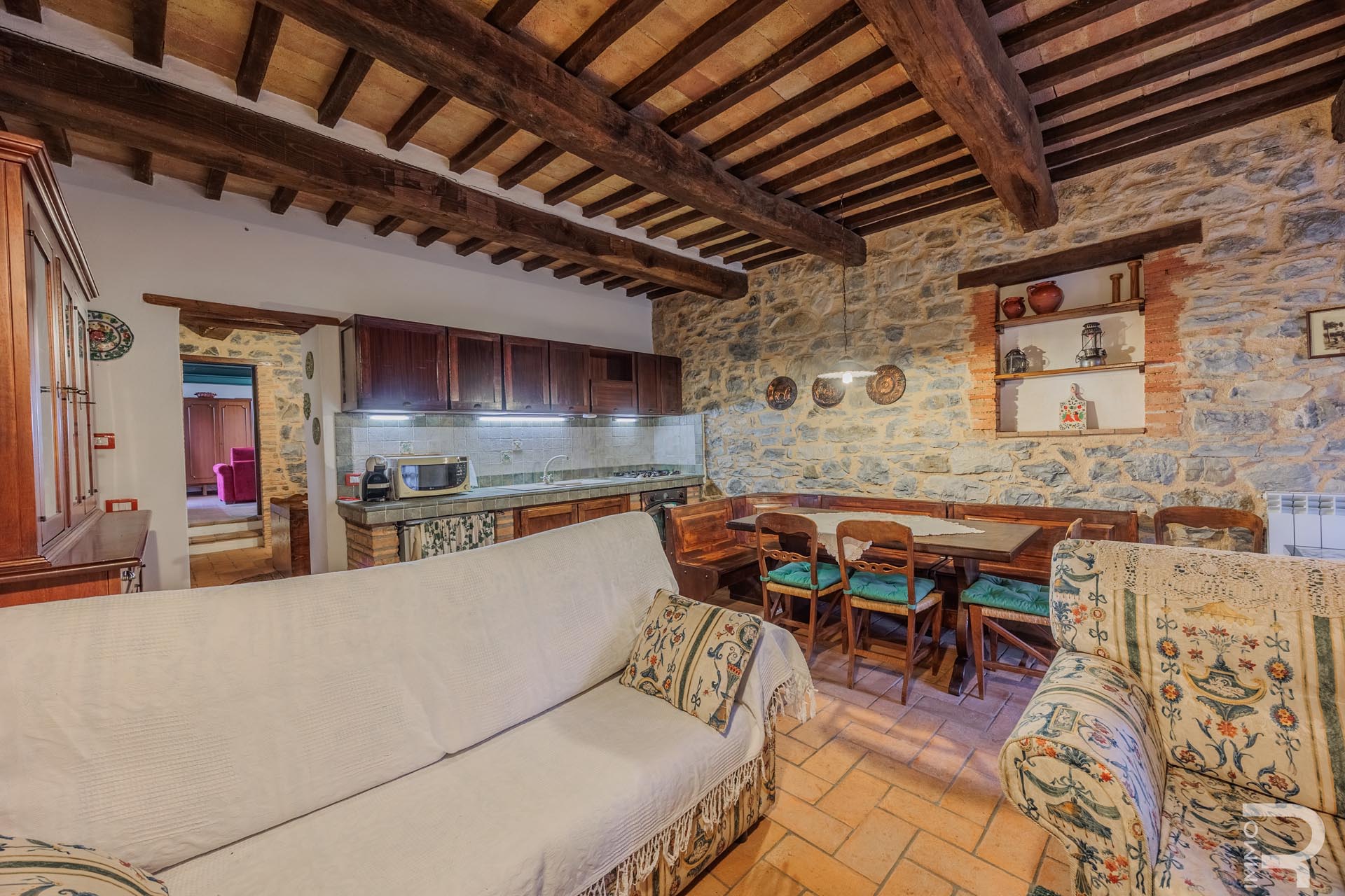 Zum Anwesen gehören insgesamt rund 2 Hektar Grundstück, auf denen sich etwa 120 Olivenbäume befinden – ideal für Liebhaber der toskanischen Landwirtschaft oder zur Eigenproduktion von Olivenöl. Die Immobilie wurde im Jahr 2006 vollständig und hochwertig renoviert, wobei großer Wert auf Qualität, Funktionalität und den Erhalt des ursprünglichen Charakters des Steinrusticos gelegt wurde.