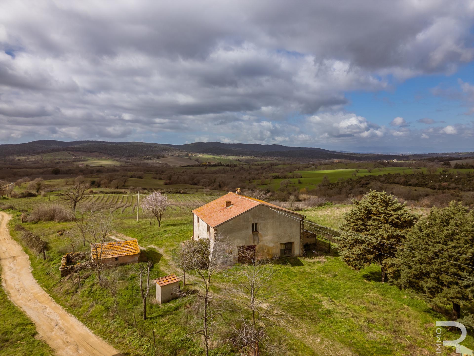 Ein charmantes toskanisches Bauernhaus mit außergewöhnlichem Panorama, vielseitigem Potenzial und der Möglichkeit, es zu einem repräsentativen Landsitz oder einem landwirtschaftlichen Anwesen mit Wein- und Olivenproduktion zu entwickeln.