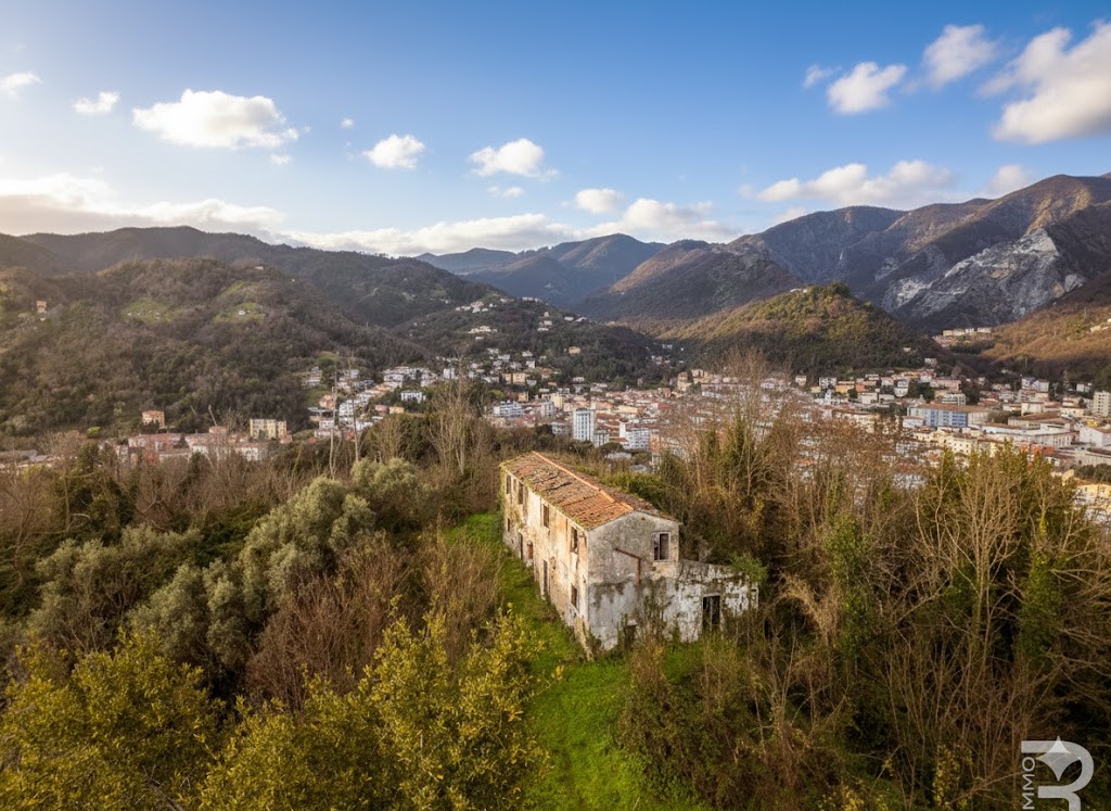 R07011CARU - Diese Ruine liegt in einer spektakulären Panoramalage und thront eindrucksvoll auf einem Felsvorsprung hoch über der Umgebung. Von hier aus eröffnet sich ein unvergleichlicher Rundumblick: Das Meer glitzert am Horizont, dahinter erheben sich die Berge, und die berühmten Marmorsteinbrüche sind ebenso sichtbar wie die gesamte Stadt, die sich dem Betrachter zu Füßen ausbreitet. Die erhöhte Lage verleiht dem Anwesen eine außergewöhnliche Präsenz und absolute Privatsphäre.