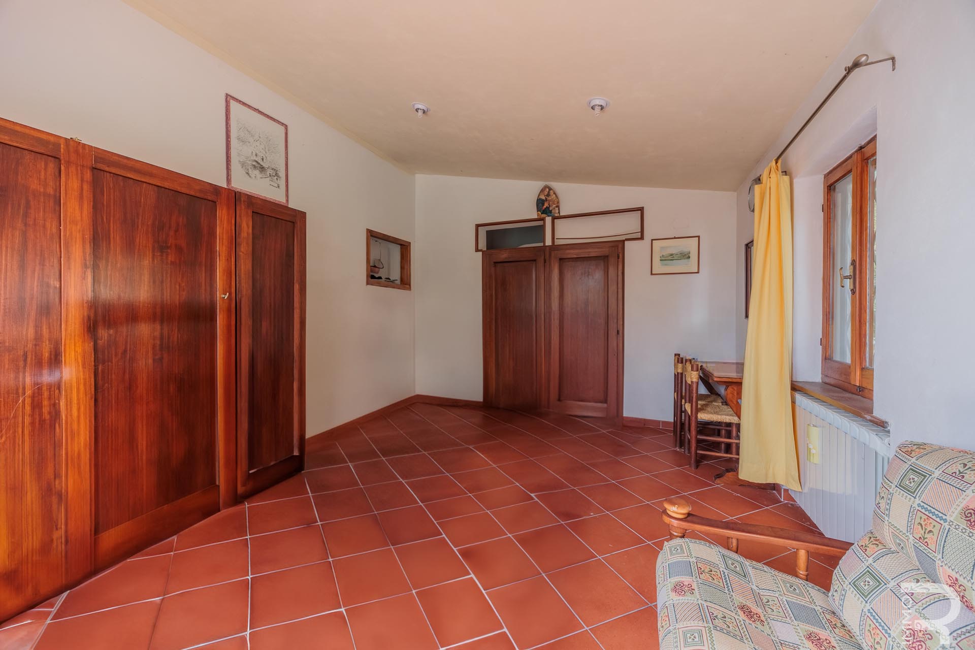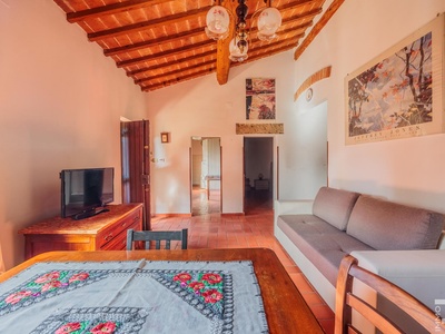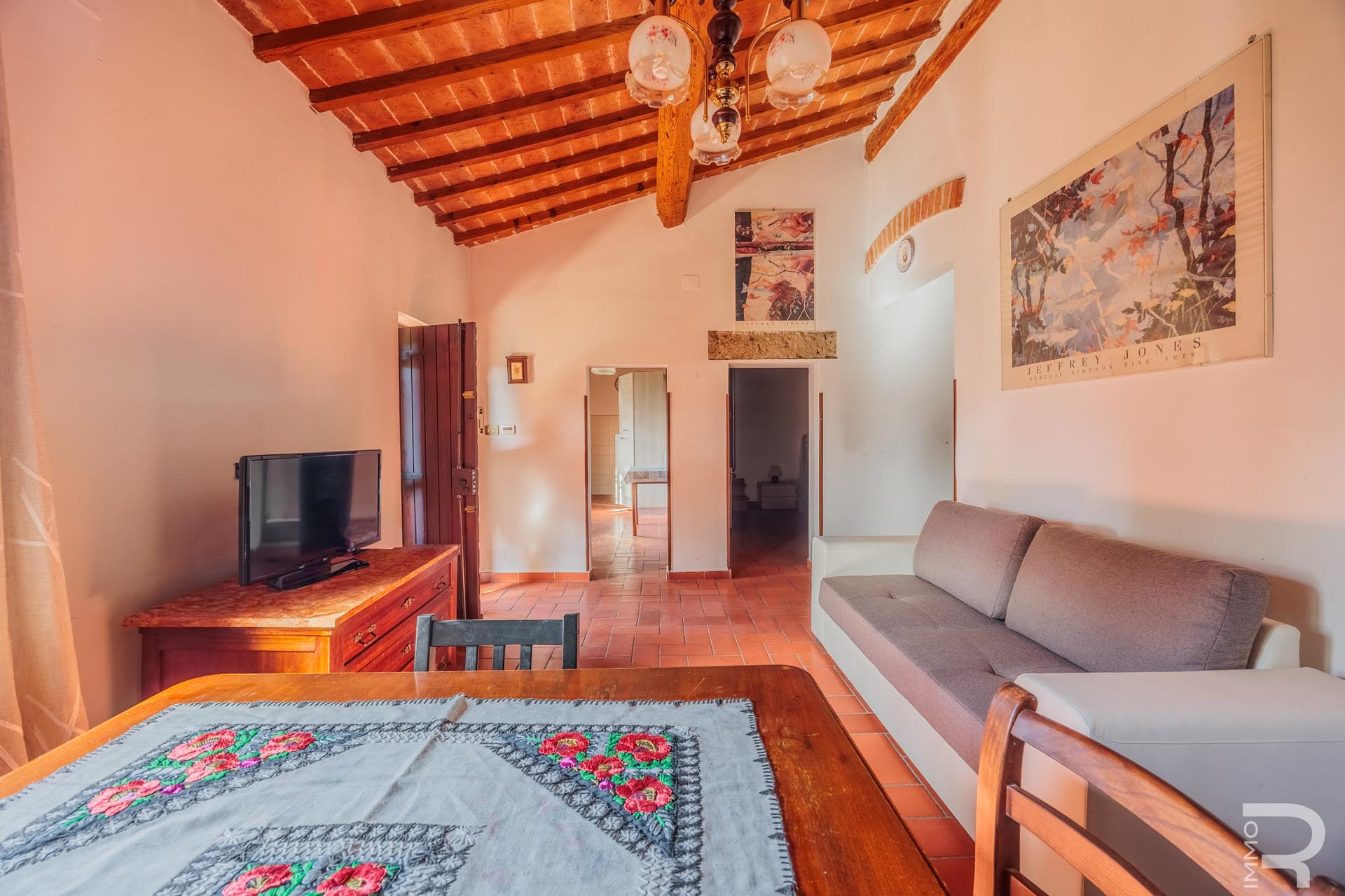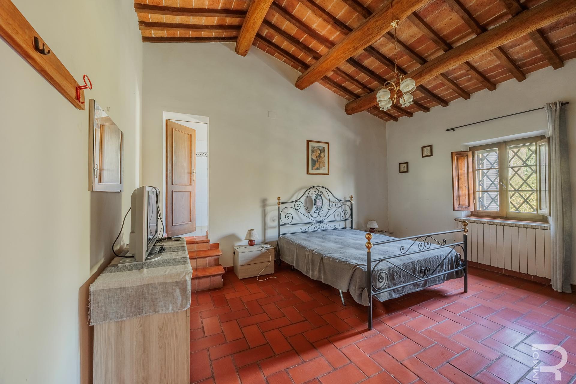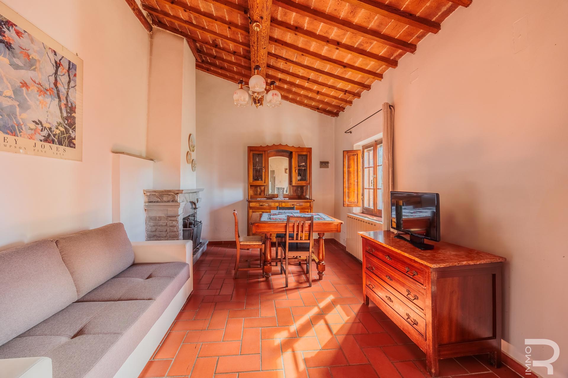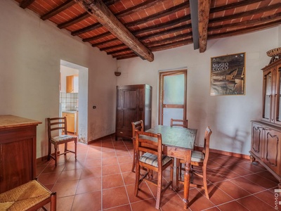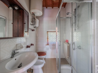 Gestalterisch präsentiert sich die Immobilie im typisch toskanischen Stil mit Terracottaböden und sichtbaren Holzbalken, die den Räumen eine warme und charaktervolle Ausstrahlung verleihen. Besonders hervorzuheben ist die großzügige Veranda beziehungsweise Terrasse, die rund um das Haus verläuft und zusätzlichen Wohnraum im Freien schafft – ideal für gemeinsame Mahlzeiten oder gesellige Stunden.