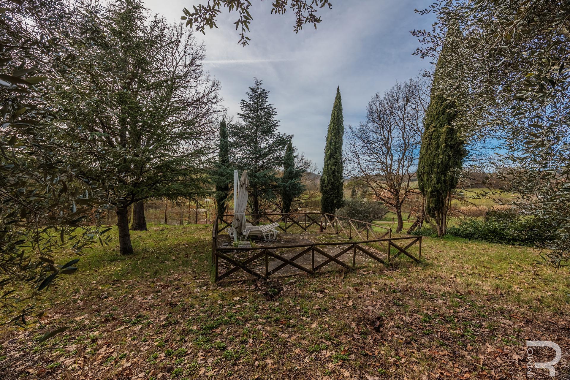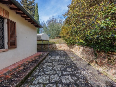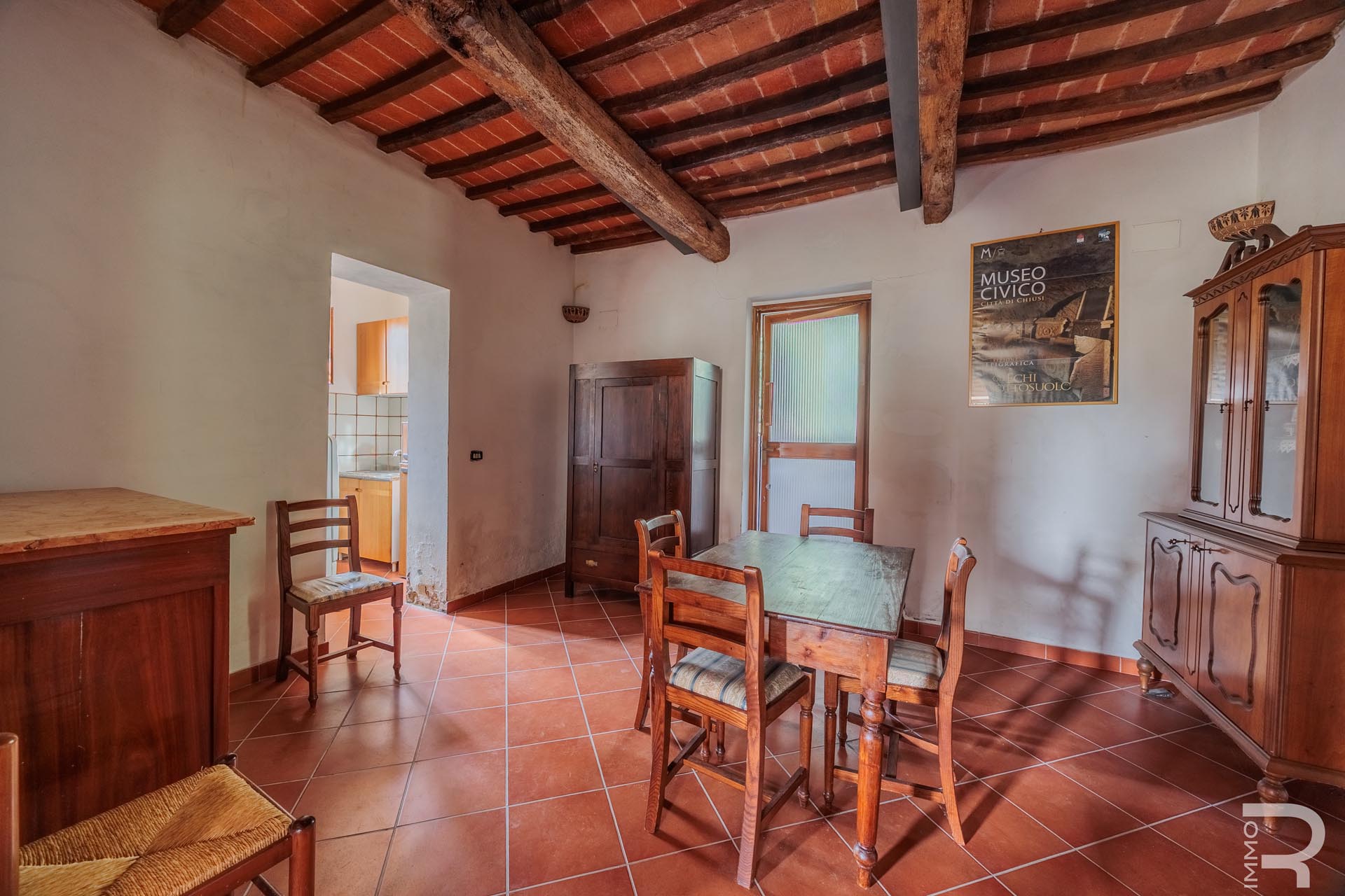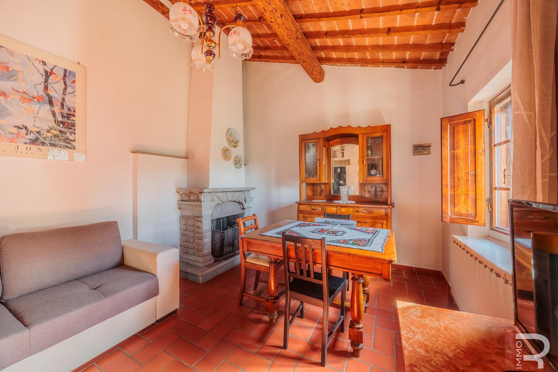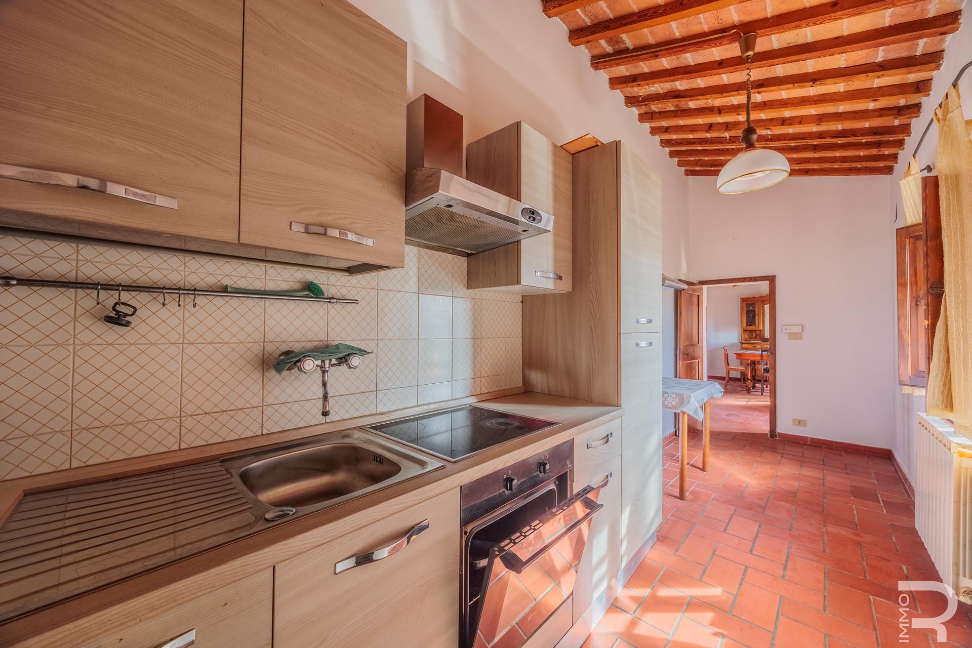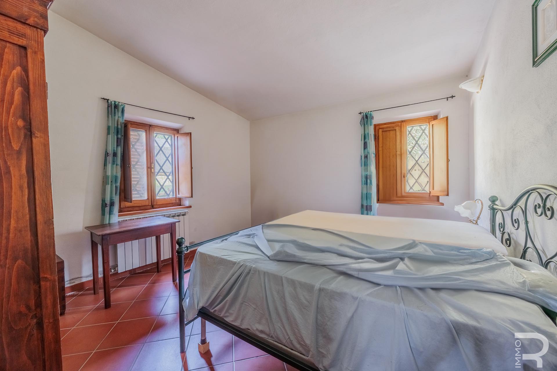Gestalterisch präsentiert sich die Immobilie im typisch toskanischen Stil mit Terracottaböden und sichtbaren Holzbalken, die den Räumen eine warme und charaktervolle Ausstrahlung verleihen. Besonders hervorzuheben ist die großzügige Veranda beziehungsweise Terrasse, die rund um das Haus verläuft und zusätzlichen Wohnraum im Freien schafft – ideal für gemeinsame Mahlzeiten oder gesellige Stunden.