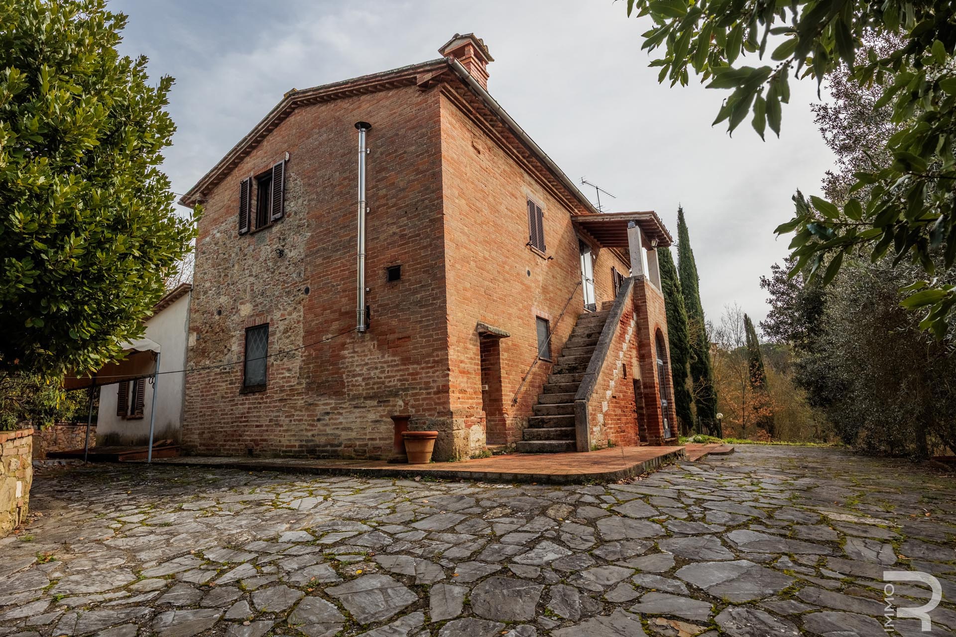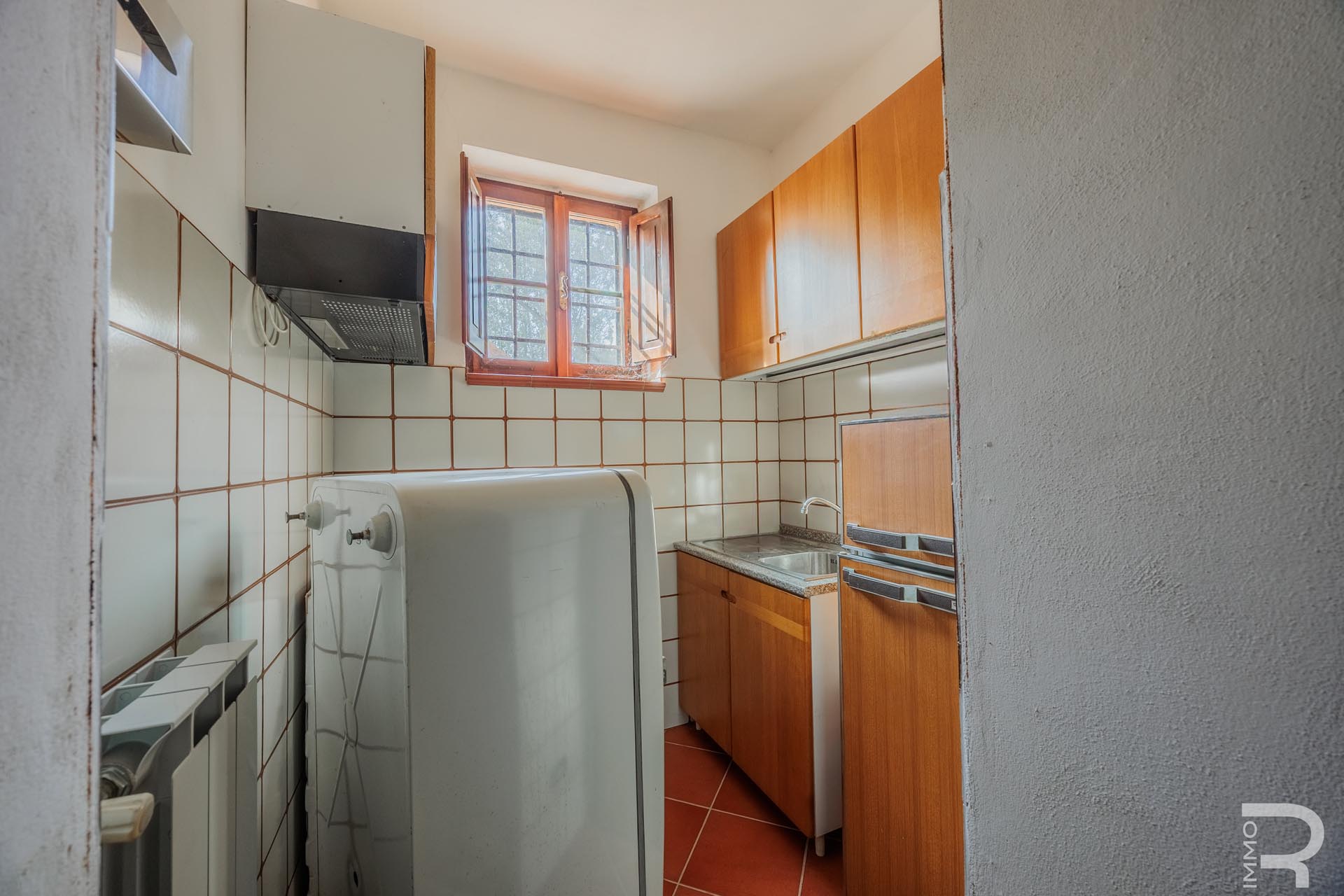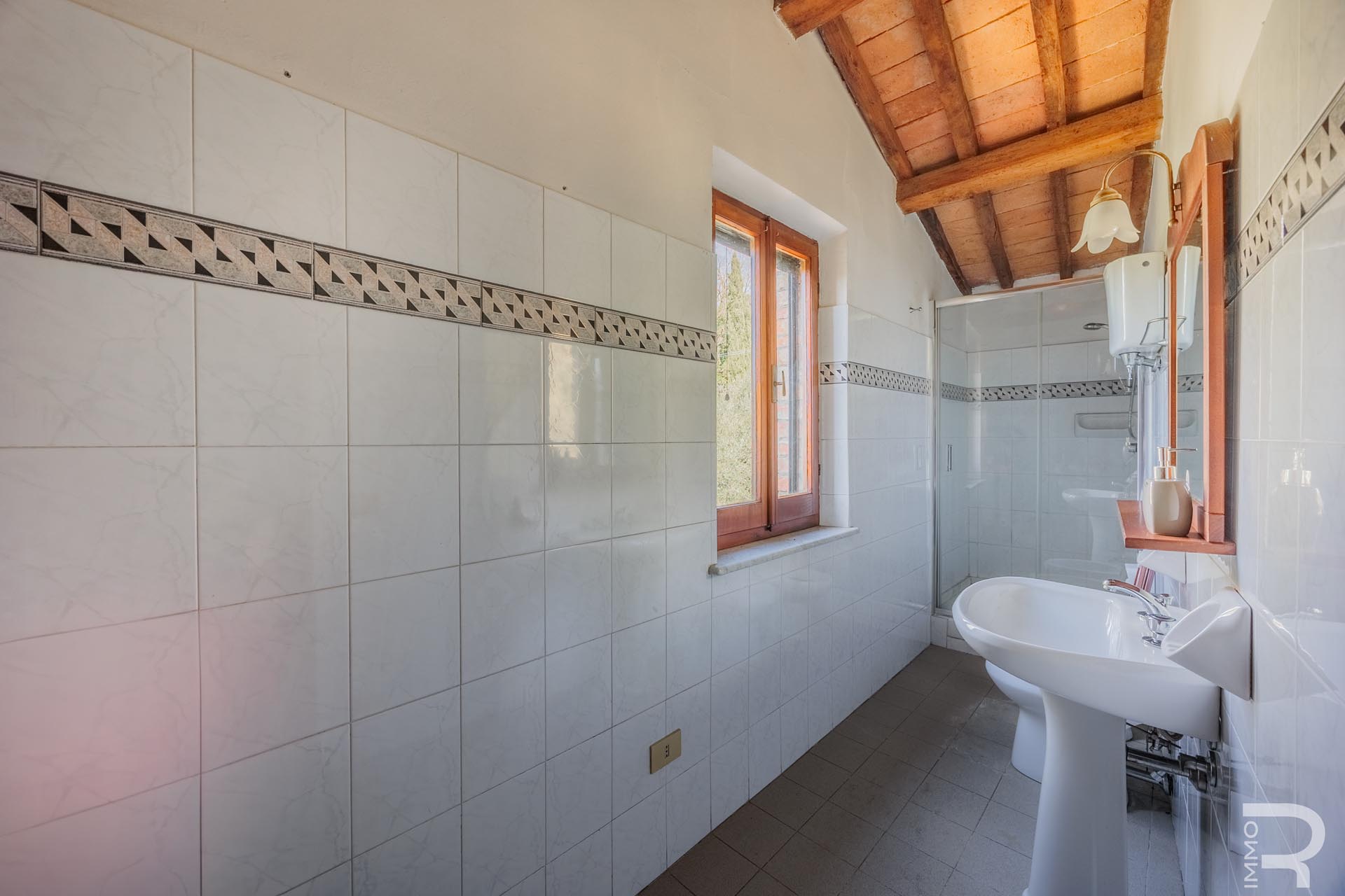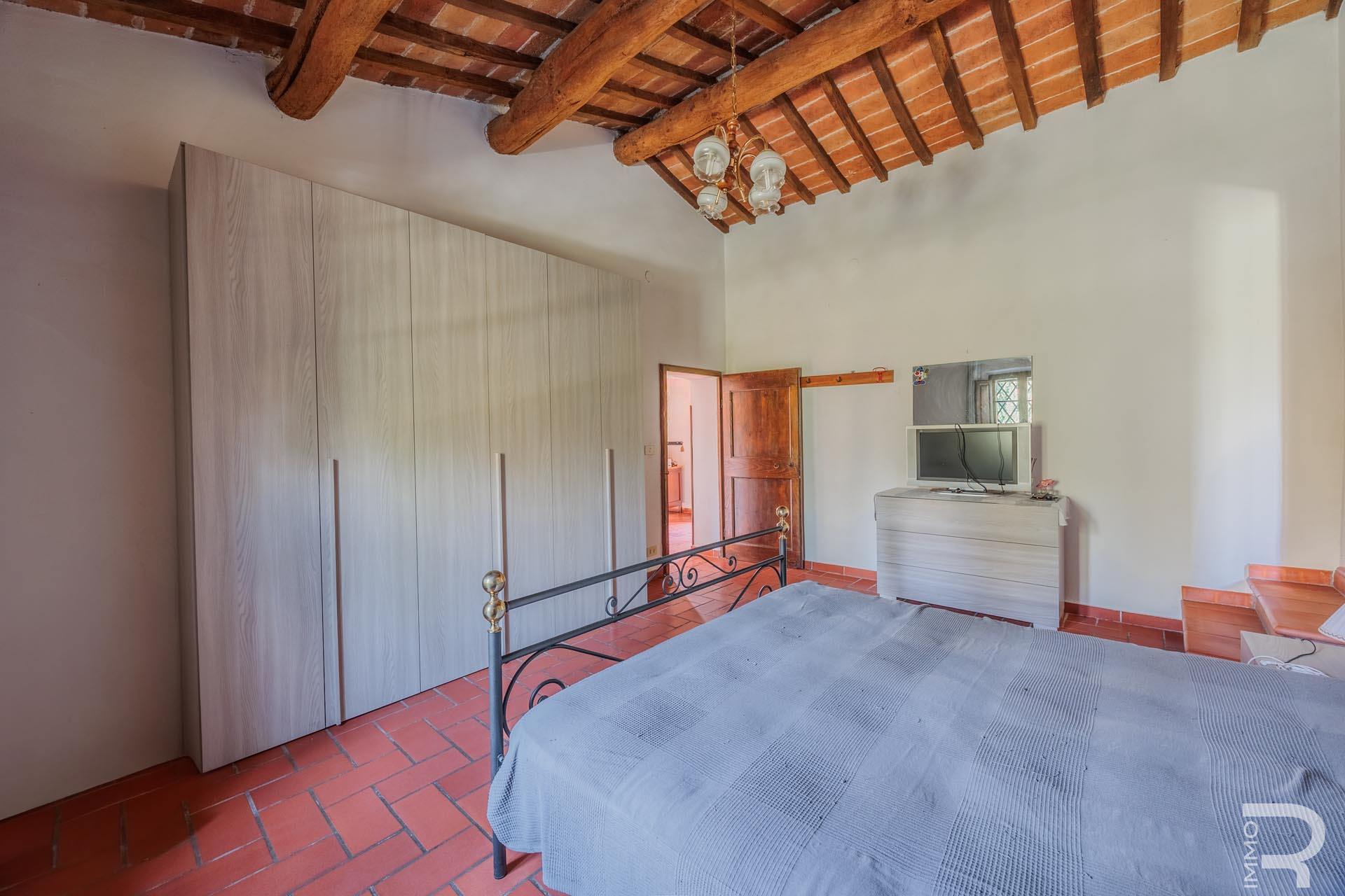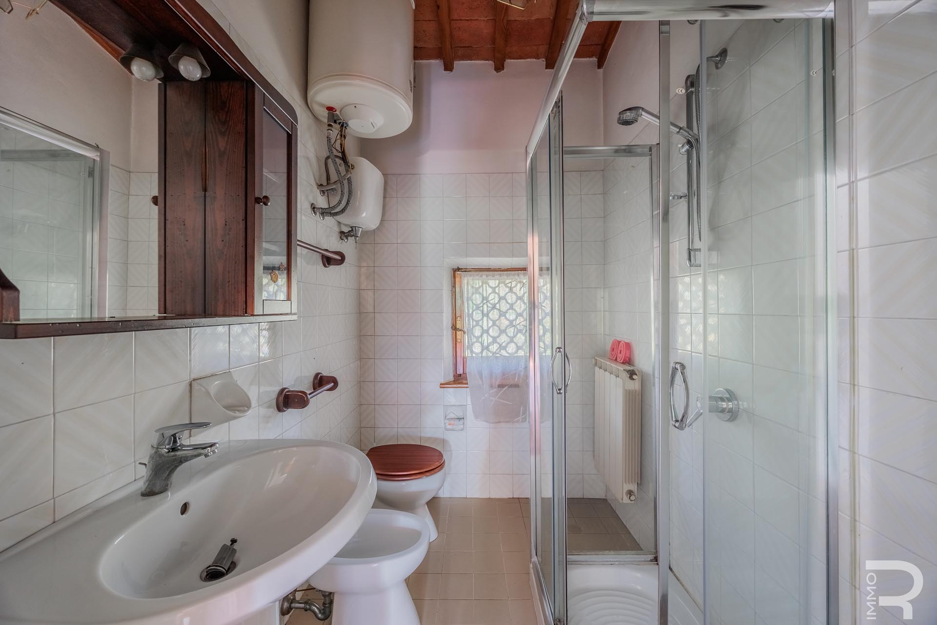 Gestalterisch präsentiert sich die Immobilie im typisch toskanischen Stil mit Terracottaböden und sichtbaren Holzbalken, die den Räumen eine warme und charaktervolle Ausstrahlung verleihen. Besonders hervorzuheben ist die großzügige Veranda beziehungsweise Terrasse, die rund um das Haus verläuft und zusätzlichen Wohnraum im Freien schafft – ideal für gemeinsame Mahlzeiten oder gesellige Stunden.