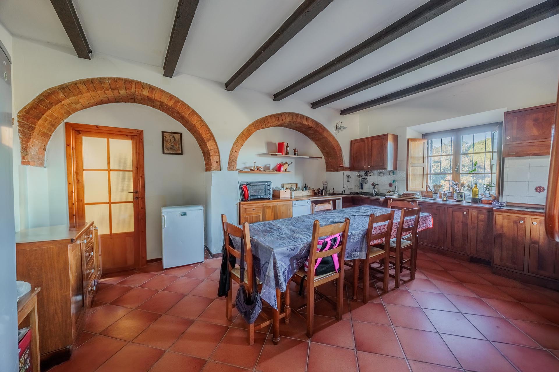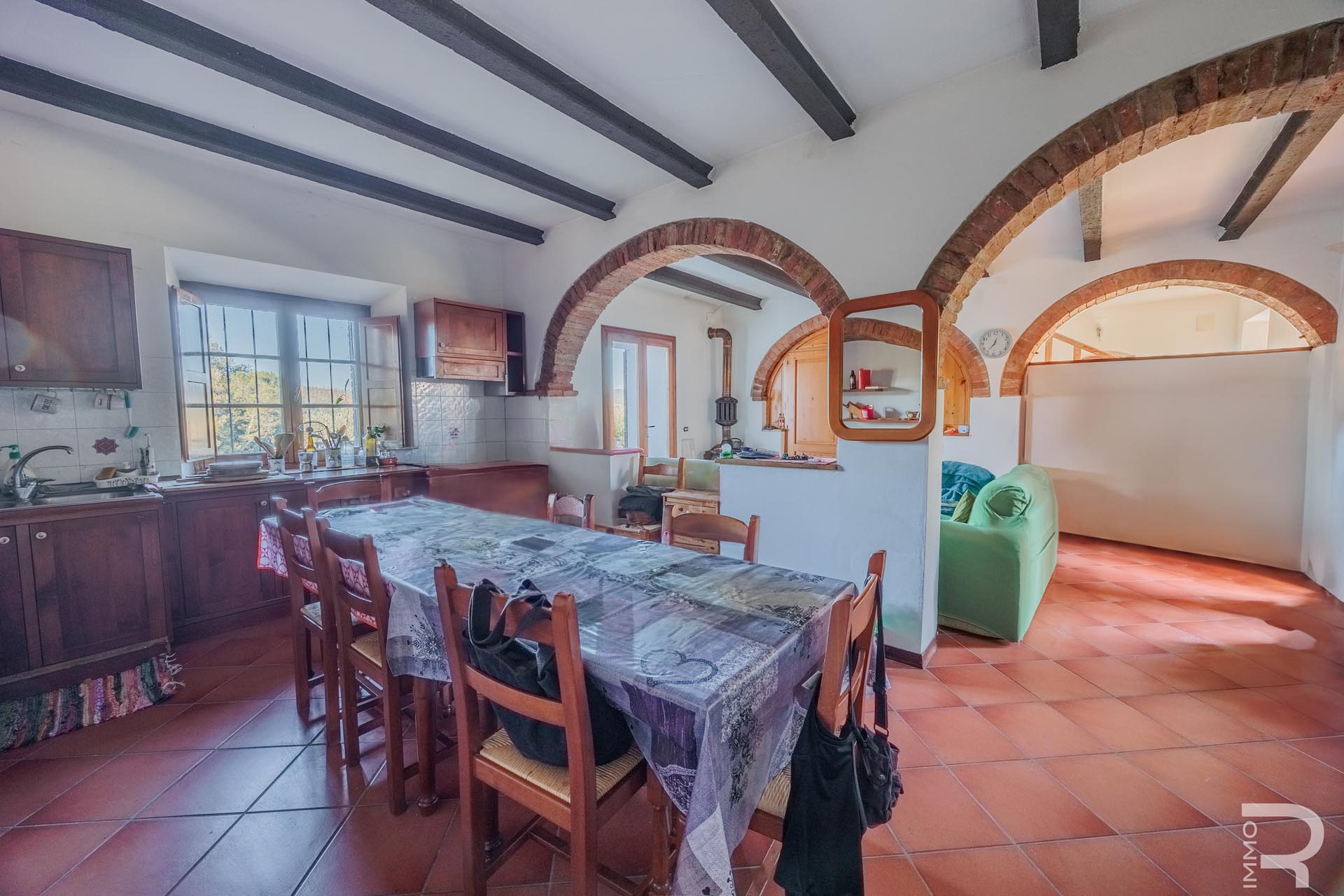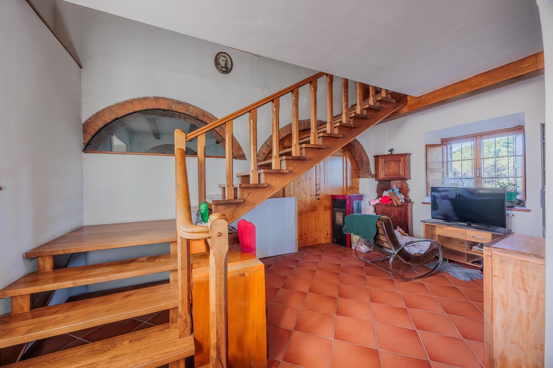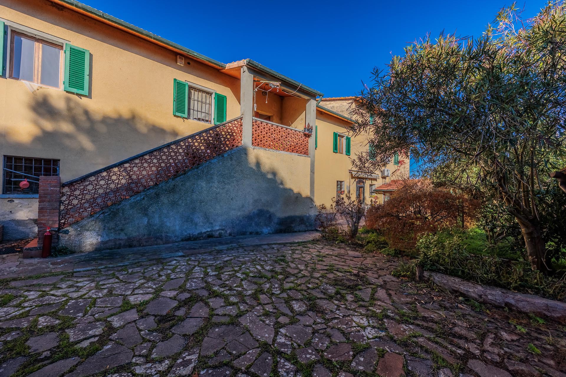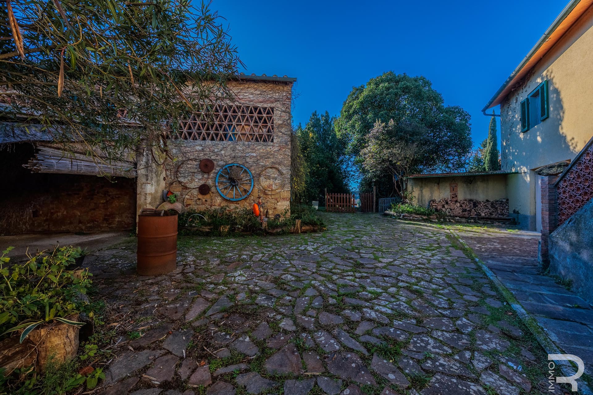 Trotz der idyllischen Lage ist die Immobilie sehr gut angebunden, da sie sich in der Nähe der Hauptstraße befindet. Die Ortschaft Colle Val d’Elsa ist nur wenige Minuten entfernt und bietet sämtliche Infrastrukturen und Dienstleistungen des täglichen Bedarfs. Diese Kombination aus ländlicher Atmosphäre und praktischer Erreichbarkeit macht das Anwesen besonders attraktiv.