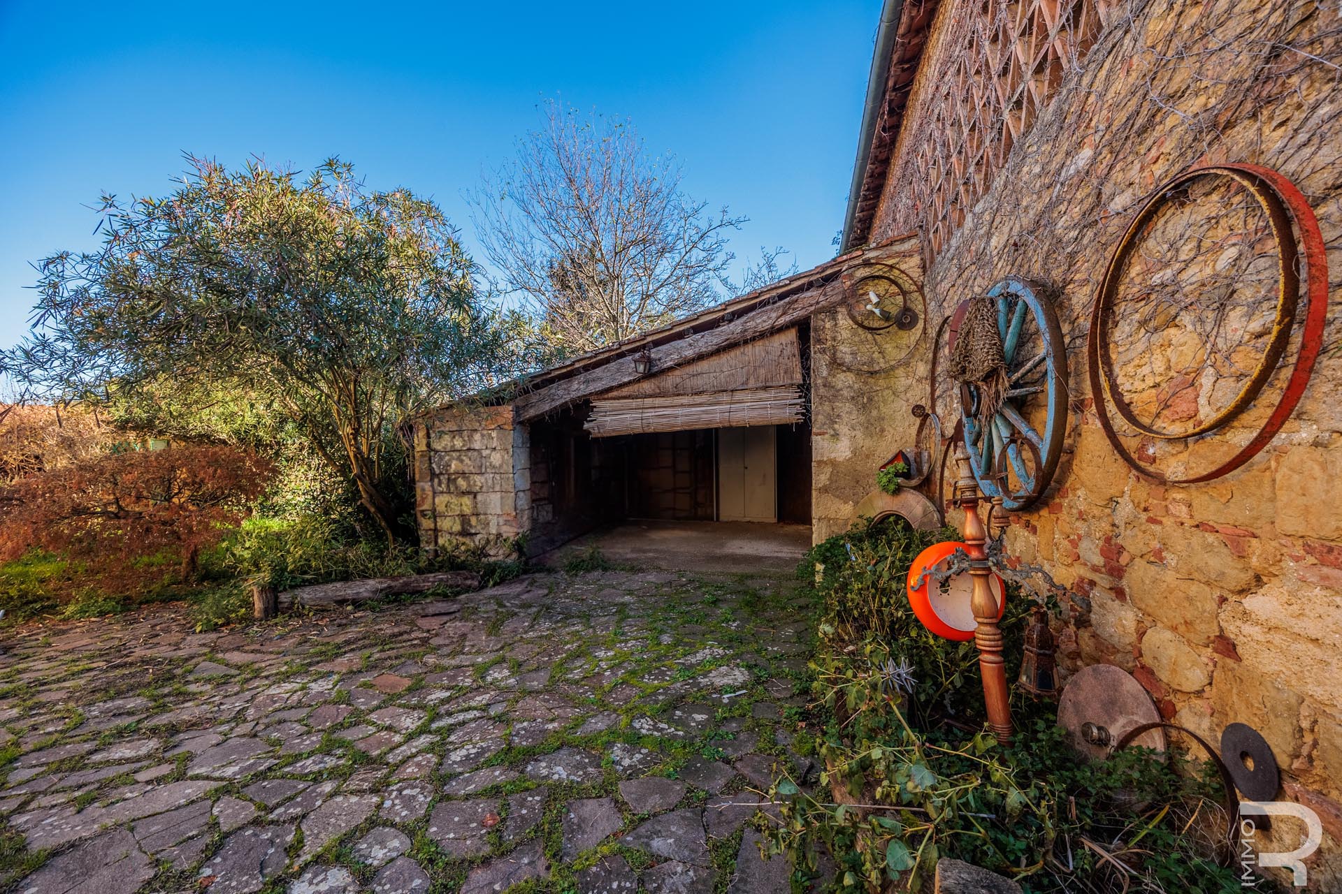 Zum Anwesen gehört eine separate Scheune, die vielfältige Nutzungsmöglichkeiten eröffnet – etwa als zusätzliche Wohnfläche, Atelier, Lagerraum oder für landwirtschaftliche Zwecke. Das Grundstück erstreckt sich über ca. 4,3 Hektar und ist mit rund 460 Olivenbäumen bepflanzt, was sowohl für die Eigenproduktion von Olivenöl als auch für ein landwirtschaftliches oder touristisches Projekt interessant ist. Die weitläufigen Flächen garantieren Ruhe, Privatsphäre und viel Platz.