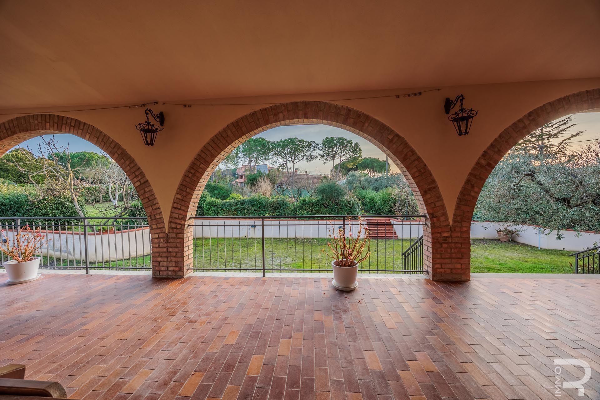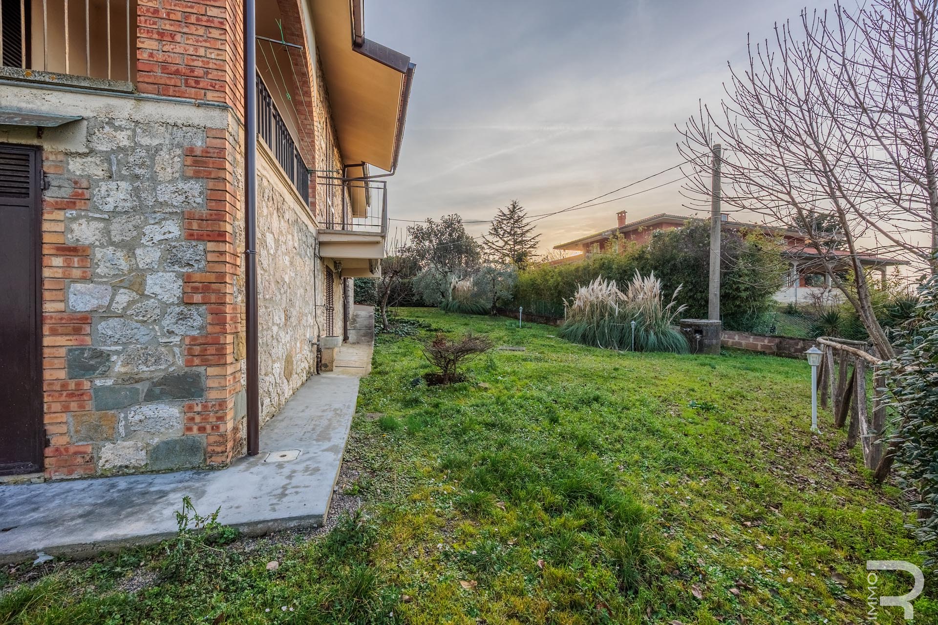 Großzügige Außenbereiche prägen den Charakter der Villa: Eine große Loggia lädt zum Verweilen im Freien ein, während mehrere Balkone unterschiedliche Ausblicke auf die Umgebung bieten. Der ca. 2.000 m² große, vollständig umzäunte Garten schafft einen gepflegten Rahmen rund um das Haus und bietet viel Platz für Erholung und Freizeit.