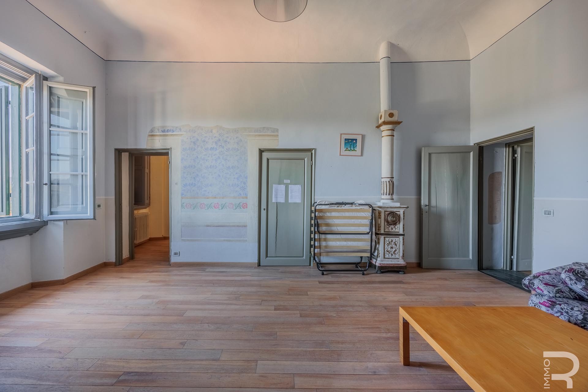 Der heutige Eigentümer hat die gesamte Einheit im Jahr 2010 umfassend saniert. Dabei wurden sowohl das Dach als auch sämtliche technischen Anlagen erneuert, sodass historisches Flair und moderner Wohnkomfort in perfekter Harmonie bestehen. Die Innenräume beeindrucken mit großzügigen Raumhöhen, herrschaftlichen Sälen und kunstvollen Dekorationen an Decken und Wänden. Edle Parkettböden wechseln sich mit originalen antiken Terrakottabelägen ab und unterstreichen den exklusiven Charakter der Immobilie.