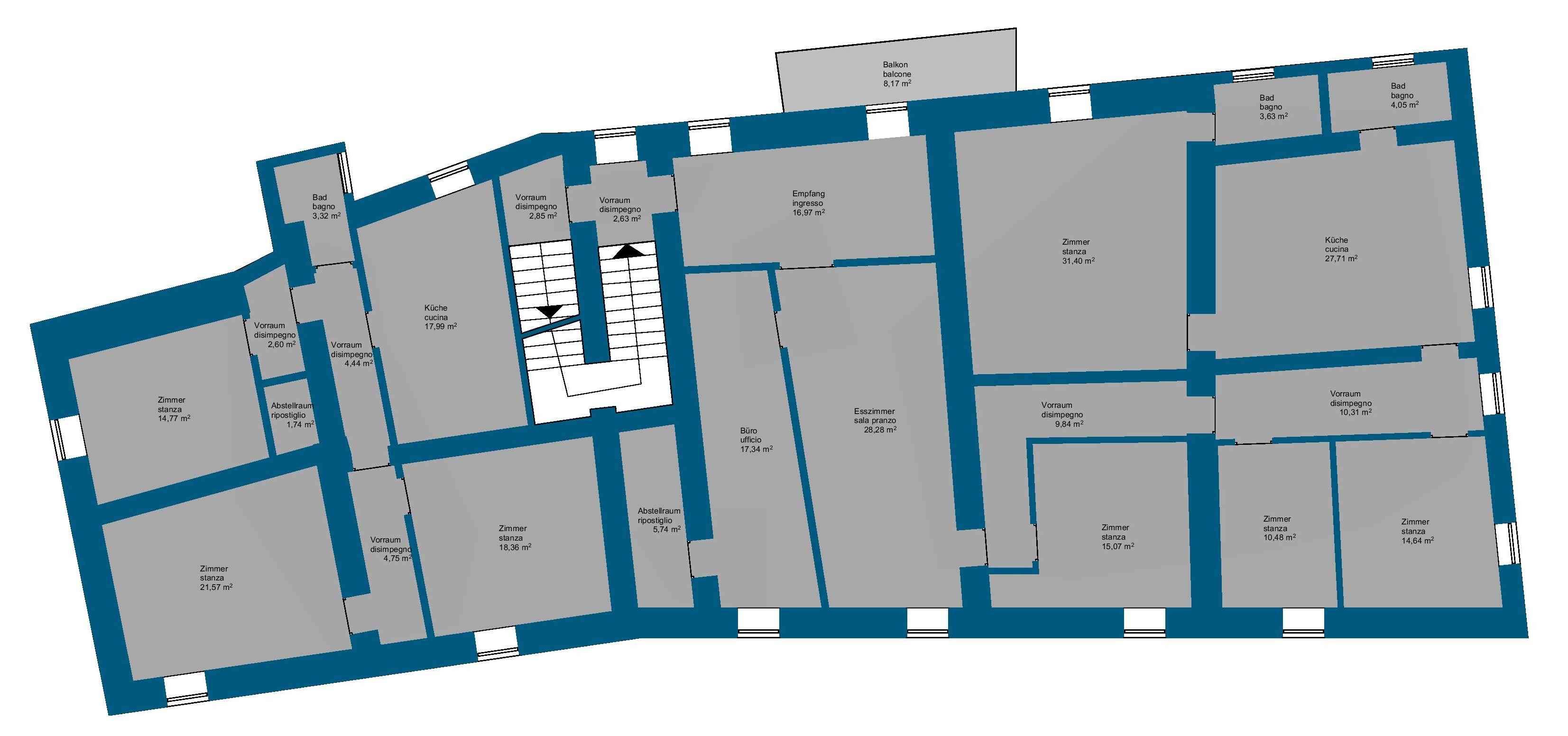 Ein besonderes Highlight ist der private Garten von etwa 140 m², der über das Erdgeschoss zugänglich ist – eine absolute Rarität bei einem historischen Palazzo und ideal für Entspannung, gesellige Abende oder stilvolle Außenbereiche.