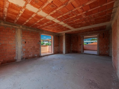 Die Wohnung ist außergewöhnlich hell – große Fensterflächen lassen viel Tageslicht herein und schaffen eine freundliche, einladende Atmosphäre. Ein besonderes Highlight sind die zahlreichen Terrassen, die zum Verweilen einladen und eine herrliche Aussicht ins Grüne bieten. Hier lassen sich ruhige Stunden im Freien genießen – sei es zum Entspannen, Lesen oder bei einem Glas Wein am Abend. Zusätzlich gehören zur Immobilie auch eine Garage sowie eine Taverne im Erdgeschoss, die sich ebenfalls im Rohzustand befinden und vielseitig nutzbar sind – etwa als Hobbyraum, zusätzlicher Wohnbereich oder Lagerfläche. Ein weiterer Pluspunkt ist die Möglichkeit, einen Teil des angrenzenden Gartens zu erwerben. So lässt sich das eigene Wohnkonzept ideal durch einen privaten Außenbereich ergänzen – perfekt für Gartenliebhaber, Familien oder alle, die gern im Freien sind.