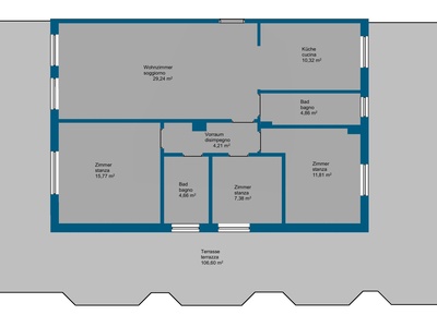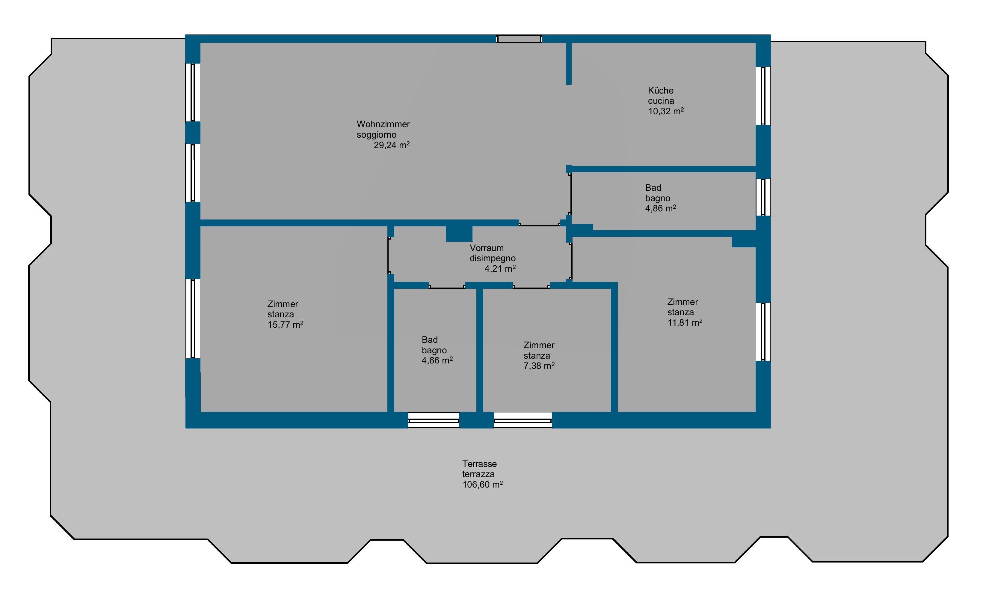The apartment is located on the second floor of a well-maintained building and impresses with its bright, open-plan living area, which is generously proportioned and leads directly onto the terrace. The two bathrooms offer a high level of comfort, while the bedrooms impress with their pleasant size.