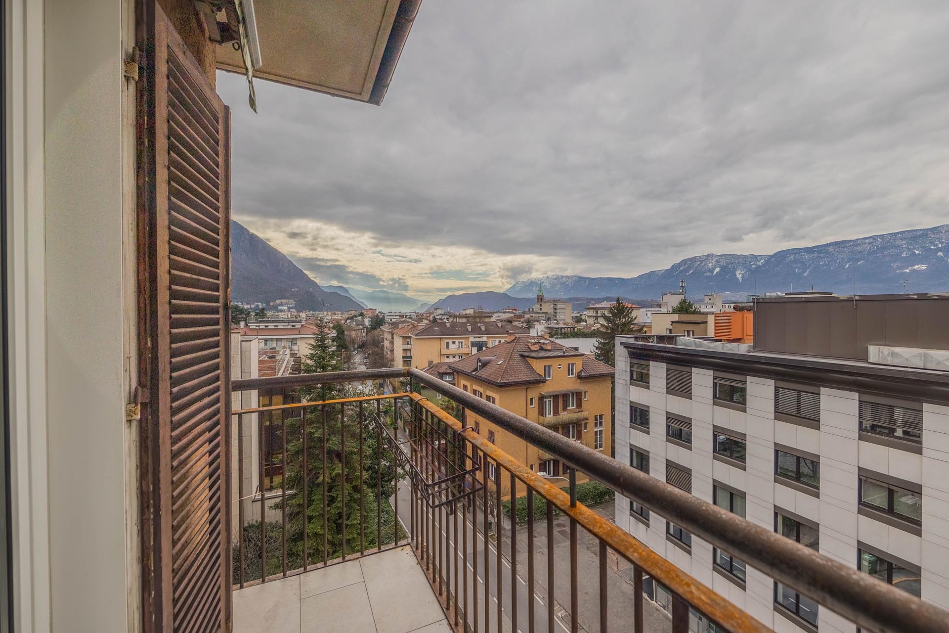 R07038BZ3Z - This spacious and bright 3-room apartment is located on the 5th and top floor of a well-maintained residential building with an elevator. Its location in the attic not only ensures peace and quiet, but also an open, airy living atmosphere. From here, there is a wide and unobstructed view over the rooftops of Bolzano to the impressive surrounding mountain landscape, which is what makes this property so special.