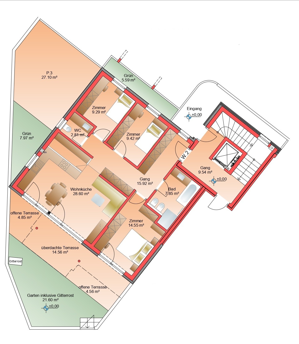 The entire complex has been built using the CasaClima A construction method, a pioneering and energy-efficient construction method that guarantees maximum living quality with low running costs thanks to excellent thermal insulation, modern heating technology, and an ecological choice of materials. Not only do you benefit from a pleasant indoor climate all year round, but you also make an active contribution to protecting the environment.
