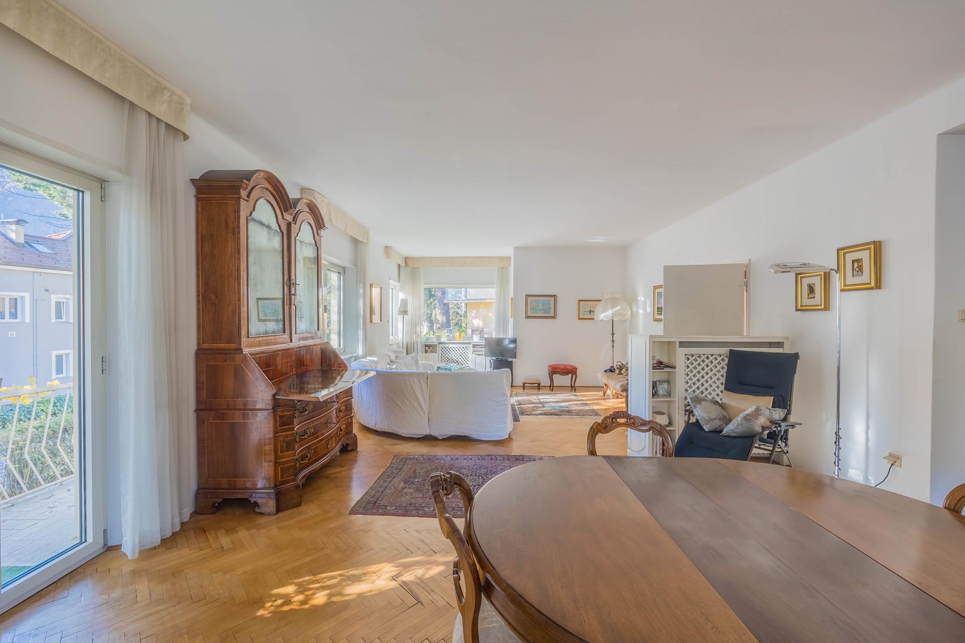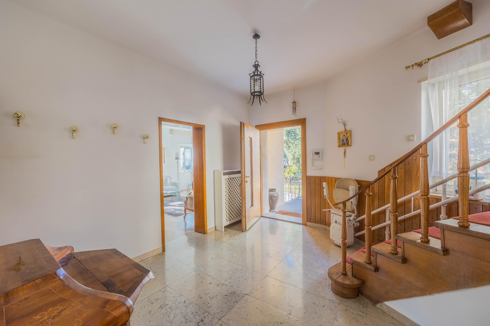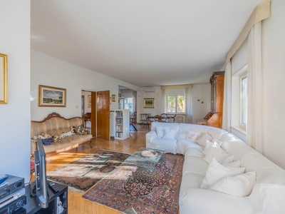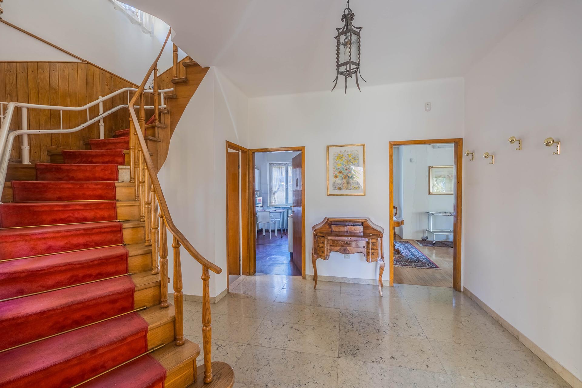 On the ground floor, in addition to practical cellar rooms, there are also hobby areas and a separate apartment that can be used flexibly, for example for guests, staff, or for rent. The two upper floors house the elegant living rooms and bedrooms, which, with their brightness and pleasant east-south-west exposure, create a very welcoming atmosphere. The heart of the villa is the spacious living room, which, with its spaciousness and welcoming character, is the central meeting point of the house.
