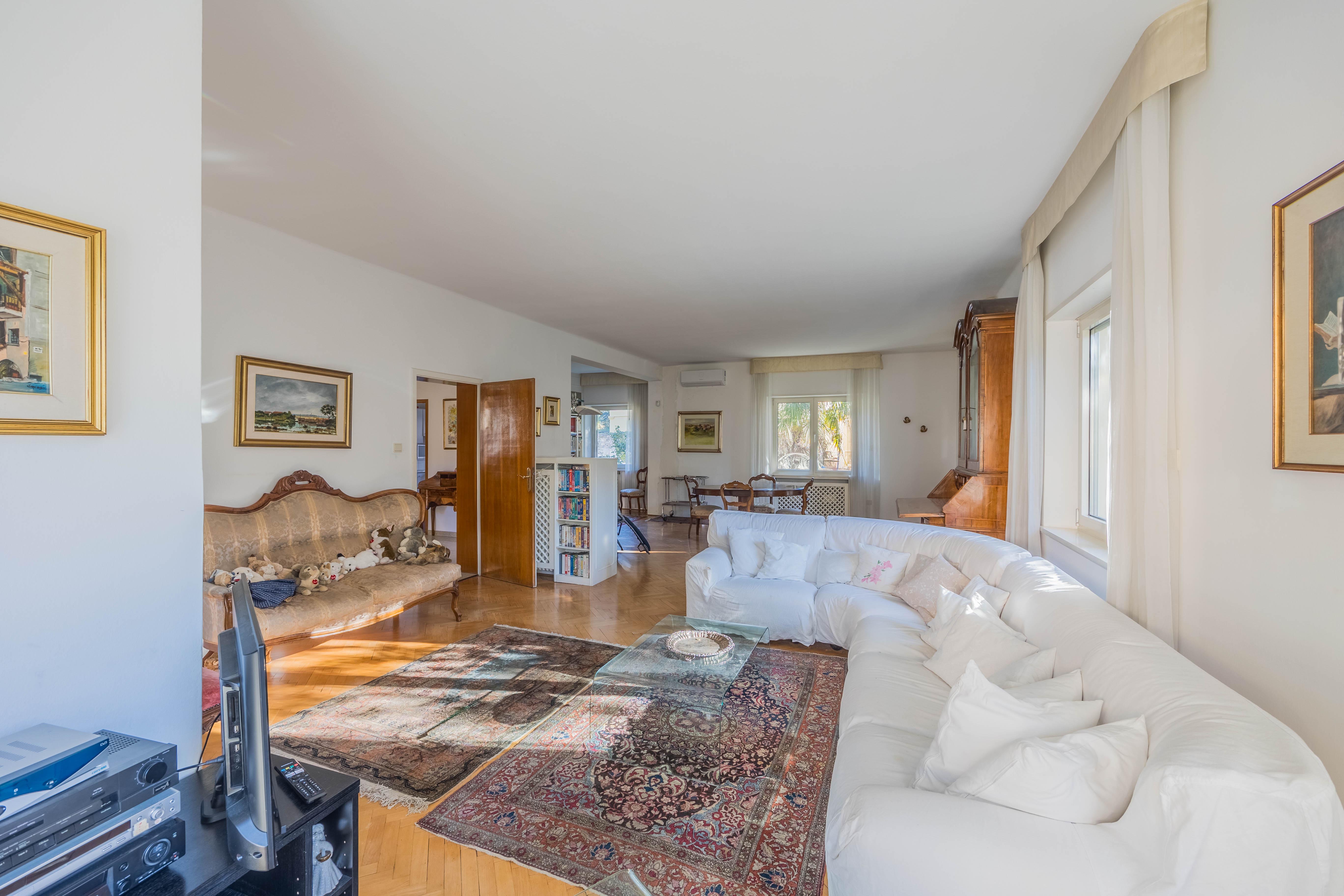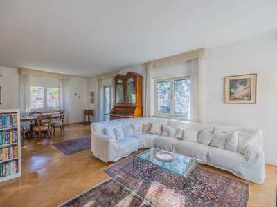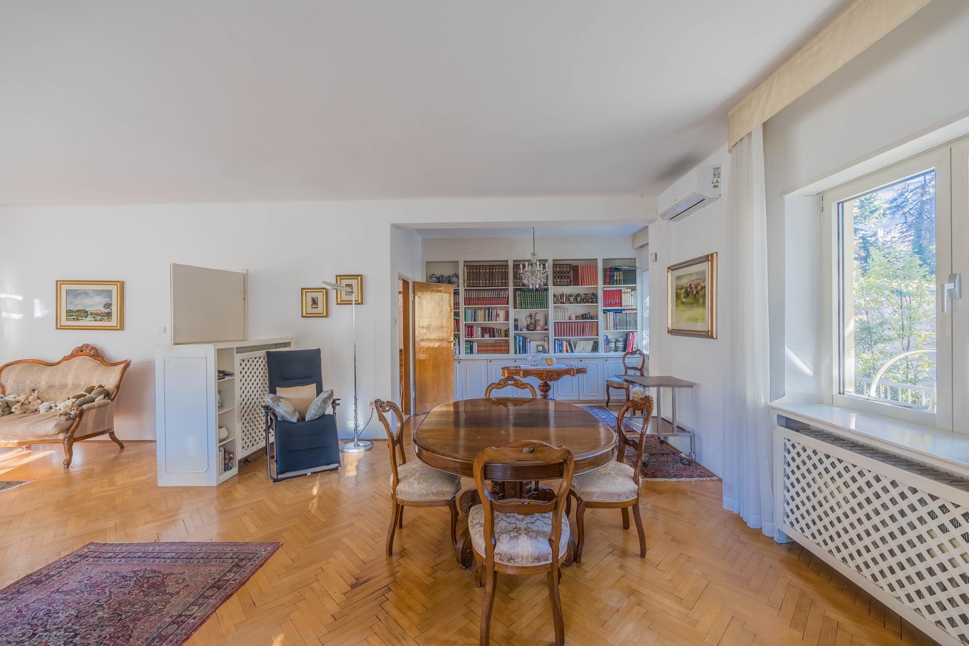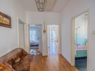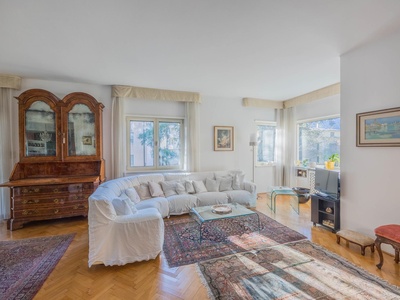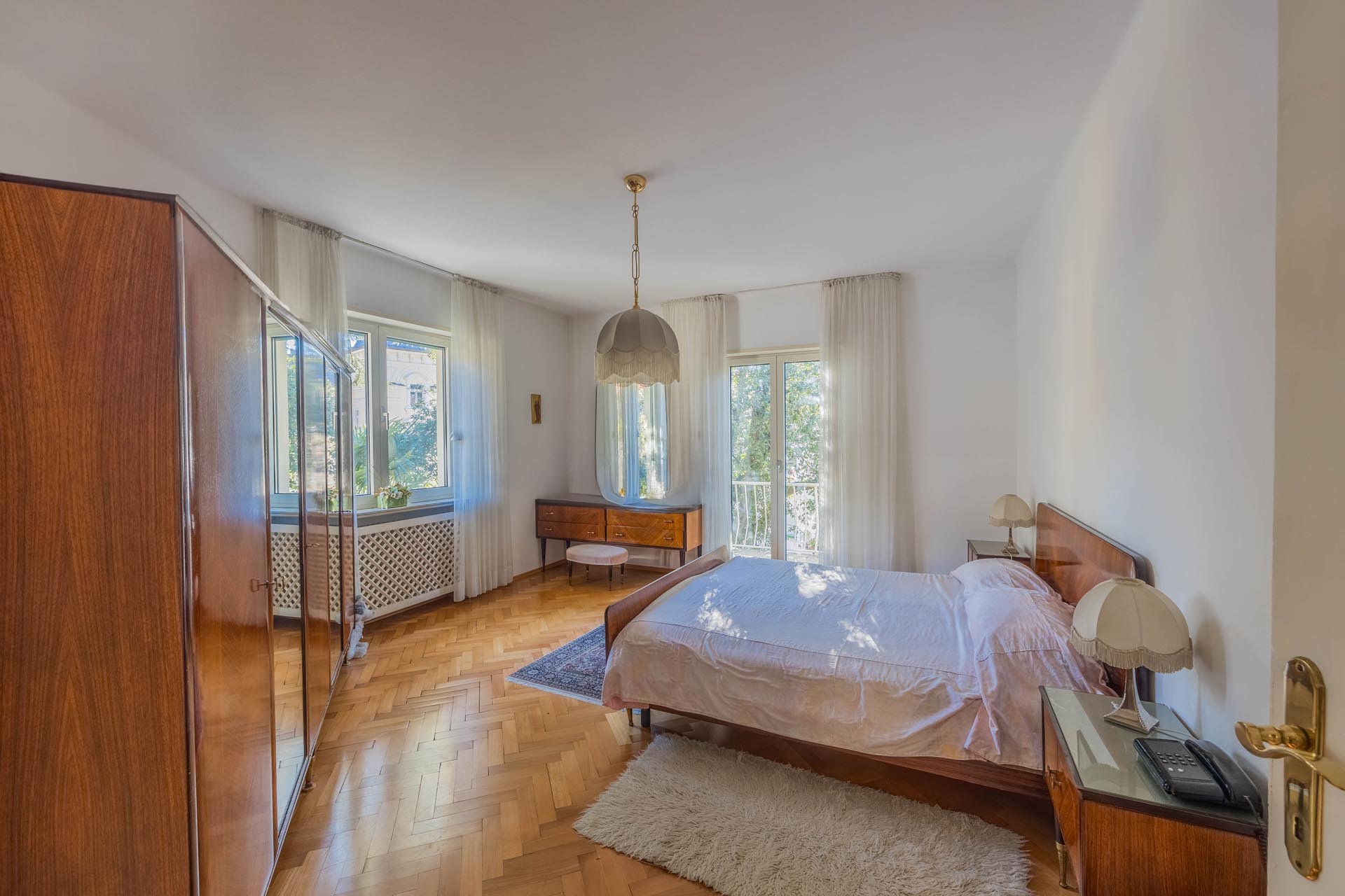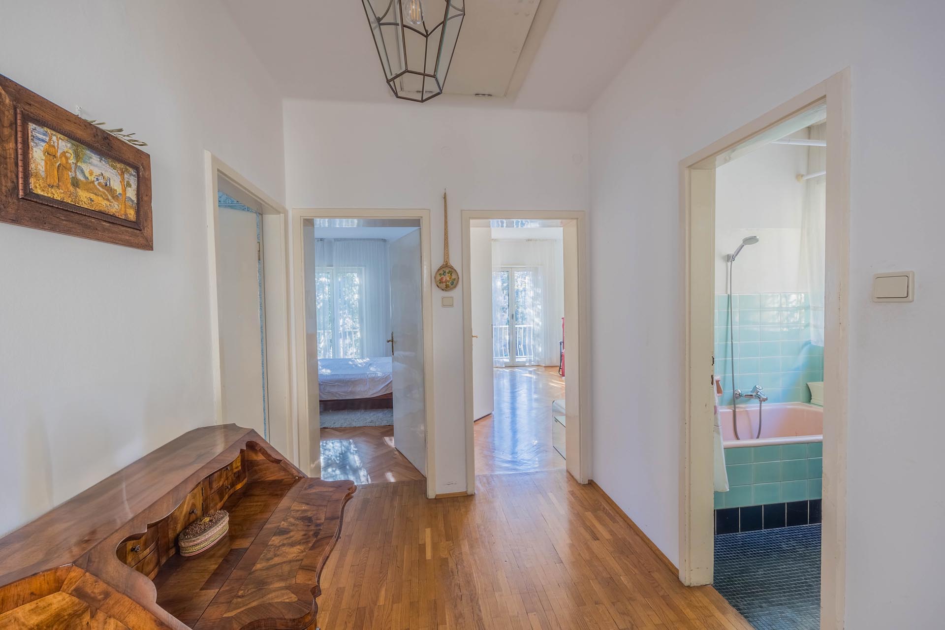 On the ground floor, in addition to practical cellar rooms, there are also hobby areas and a separate apartment that can be used flexibly, for example for guests, staff, or for rent. The two upper floors house the elegant living rooms and bedrooms, which, with their brightness and pleasant east-south-west exposure, create a very welcoming atmosphere. The heart of the villa is the spacious living room, which, with its spaciousness and welcoming character, is the central meeting point of the house.