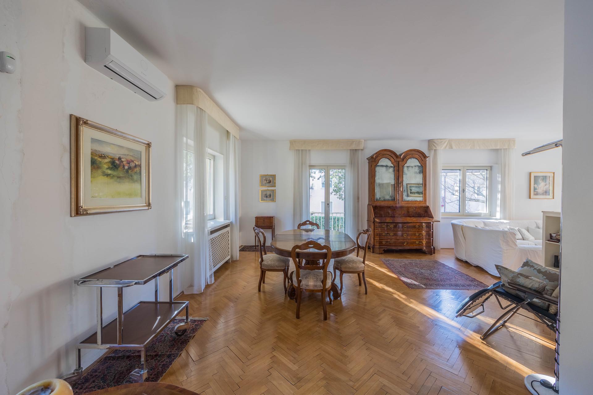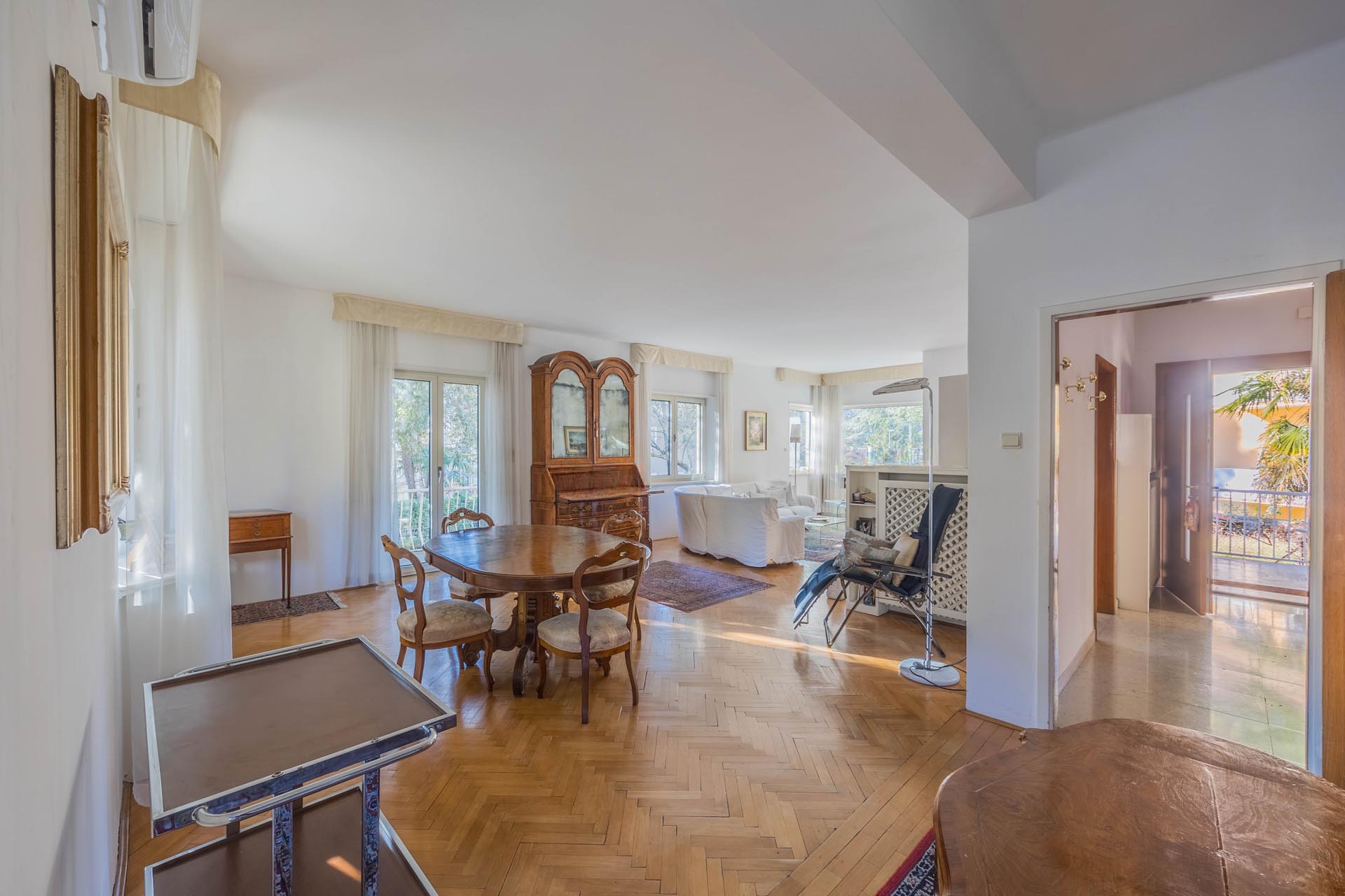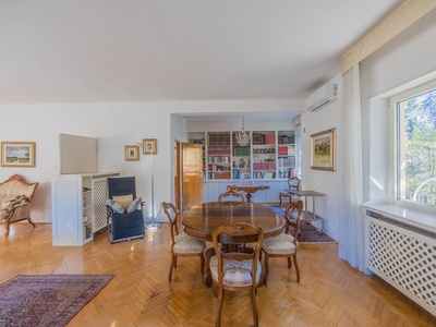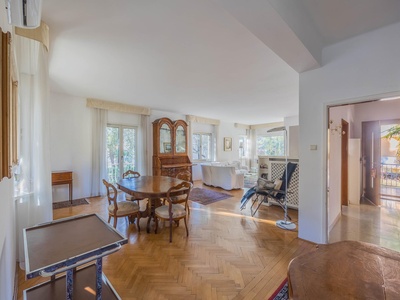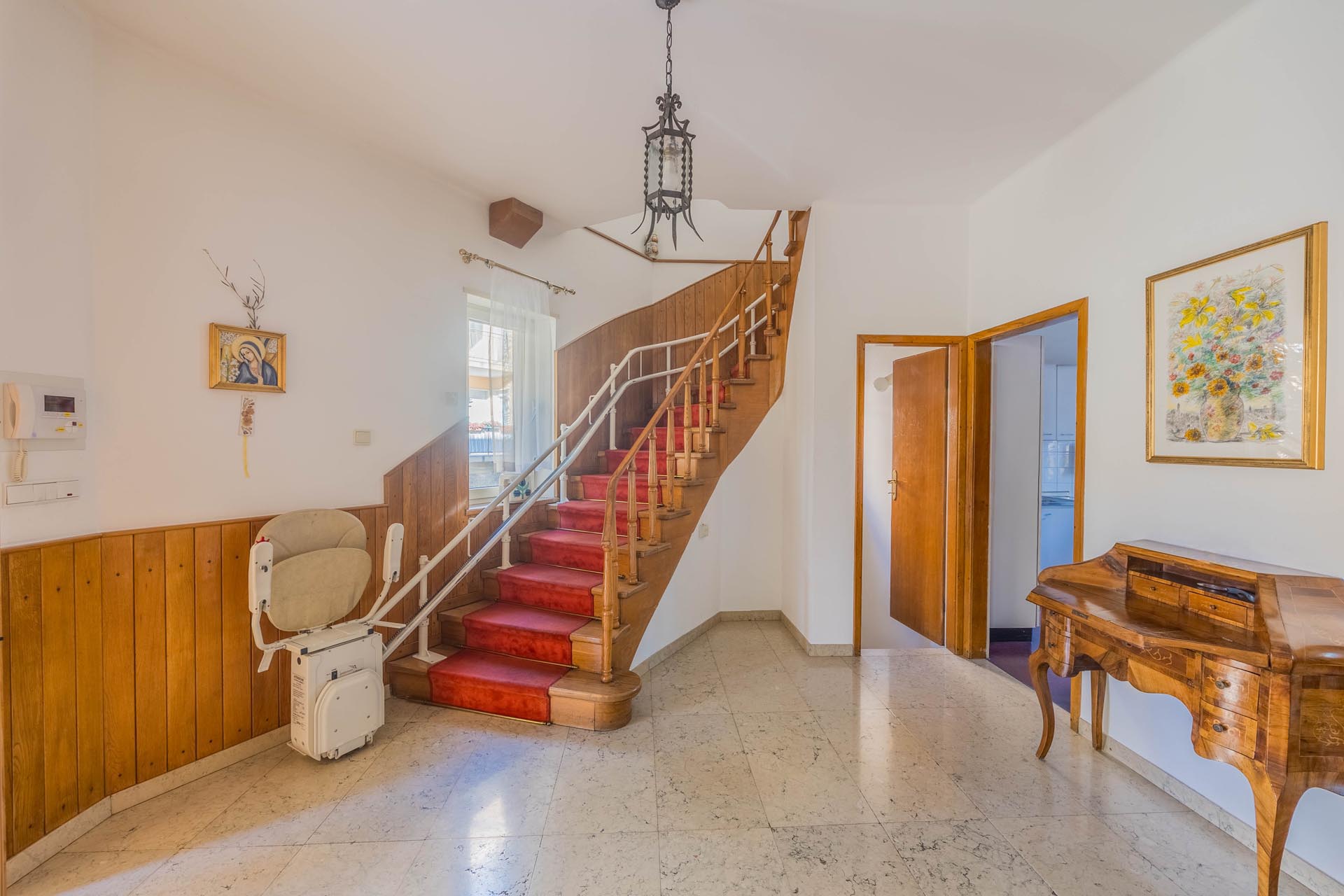On the ground floor, in addition to practical cellar rooms, there are also hobby areas and a separate apartment that can be used flexibly, for example for guests, staff, or for rent. The two upper floors house the elegant living rooms and bedrooms, which, with their brightness and pleasant east-south-west exposure, create a very welcoming atmosphere. The heart of the villa is the spacious living room, which, with its spaciousness and welcoming character, is the central meeting point of the house.